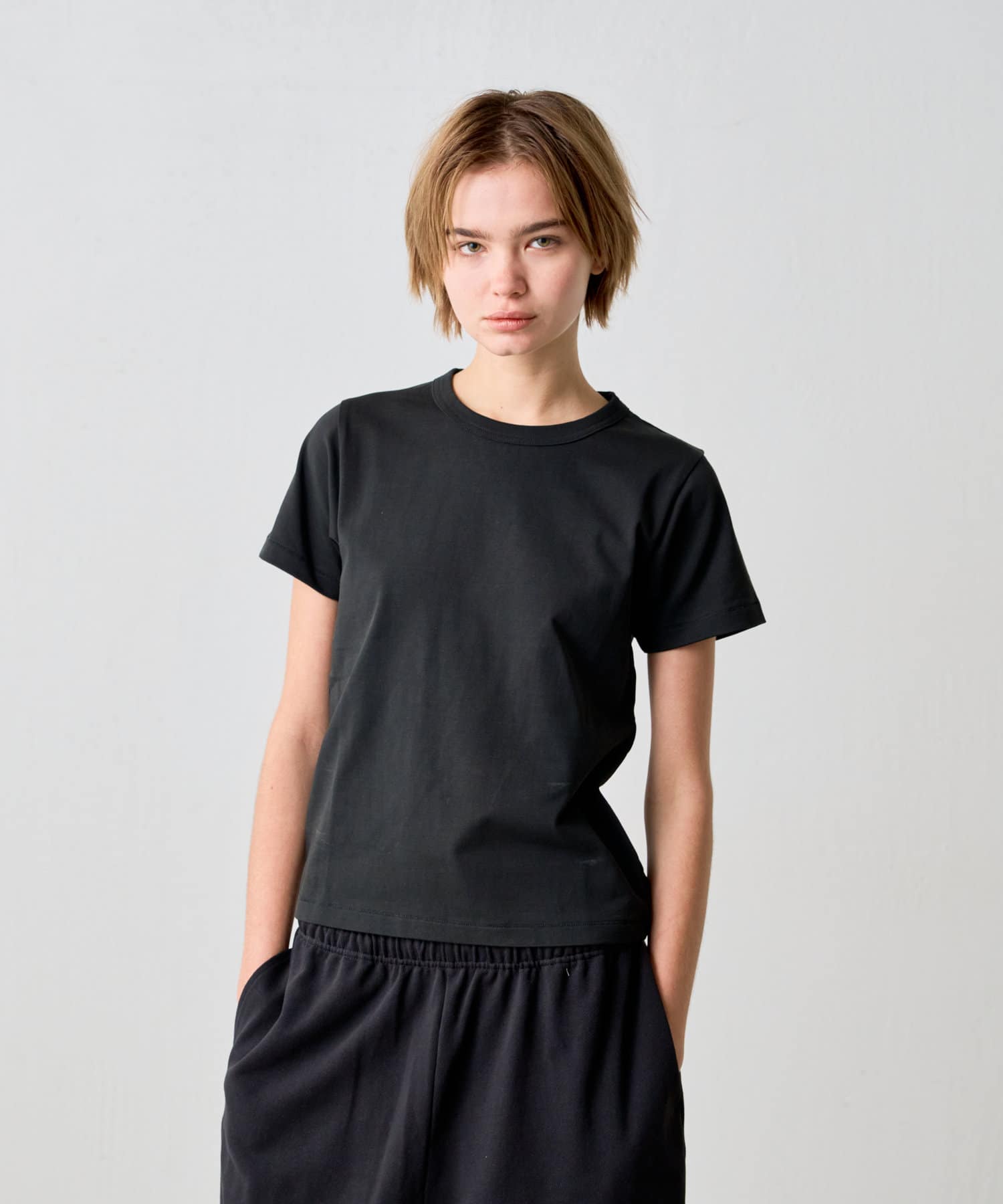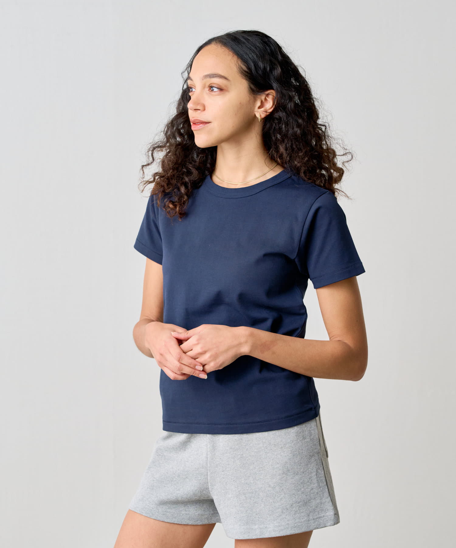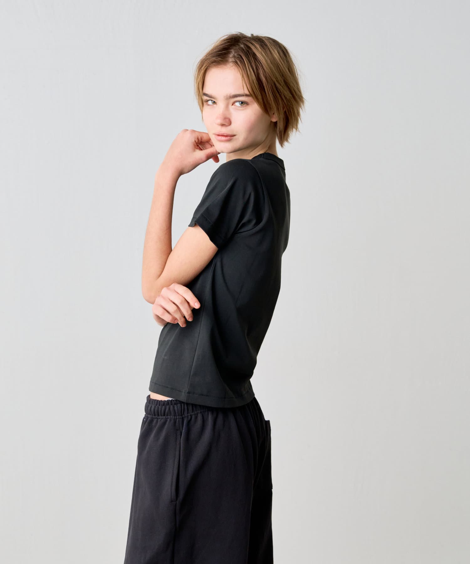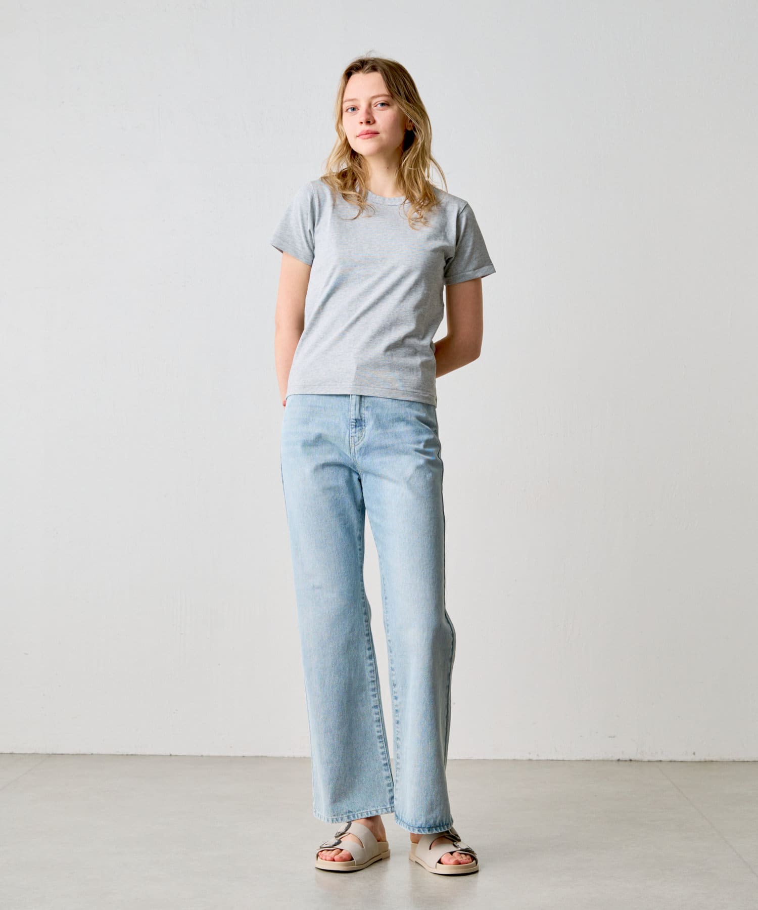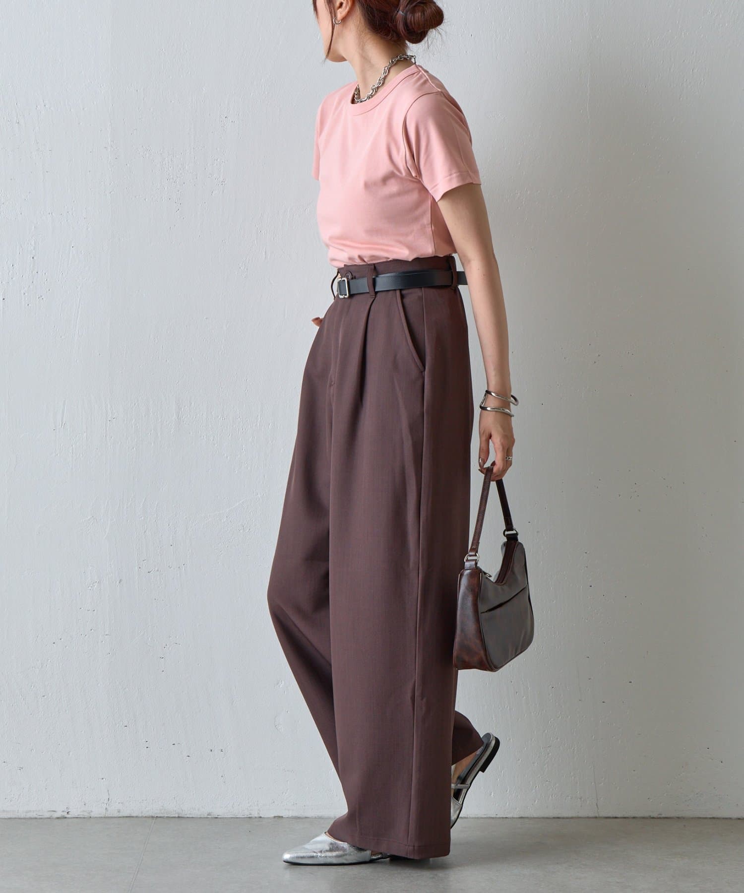 コットン素材の無地のデザインで着こなしやすく、メイントップスとしてはもちろん、
