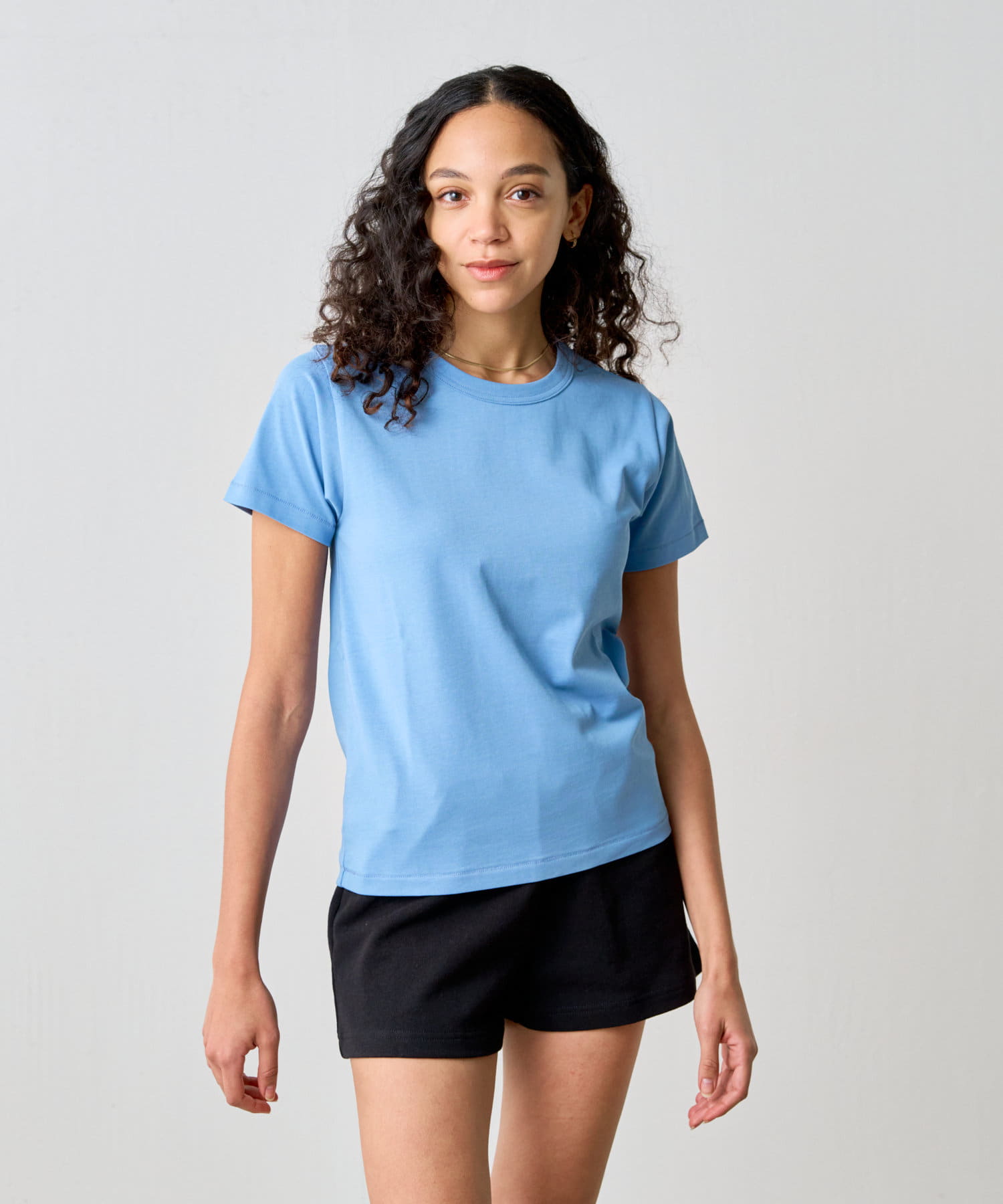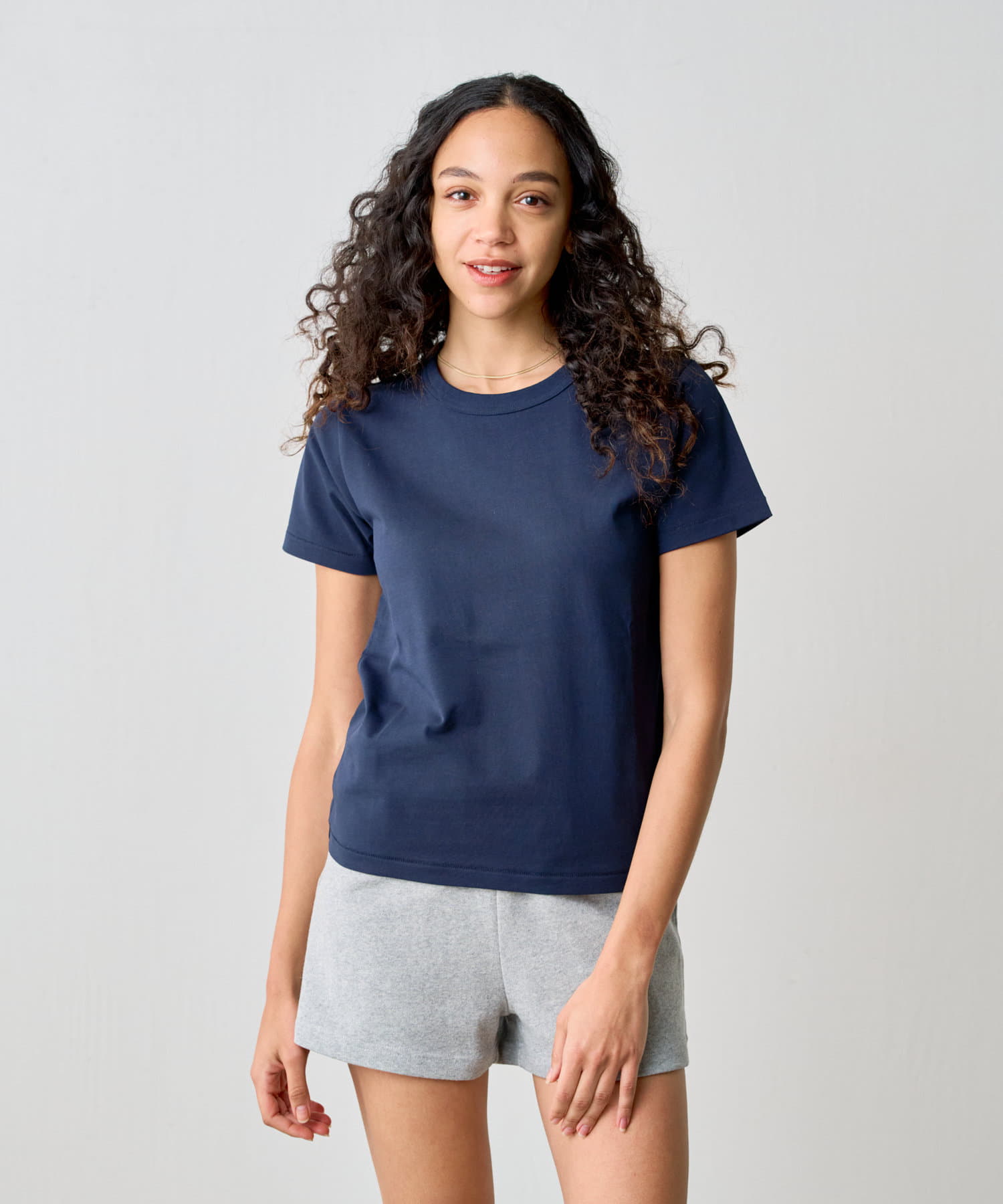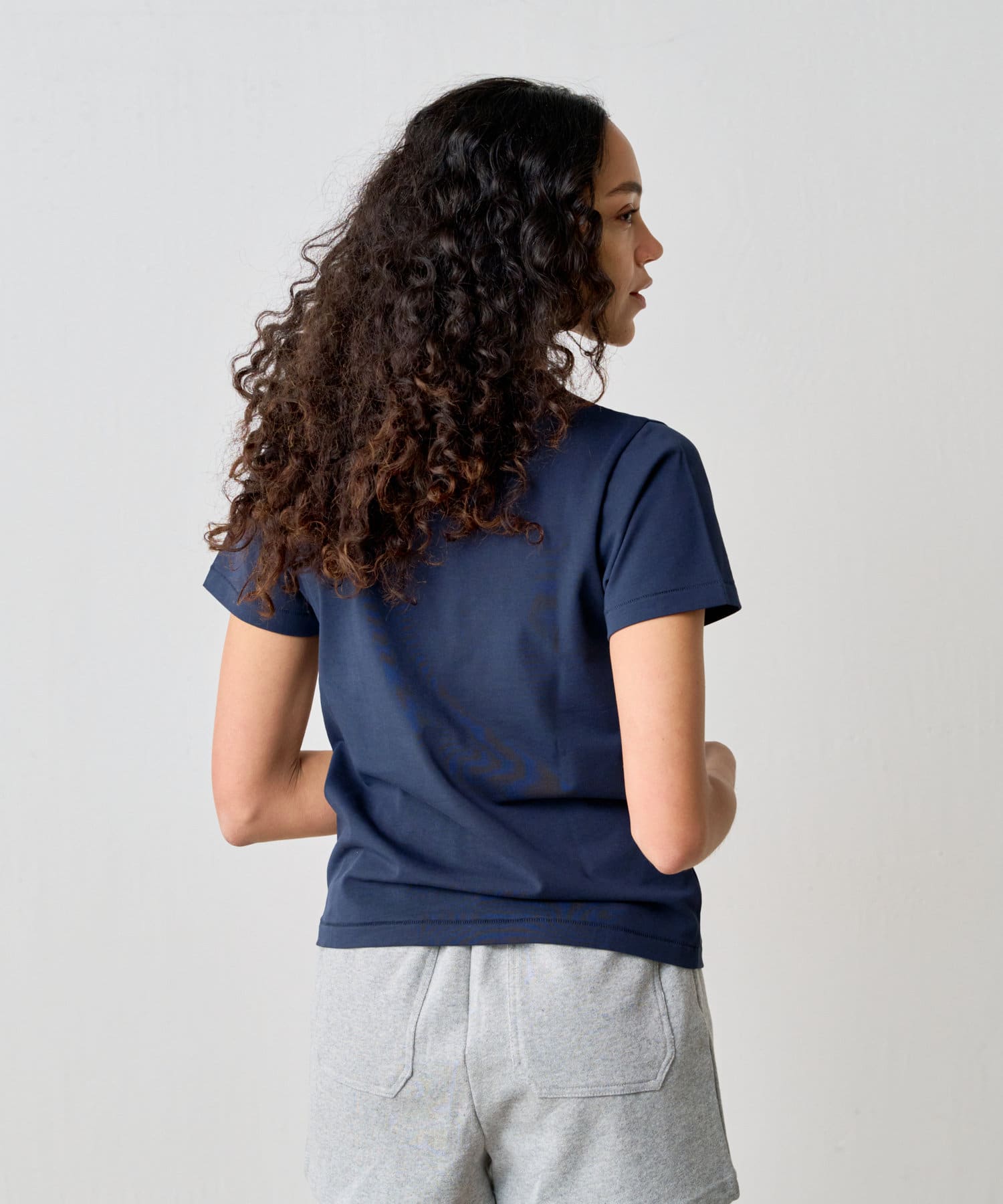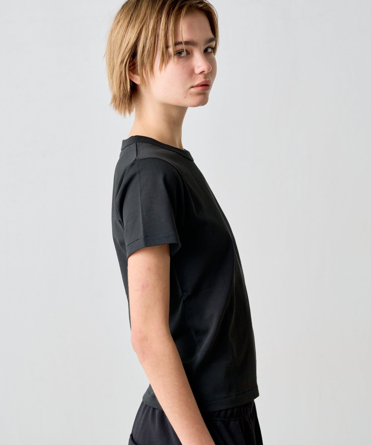 コットン素材の無地のデザインで着こなしやすく、メイントップスとしてはもちろん、