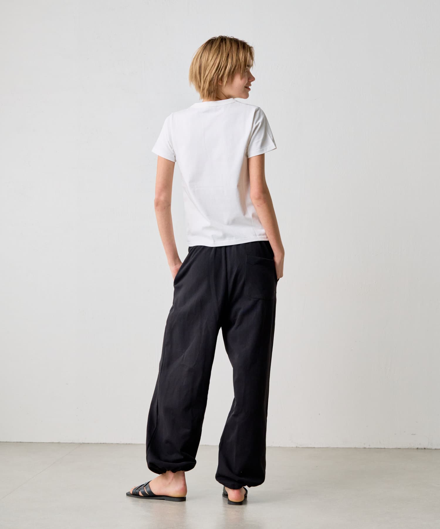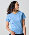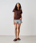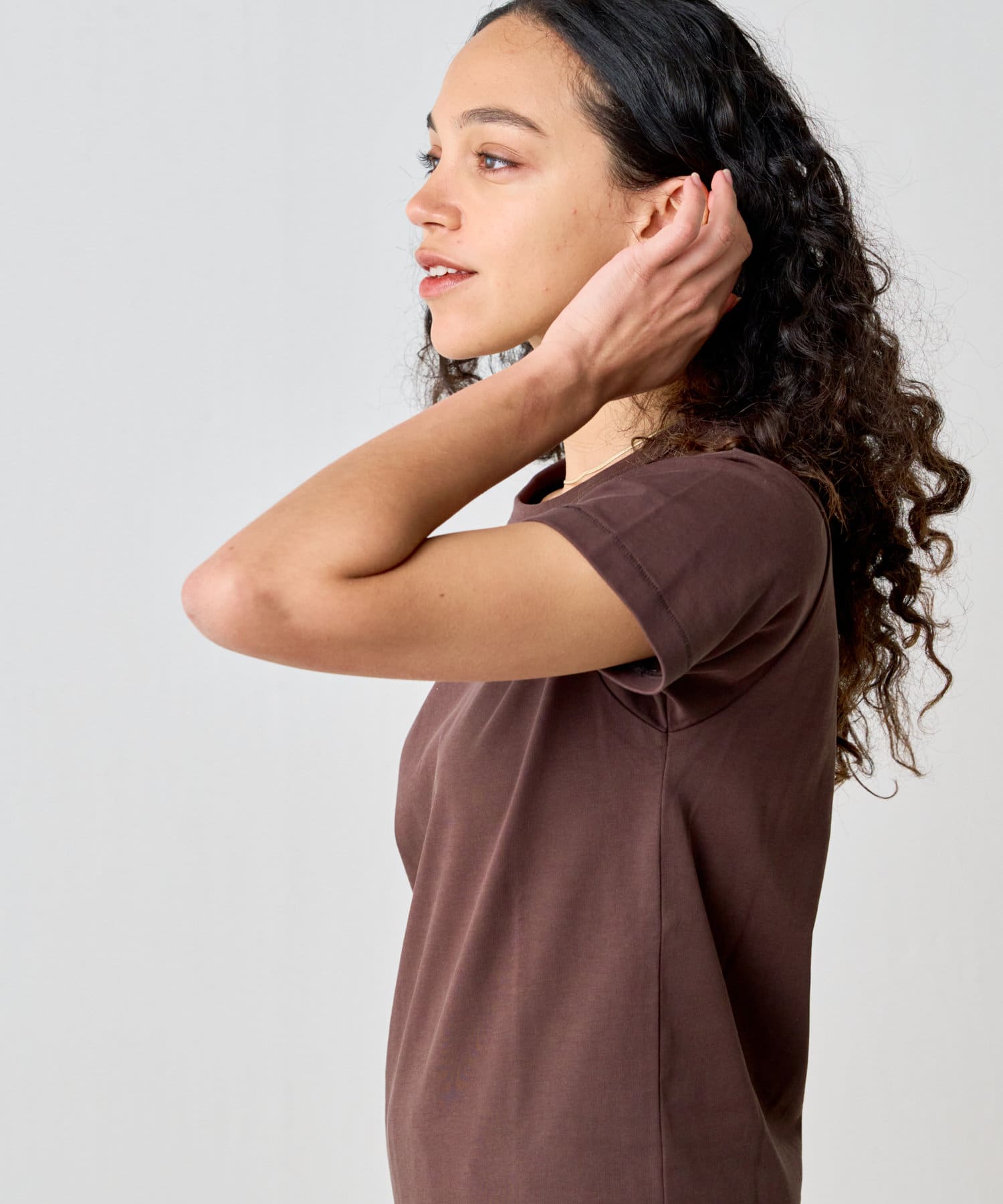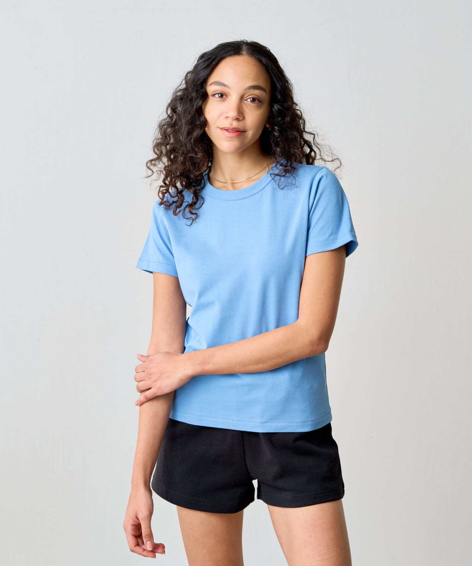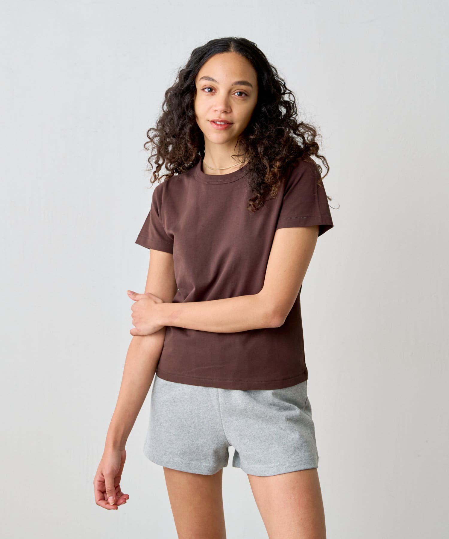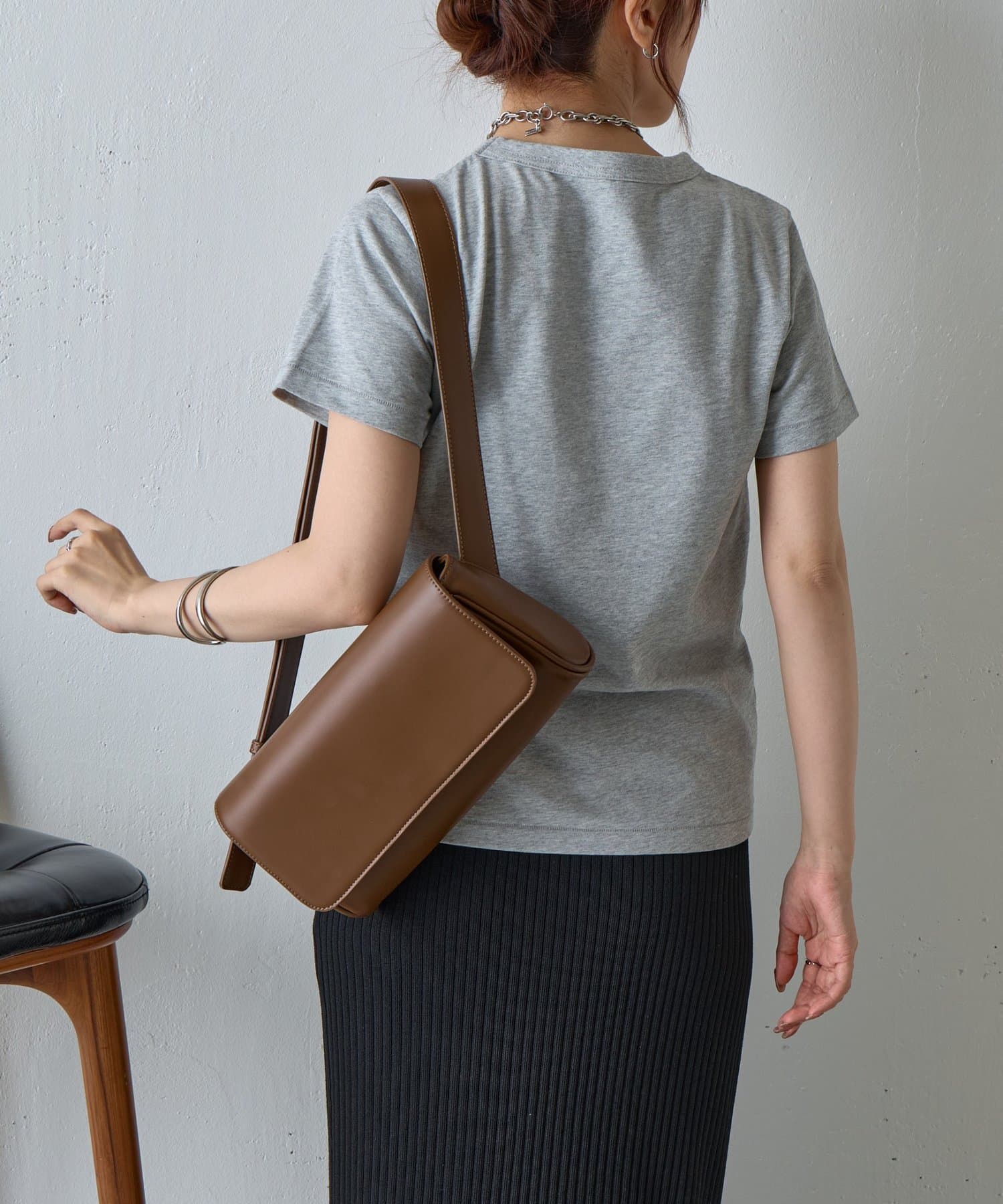 コットン素材の無地のデザインで着こなしやすく、メイントップスとしてはもちろん、
