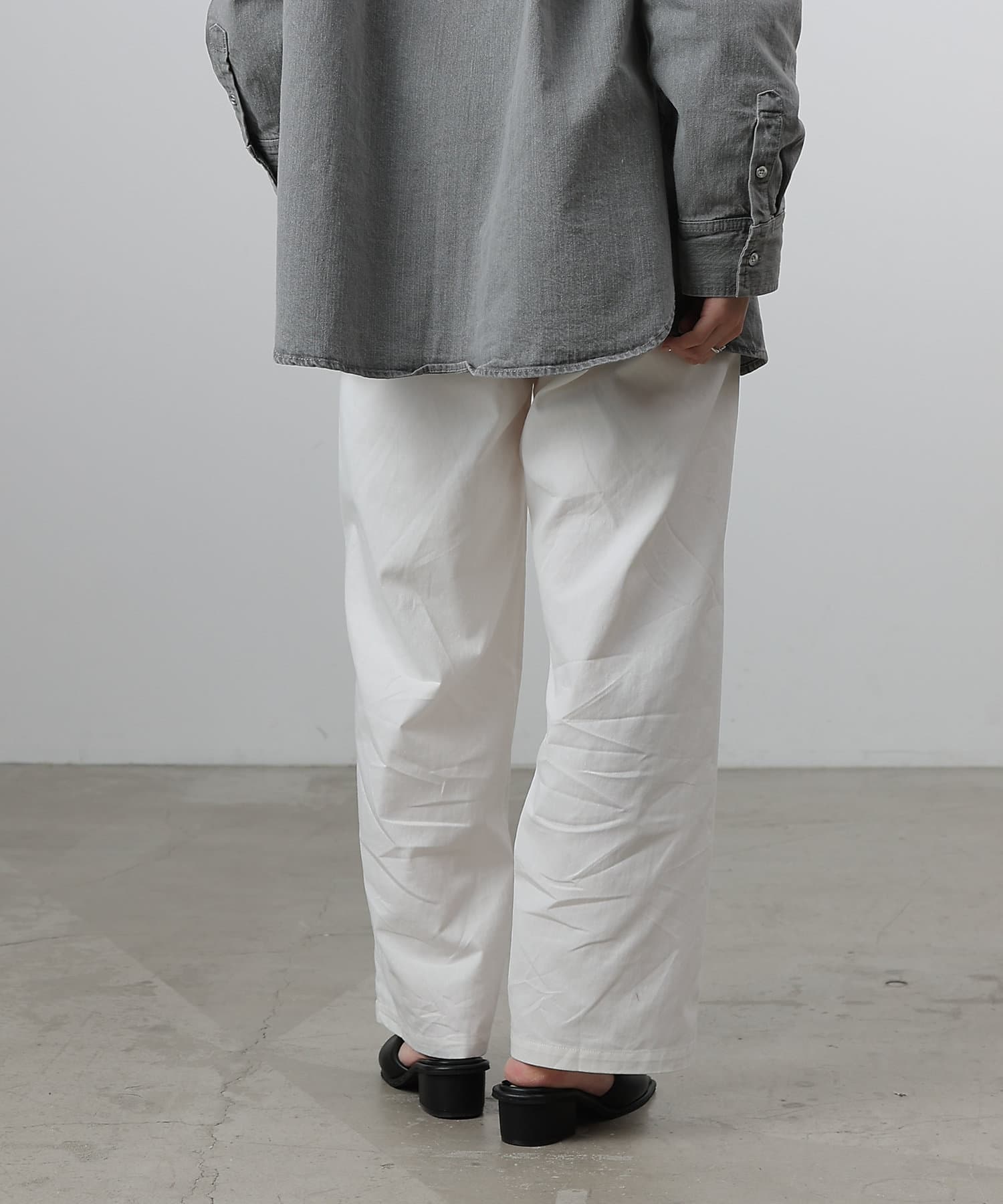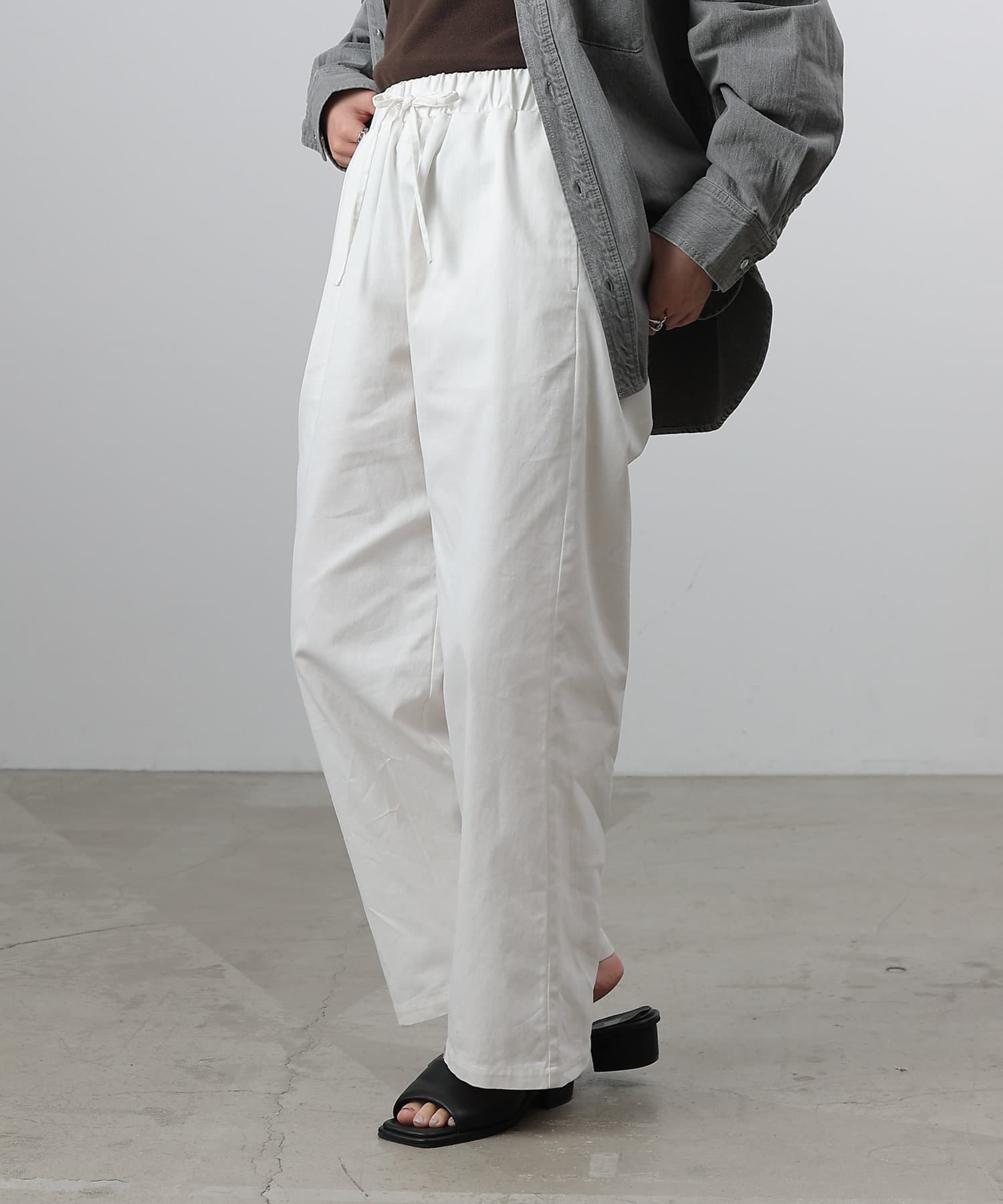 膝から裾までのシルエットがまっすぐなデザインでスタイルアップ効果が狙えるイージーパンツ。