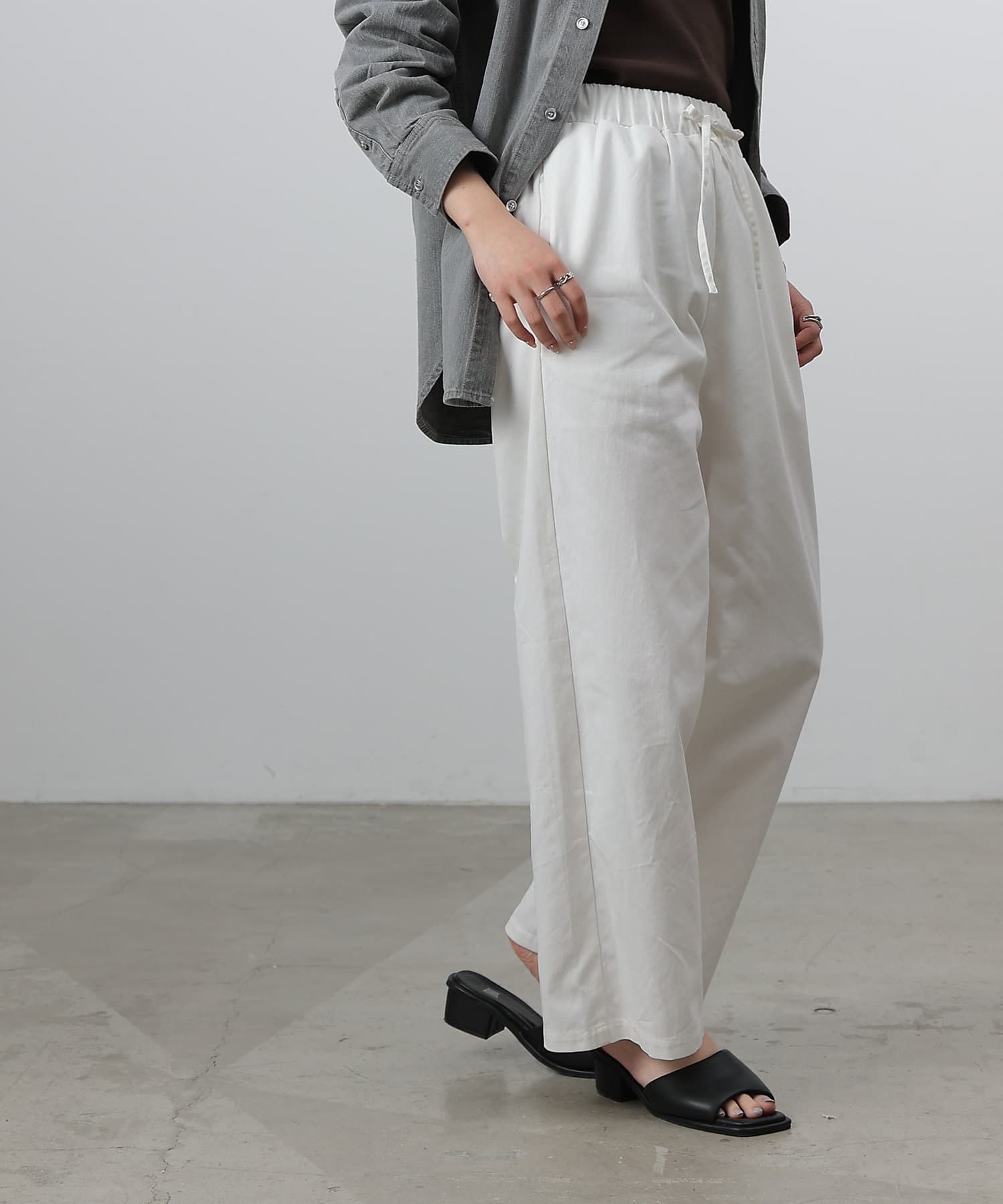 紐ウエストゴムでリラックス感のある履き心地なのも嬉しいポイント◎