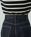 腰回りをすっきり見せるハイウエストデザインでトレンドシルエットを作り美脚見えします。