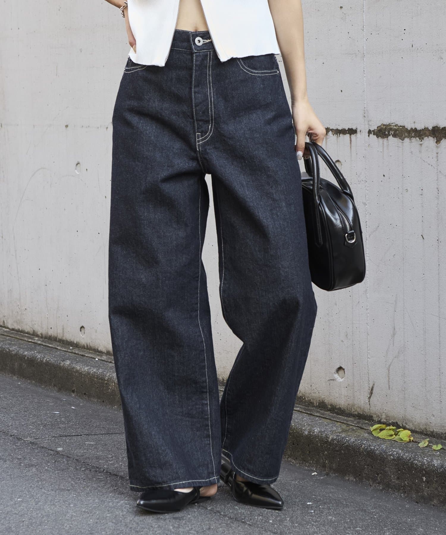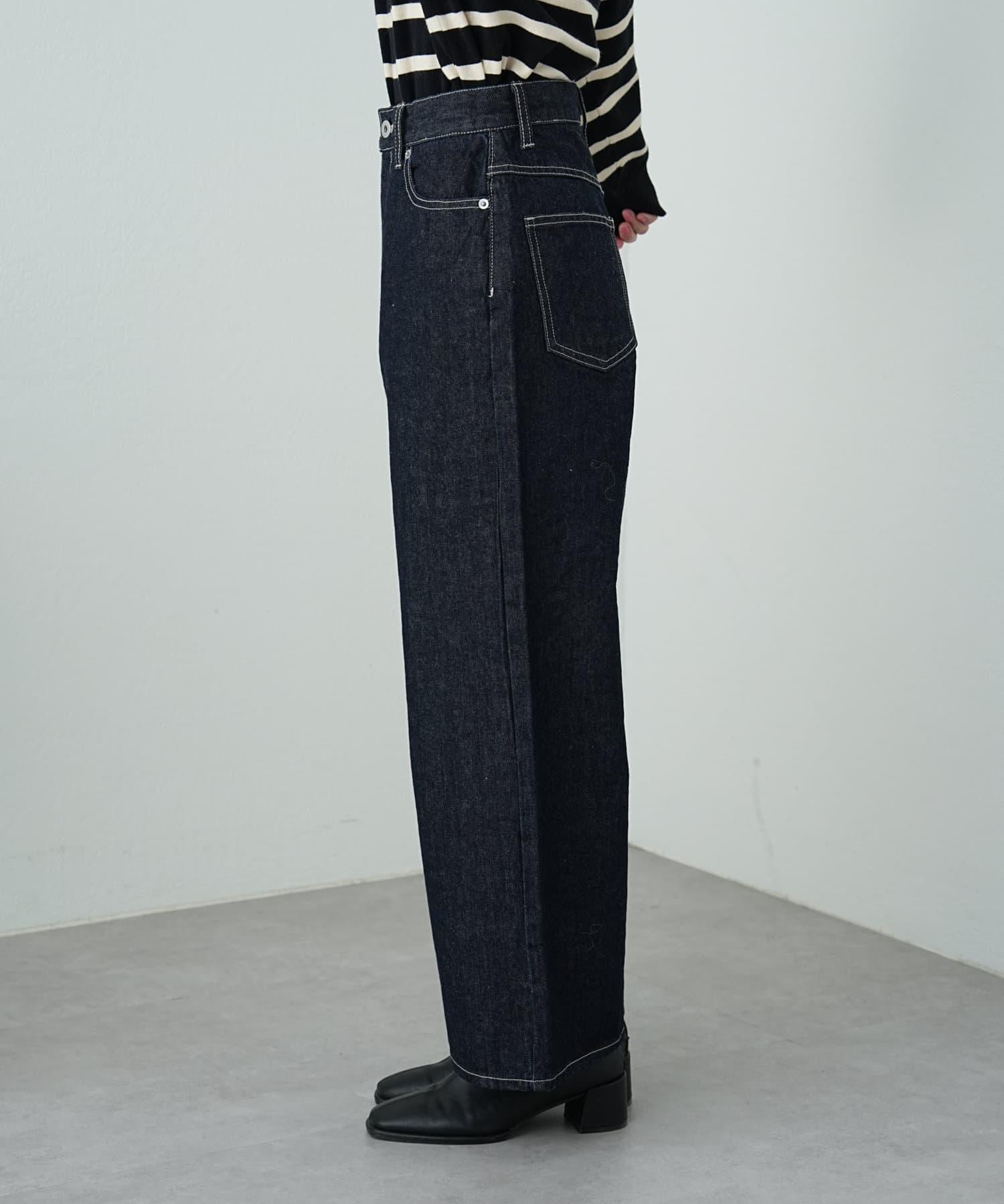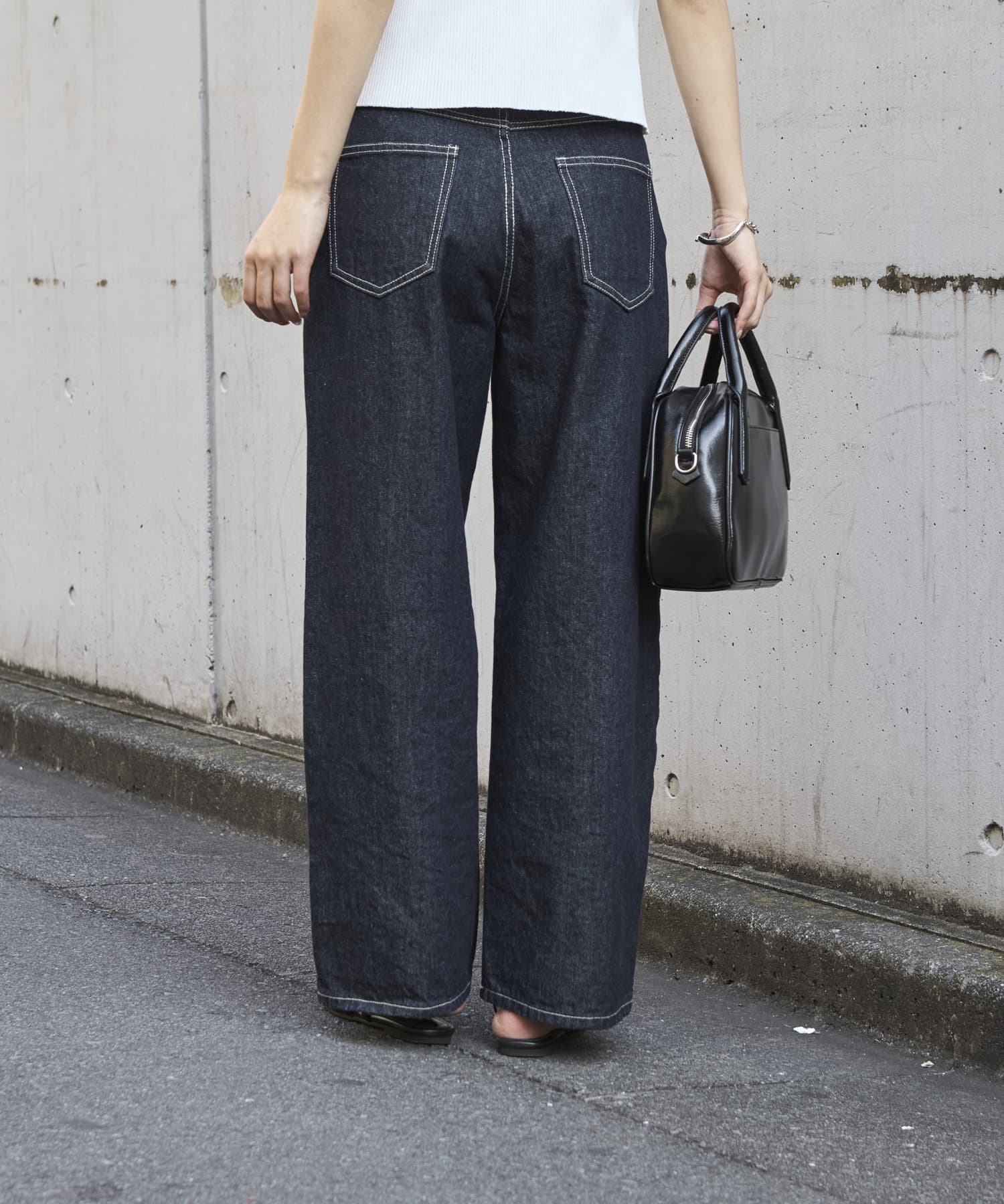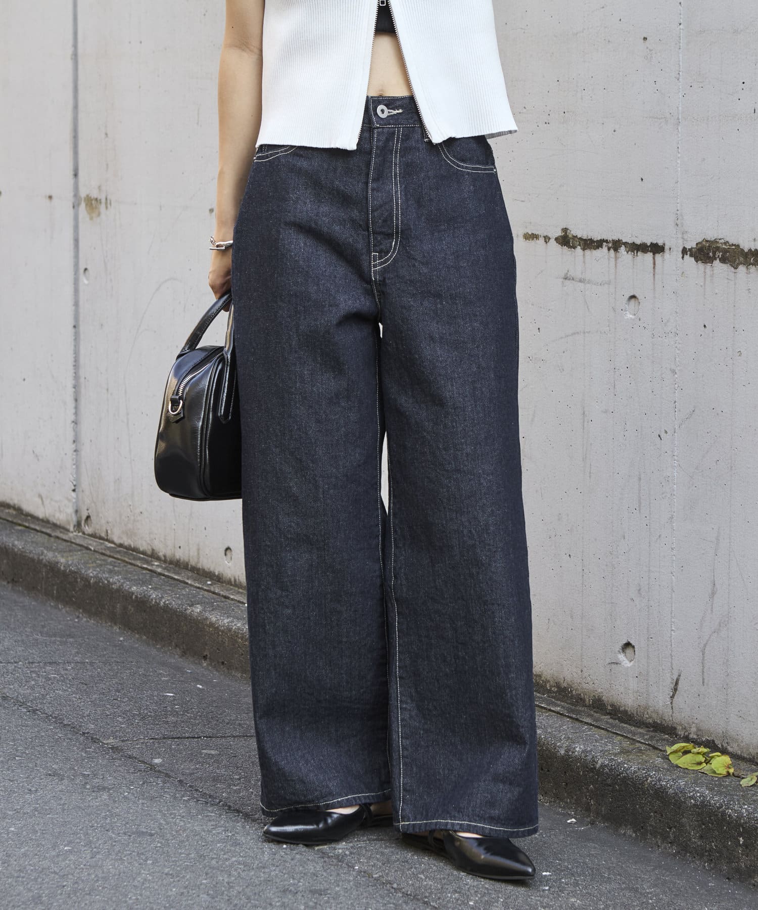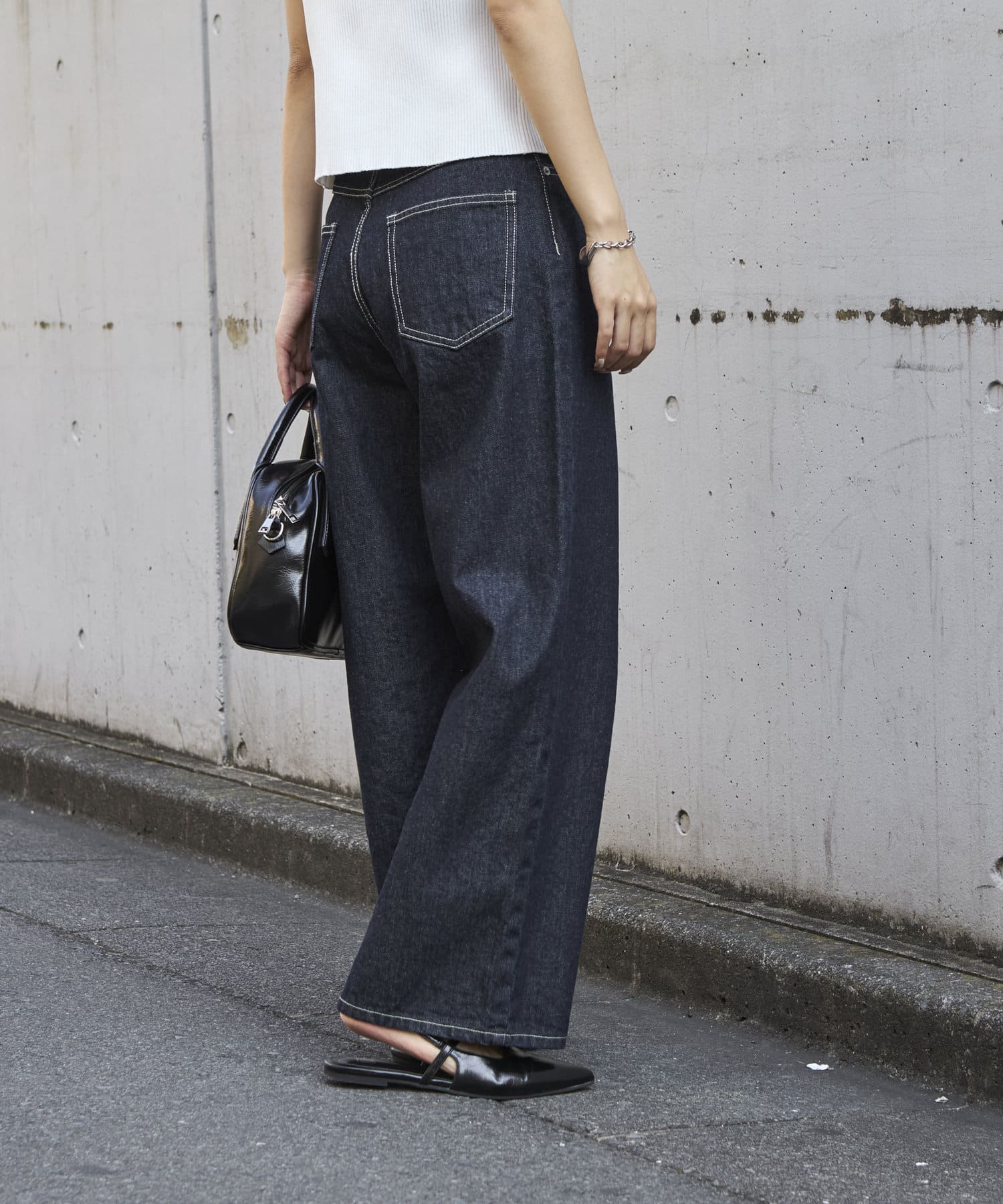 程よいルーズさと履き心地にこだわった大人のワイドデニムパンツ。