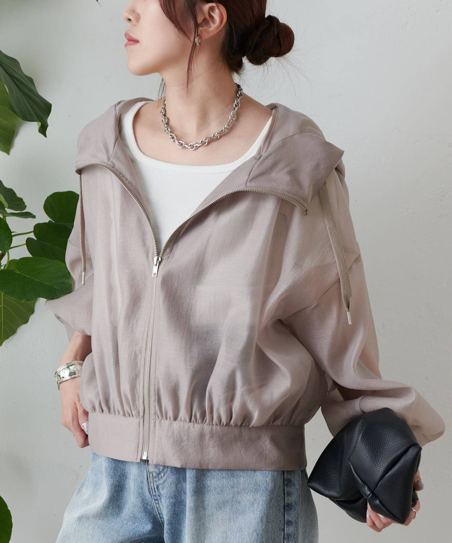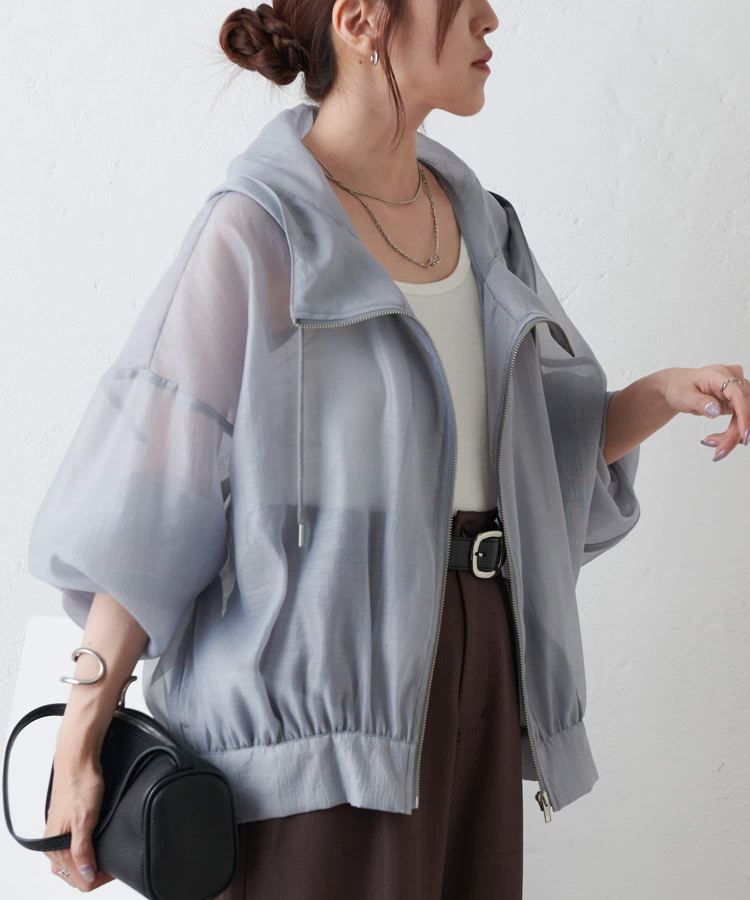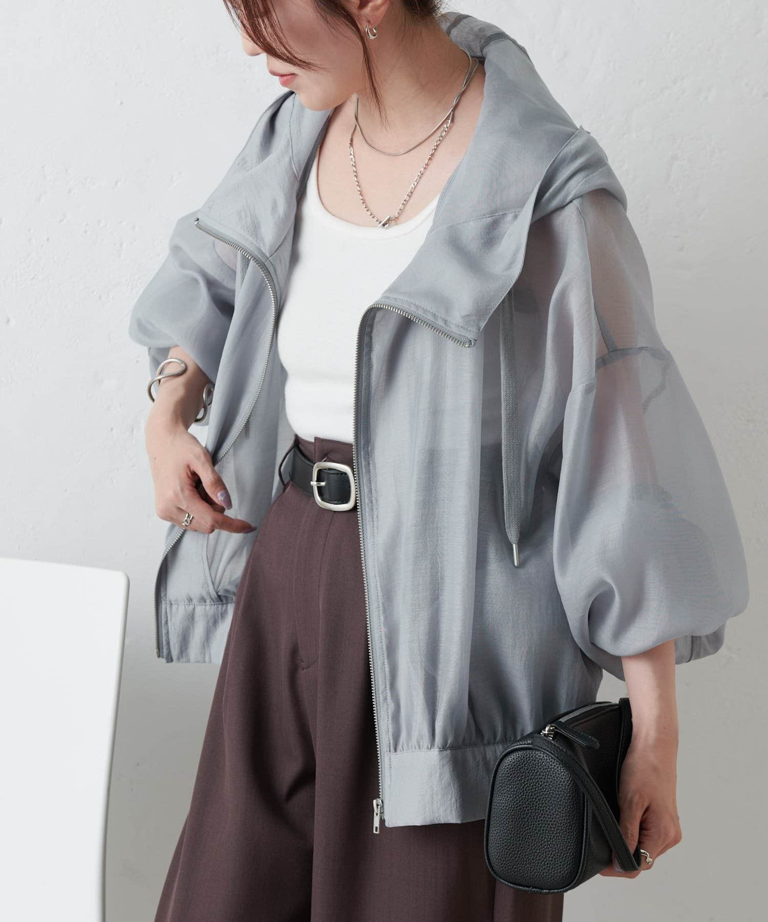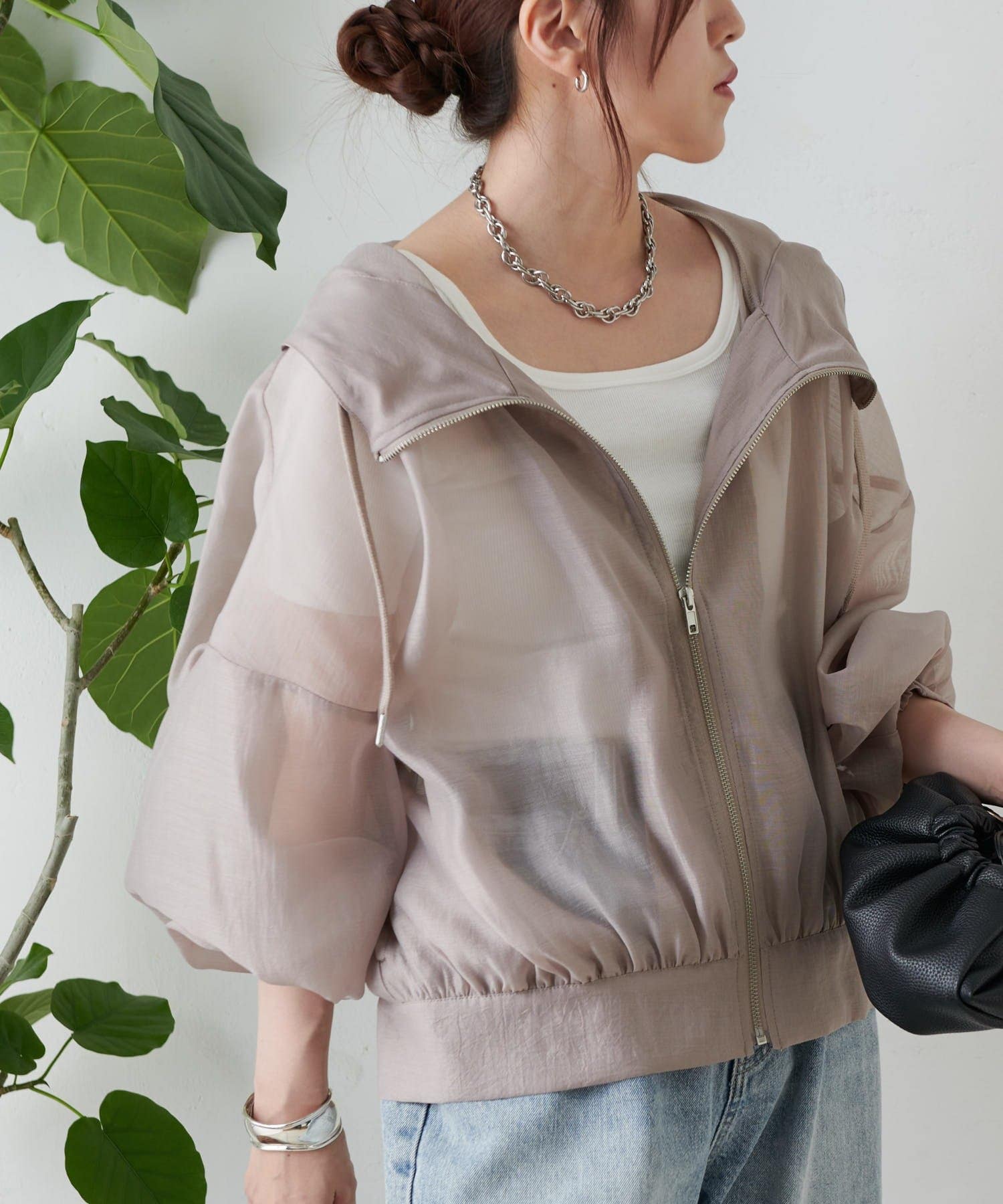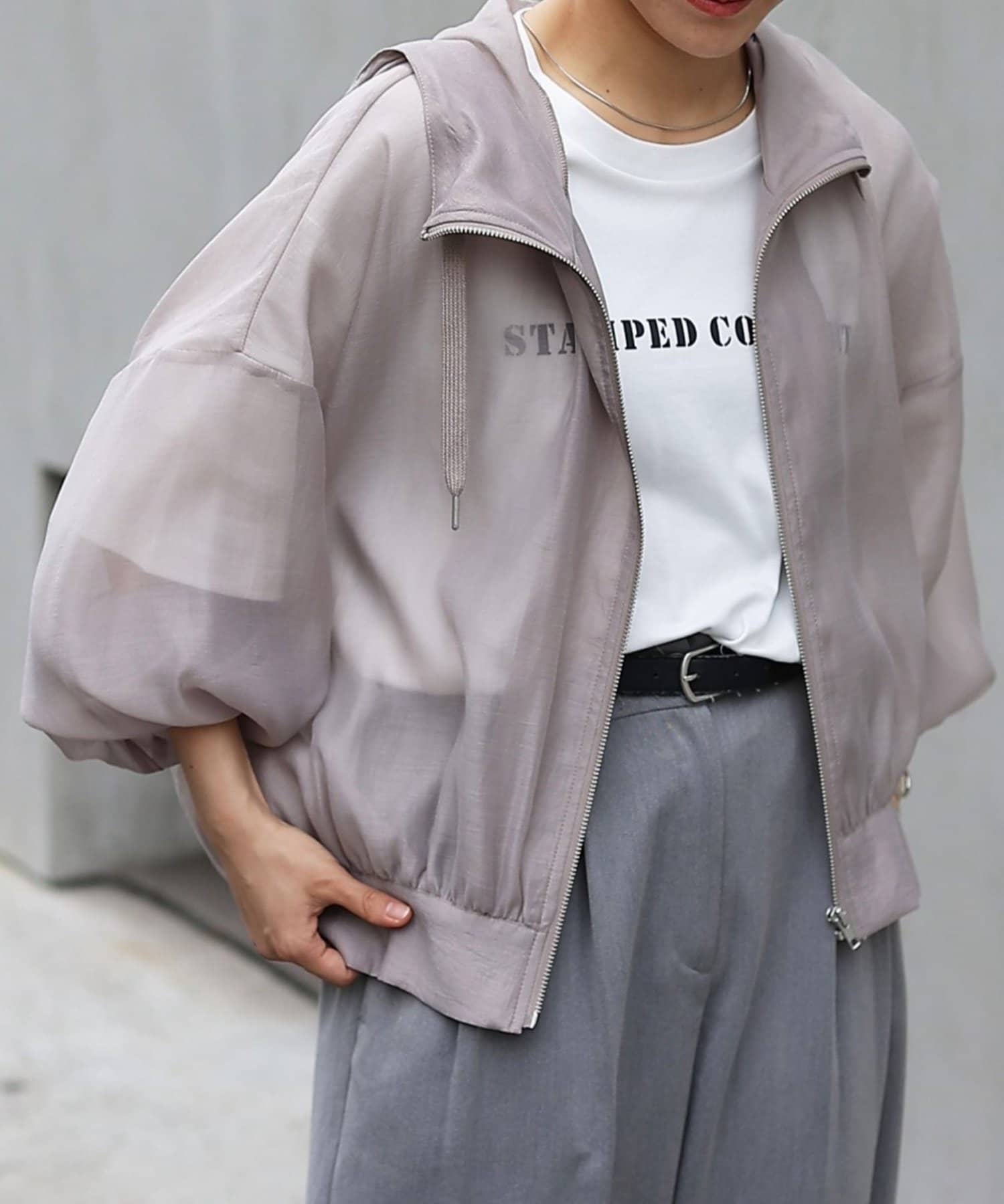 さらっと薄手に軽やかに羽織れるシアー素材のアウターです。