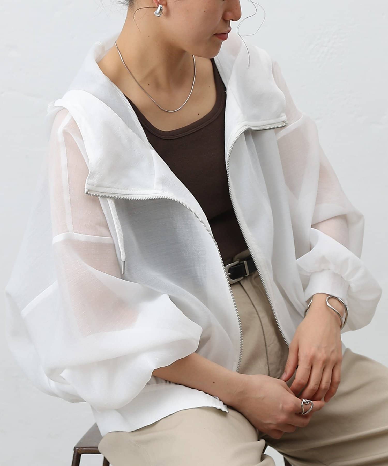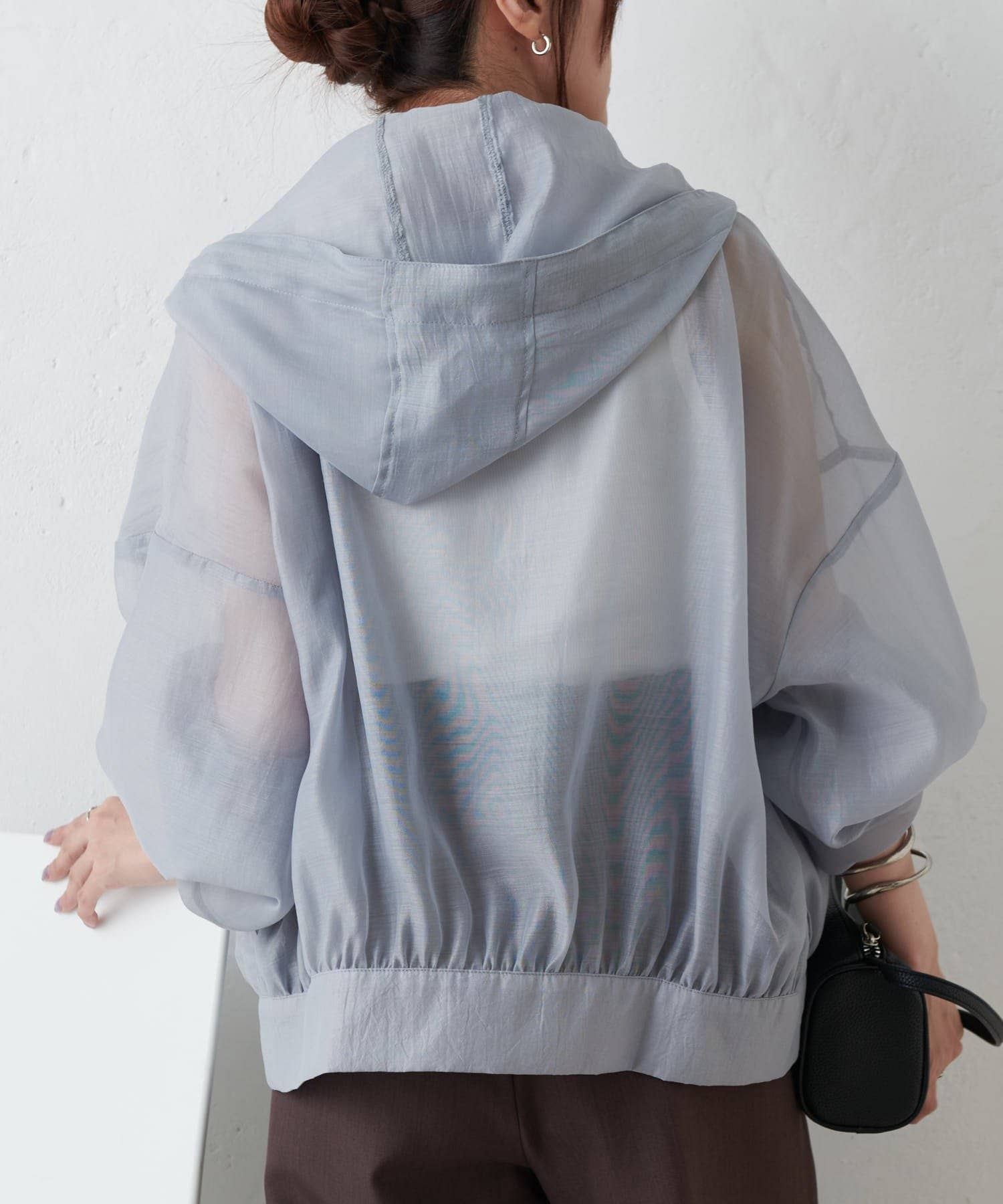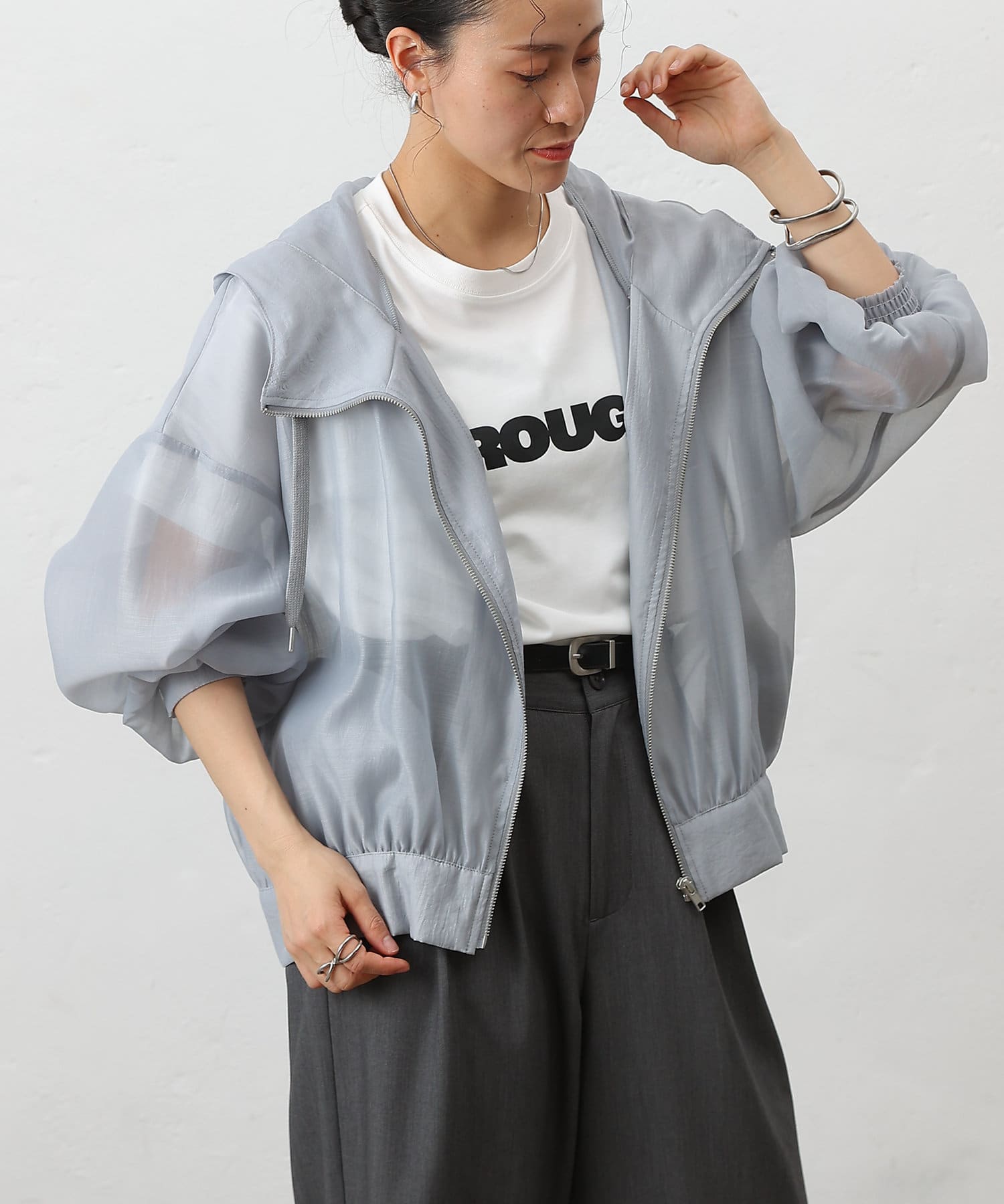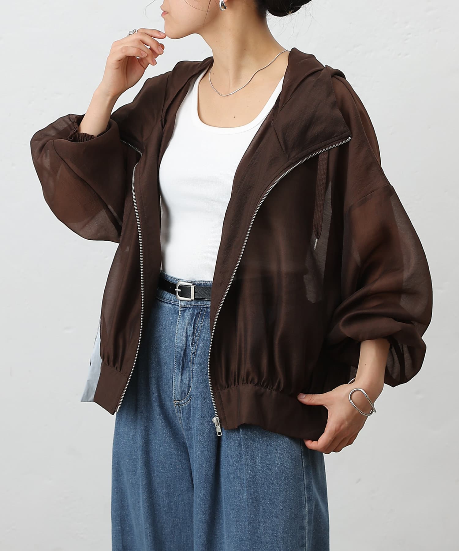 さらっと薄手に軽やかに羽織れるシアー素材のアウターです。