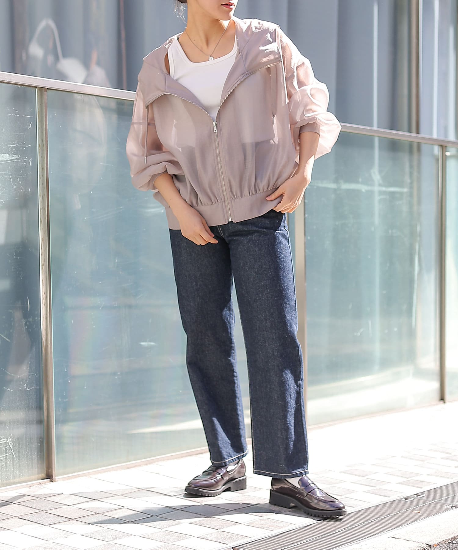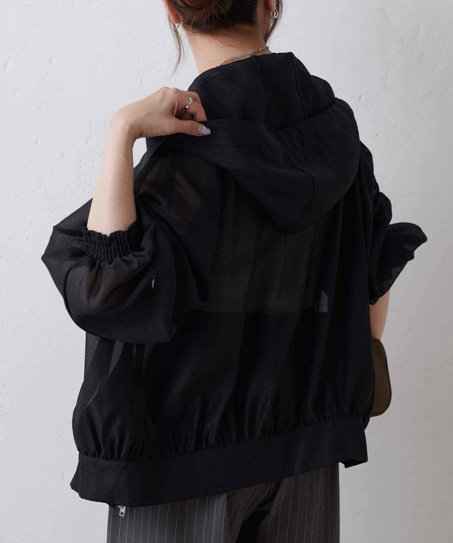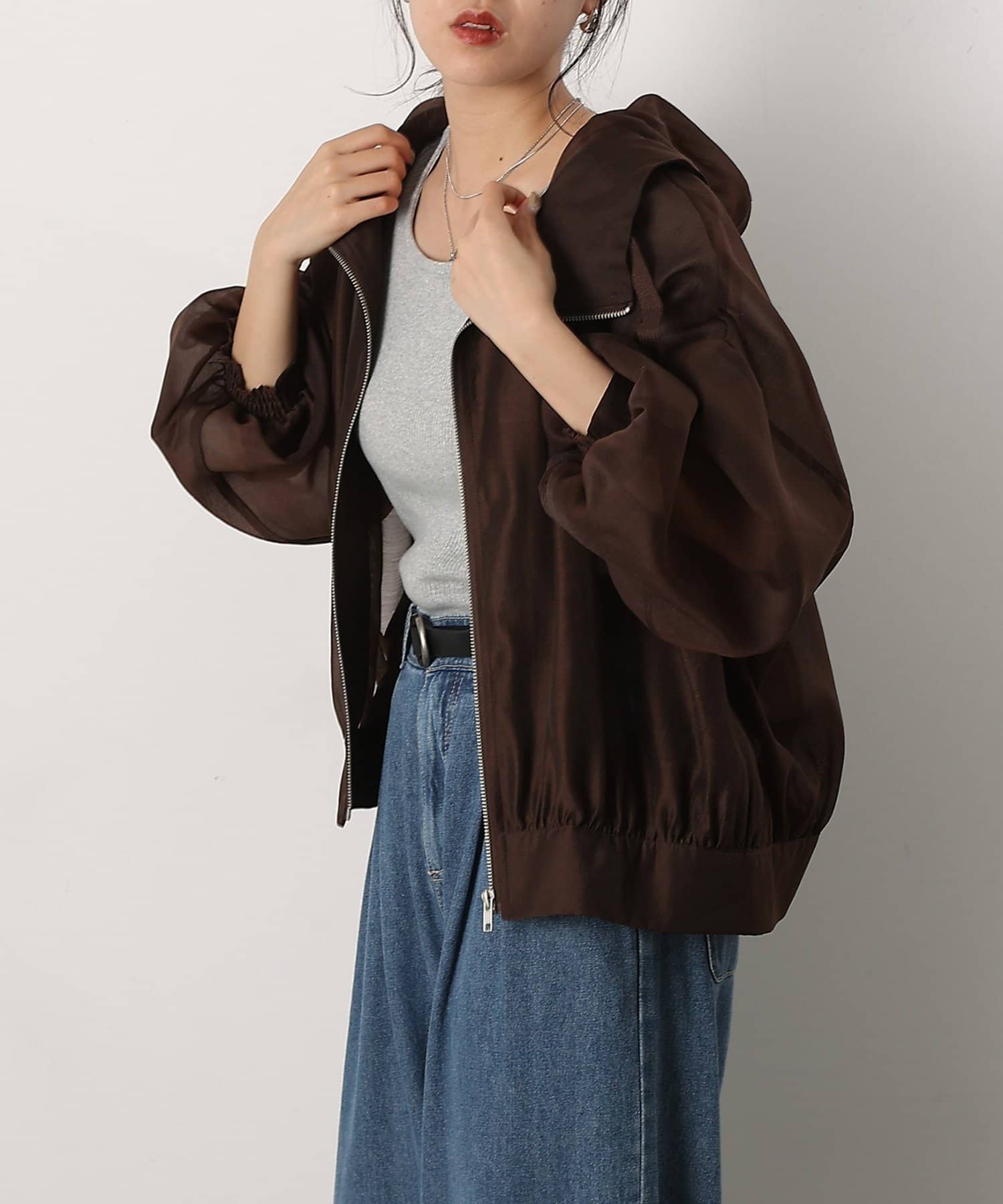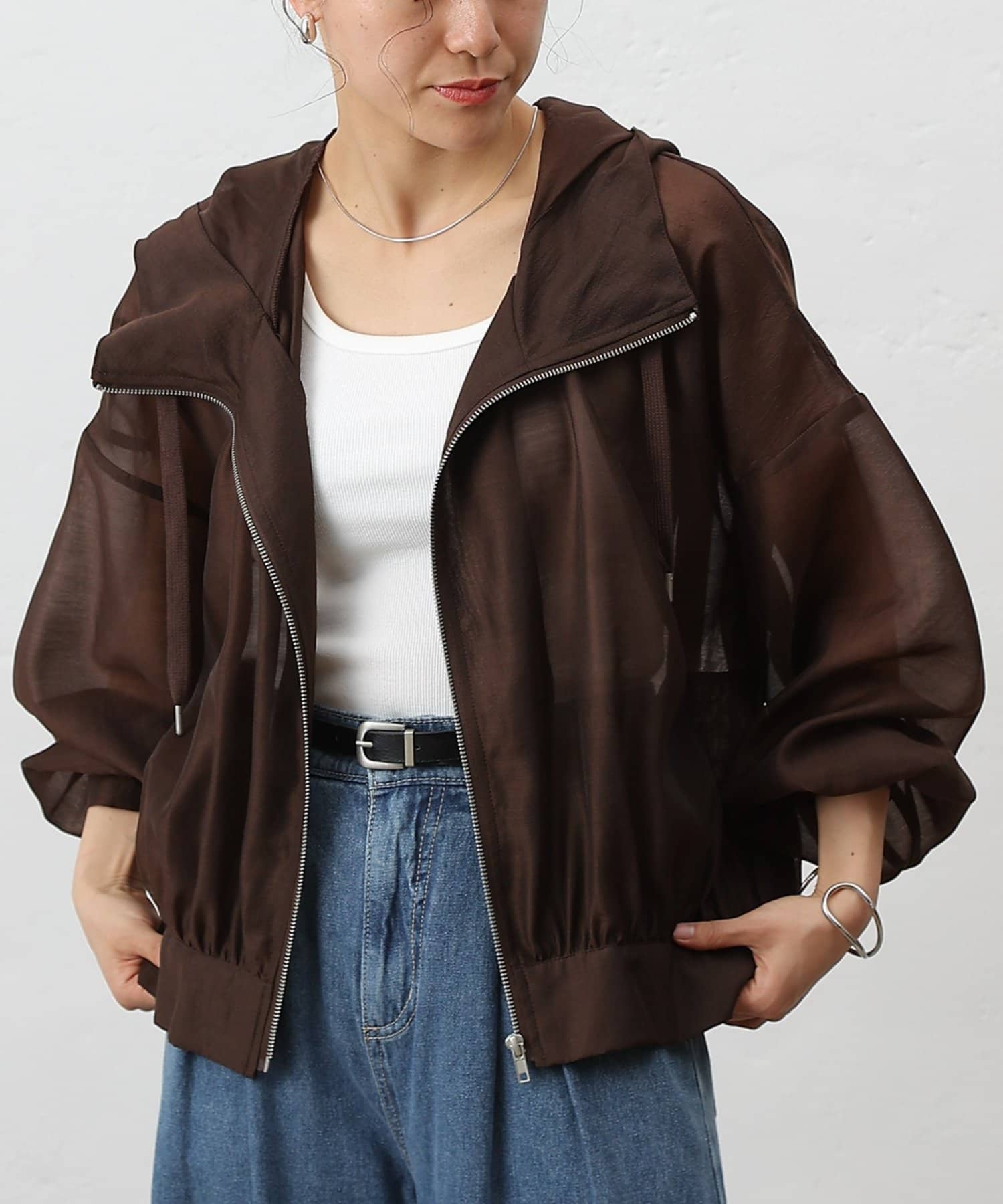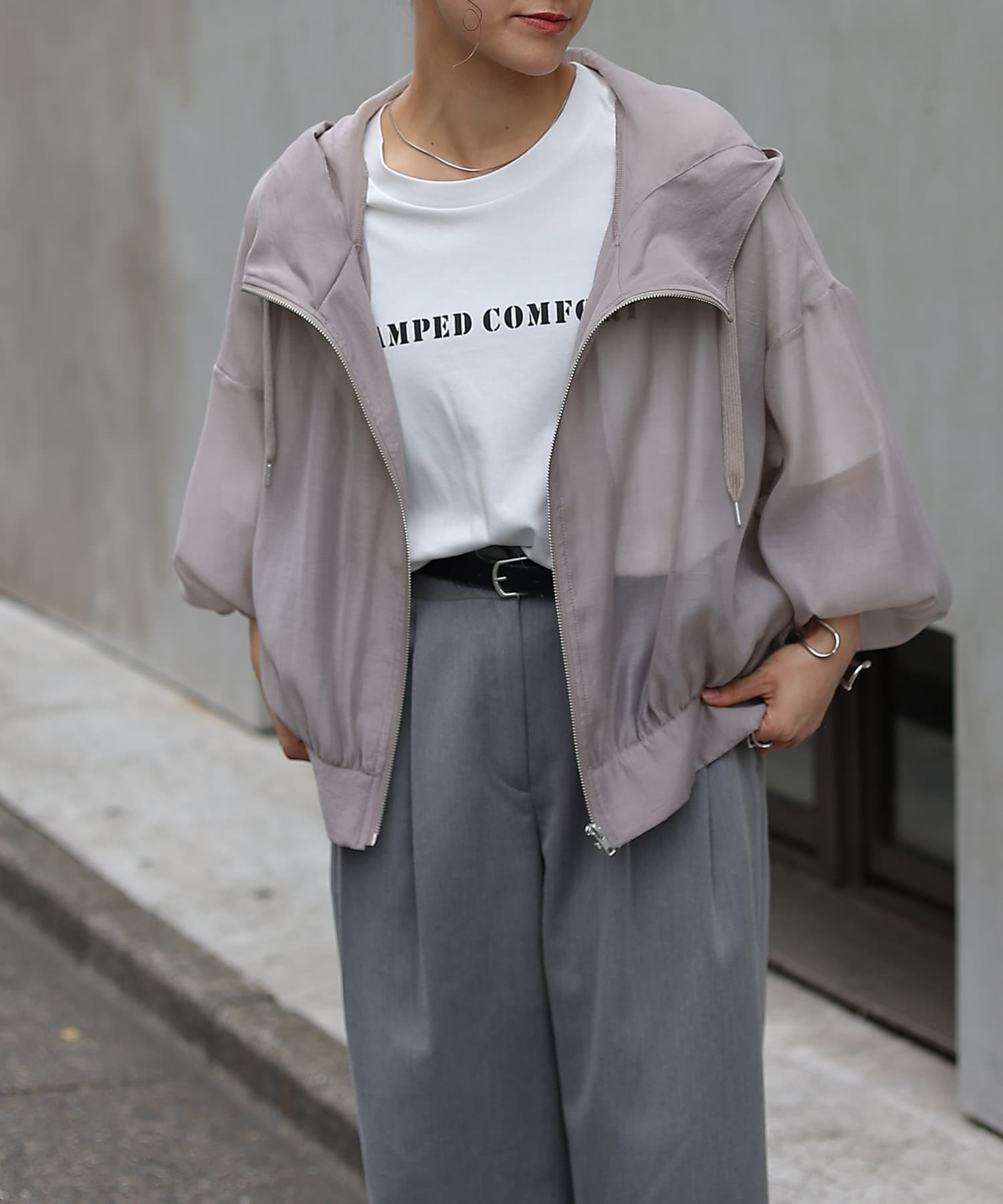 さらっと薄手に軽やかに羽織れるシアー素材のアウターです。