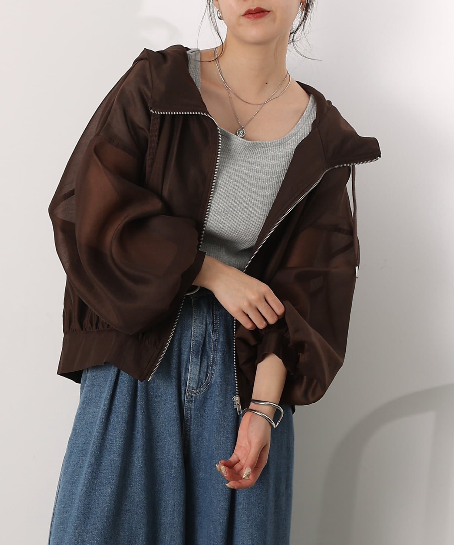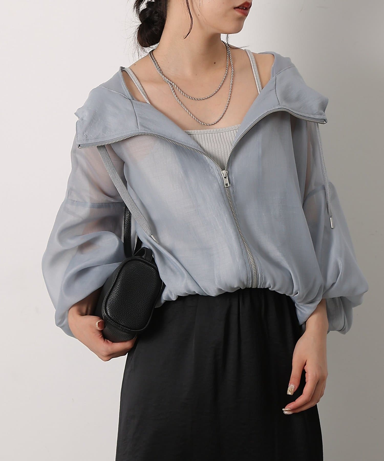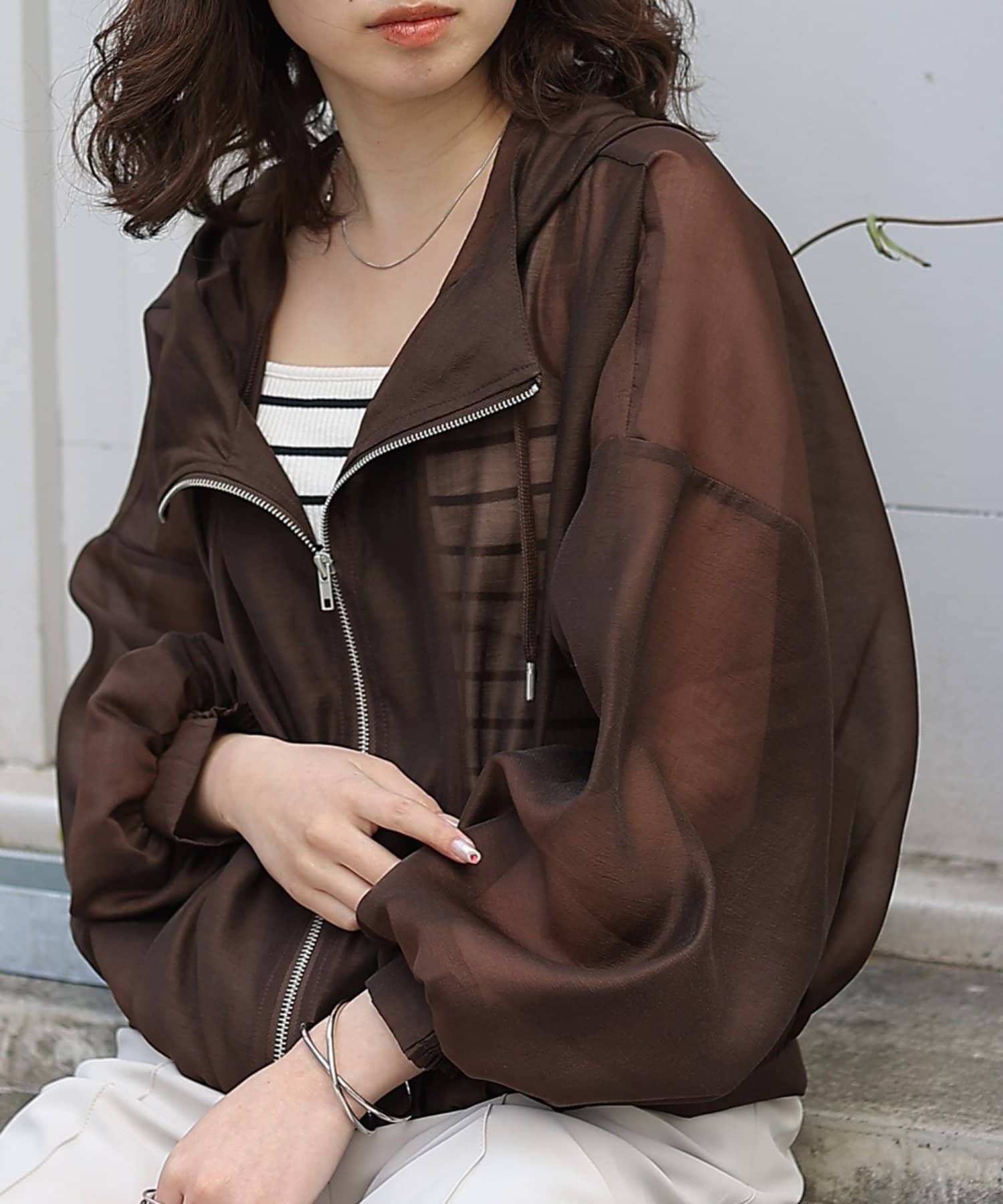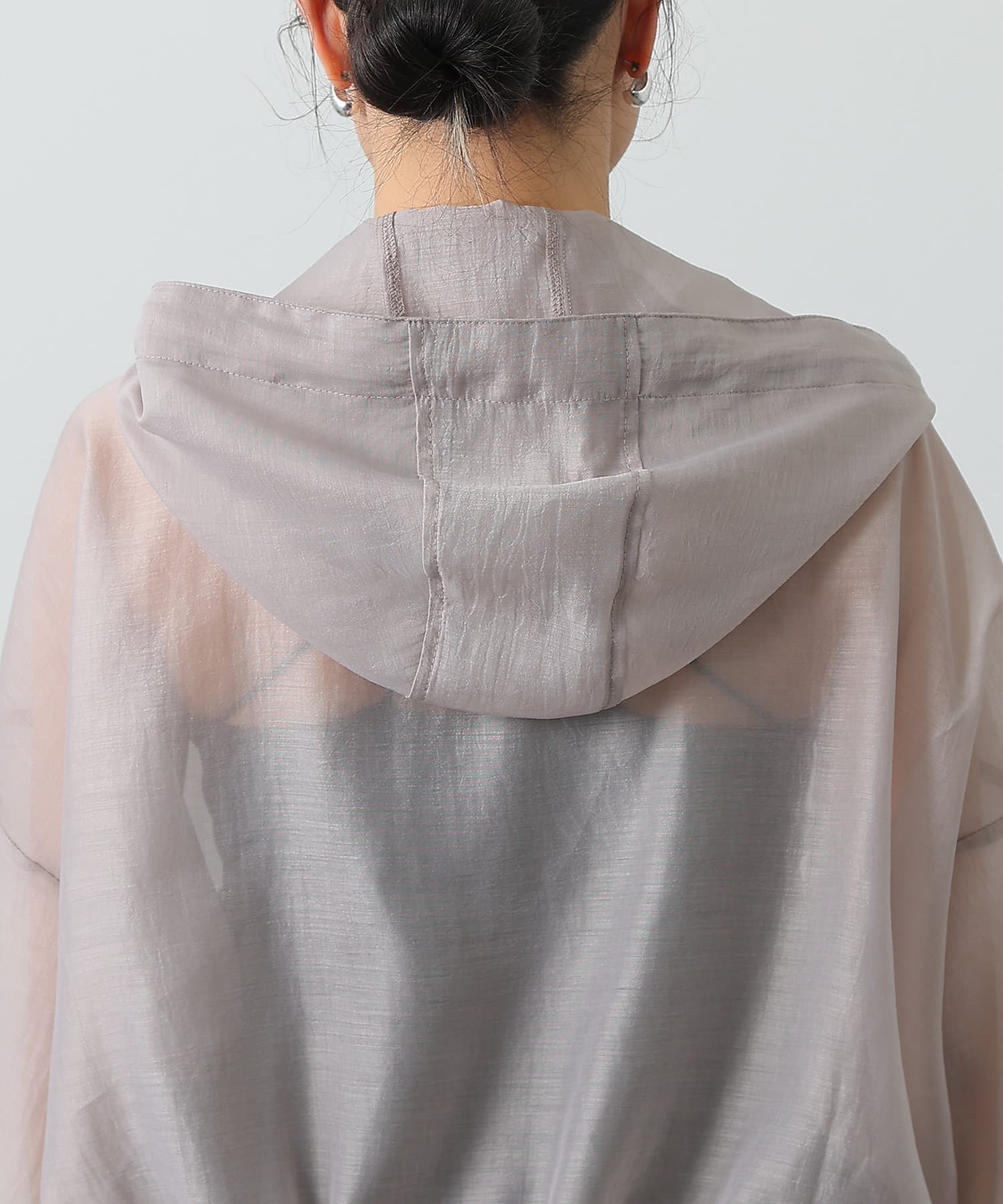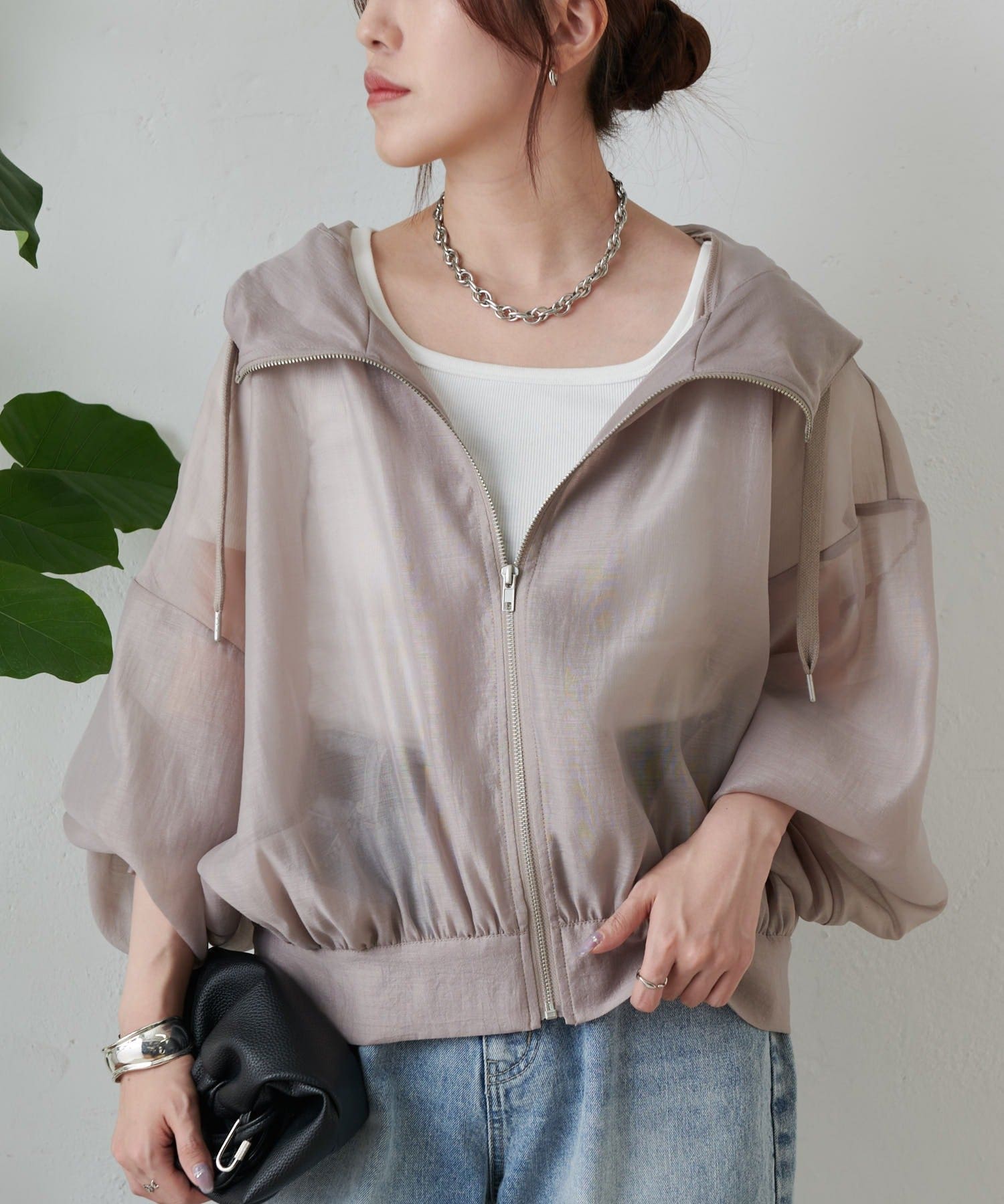 さらっと薄手に軽やかに羽織れるシアー素材のアウターです。