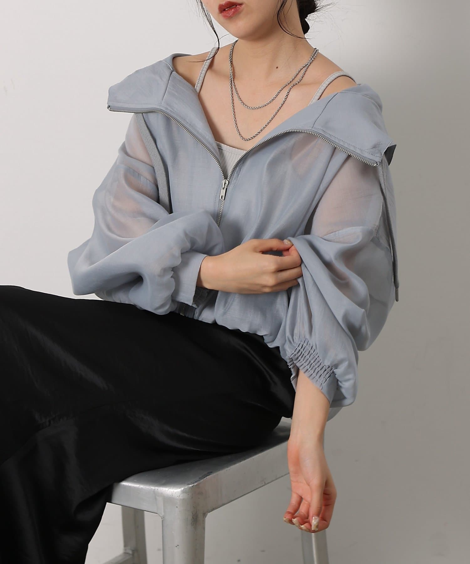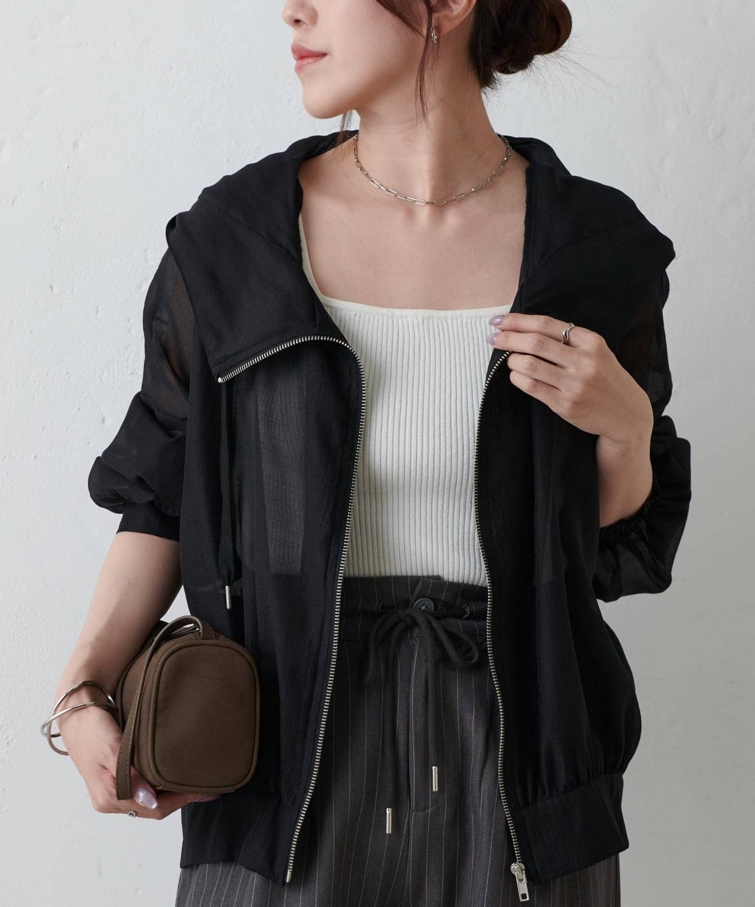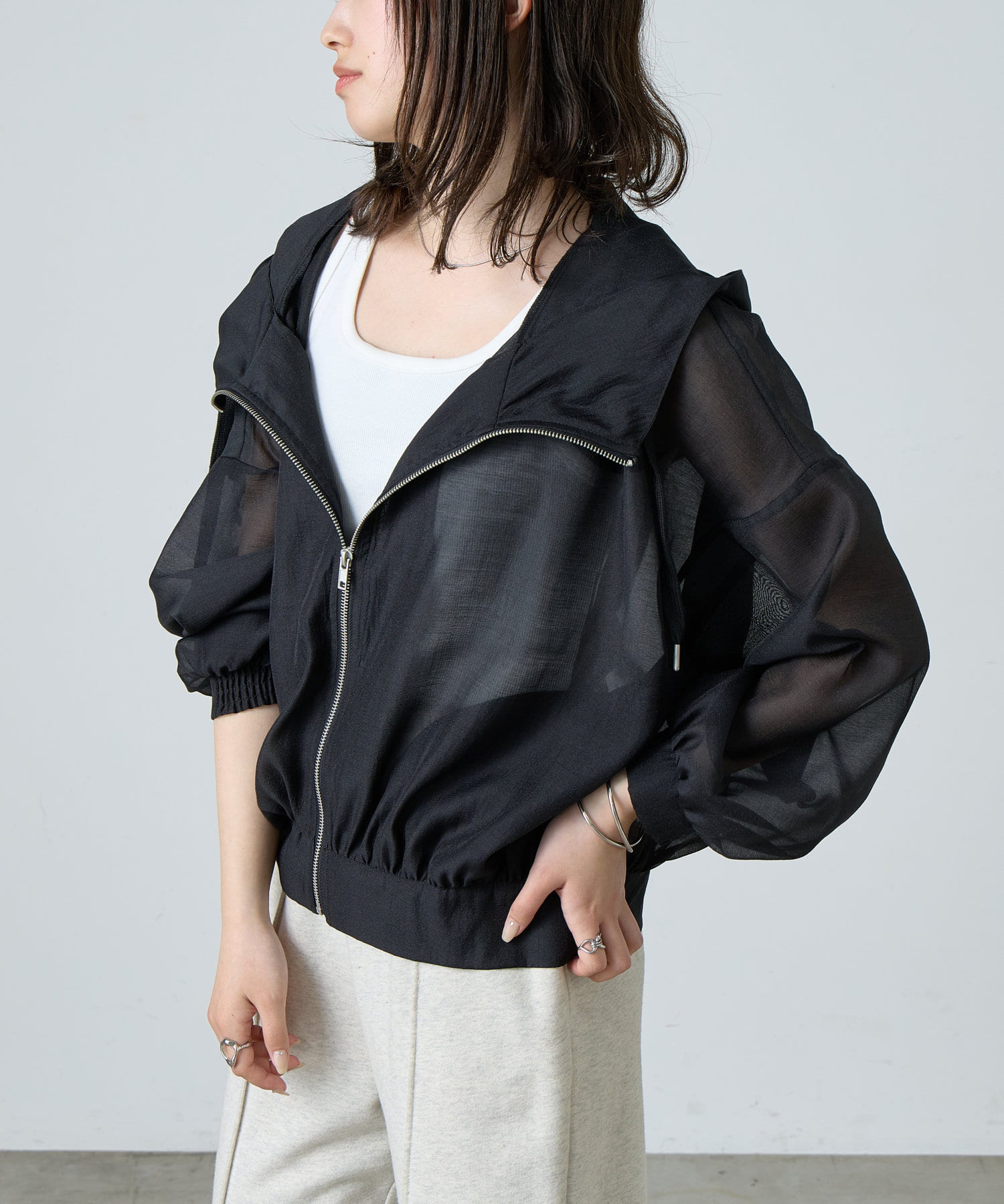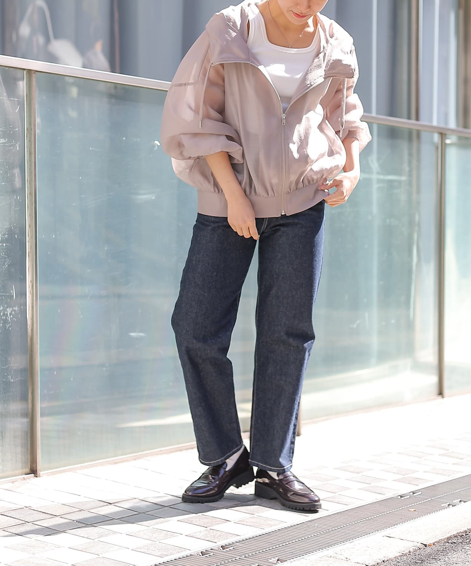 さらっと薄手に軽やかに羽織れるシアー素材のアウターです。