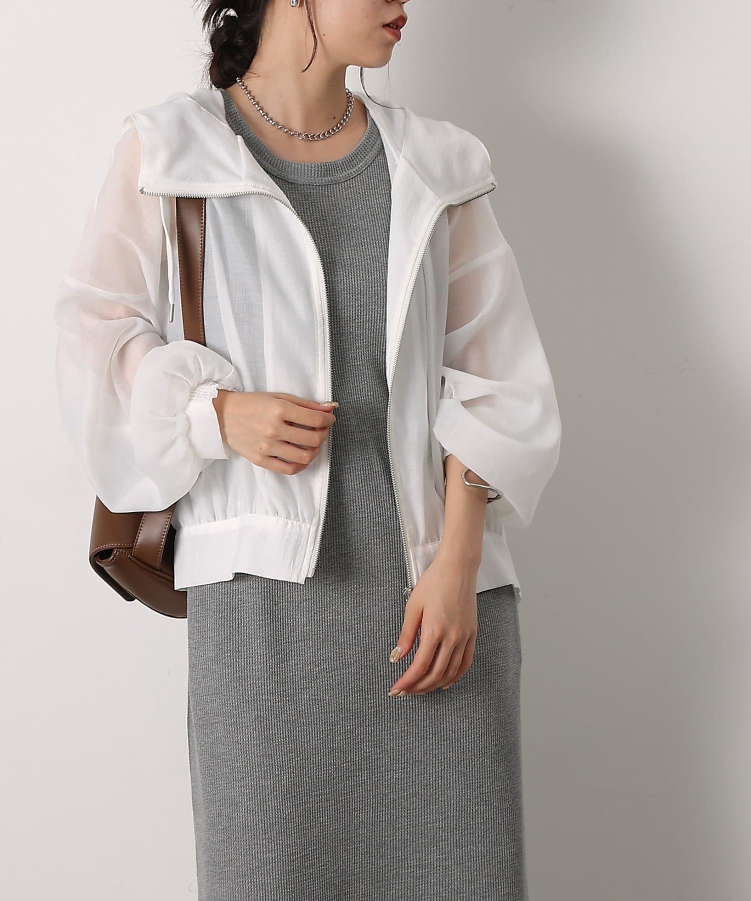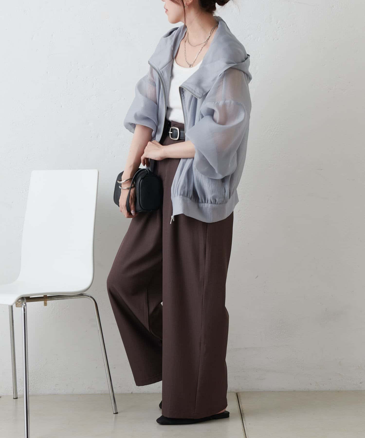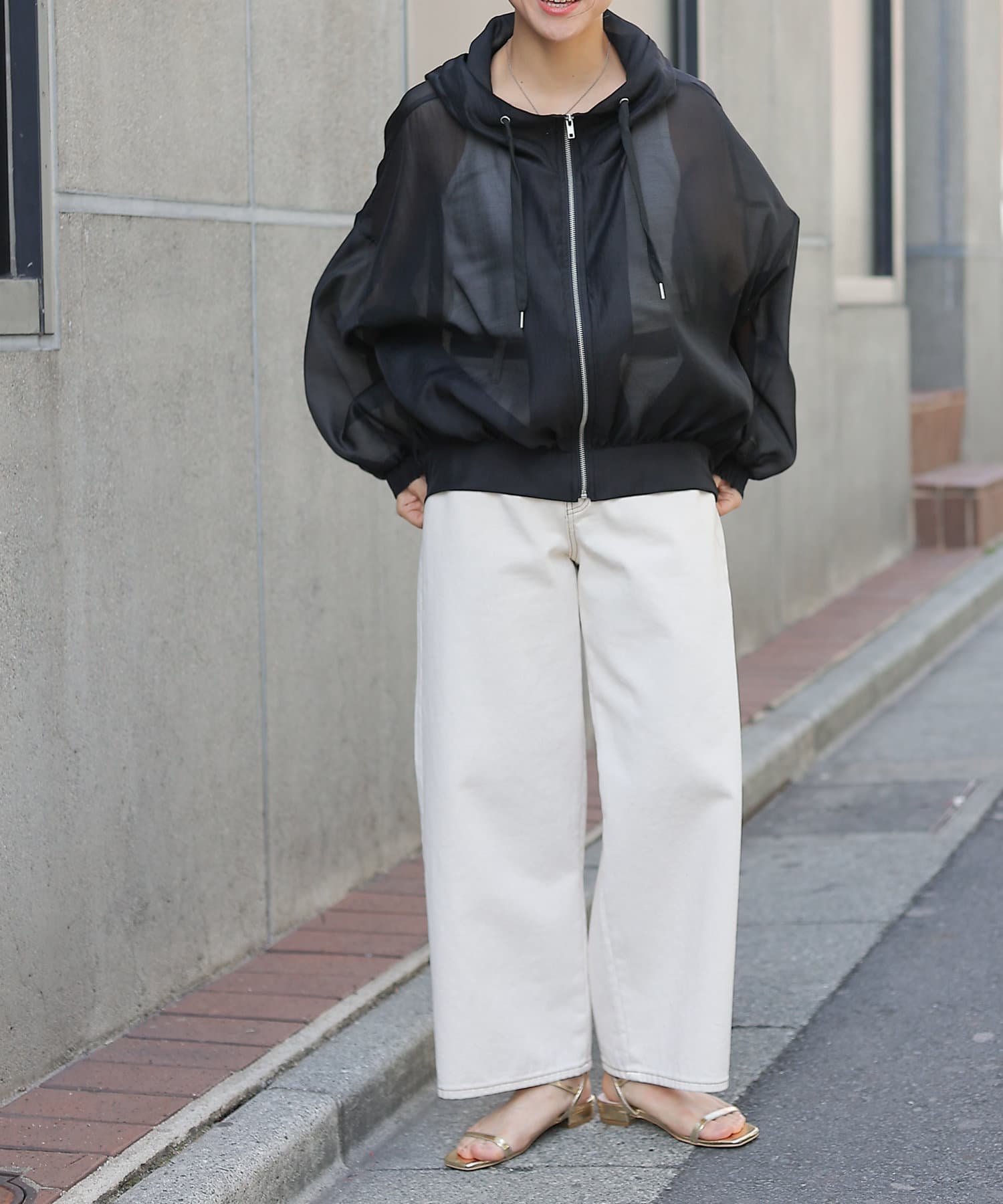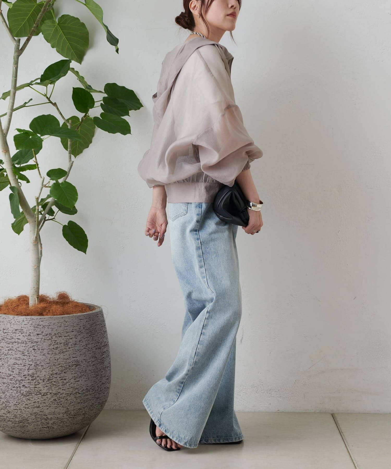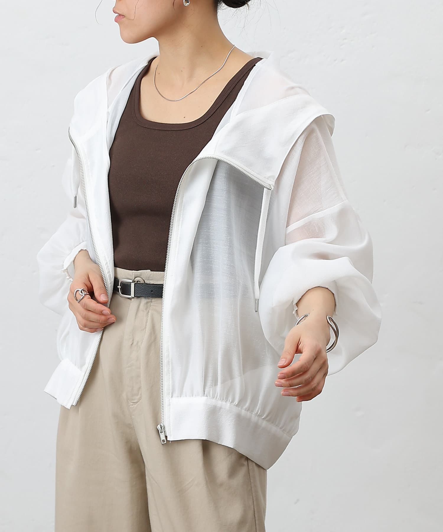 さらっと薄手に軽やかに羽織れるシアー素材のアウターです。