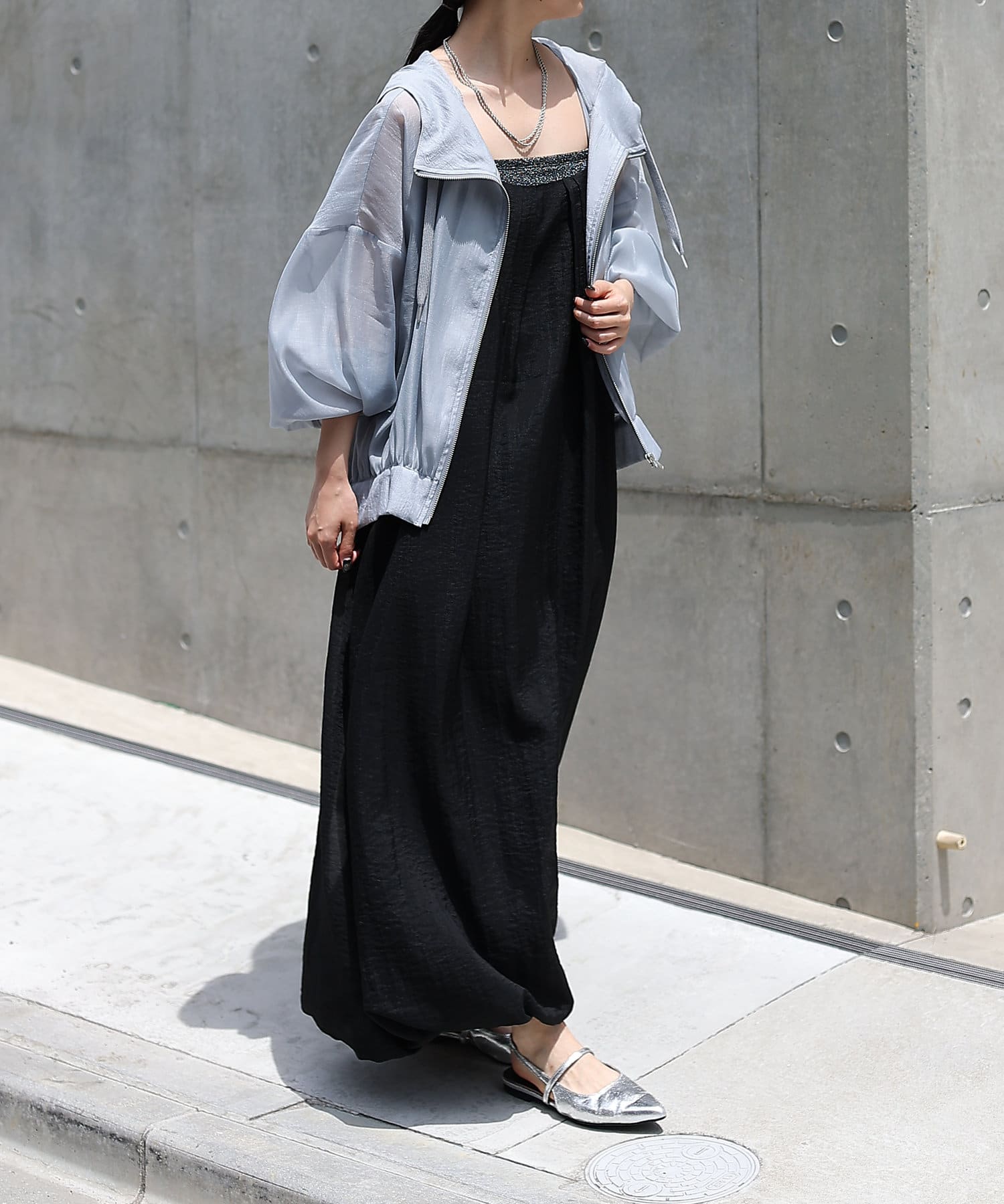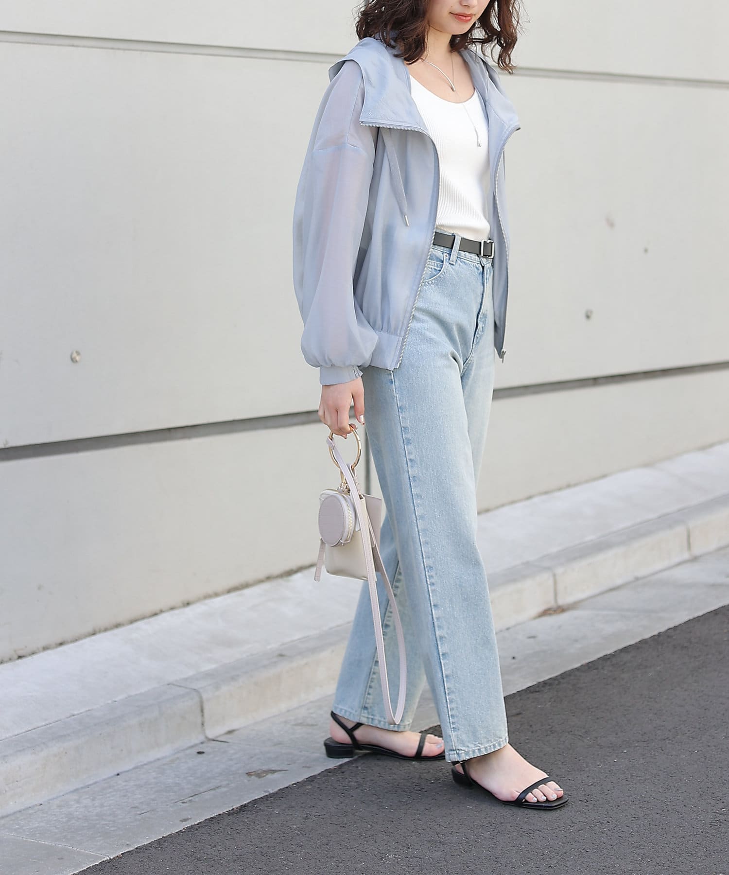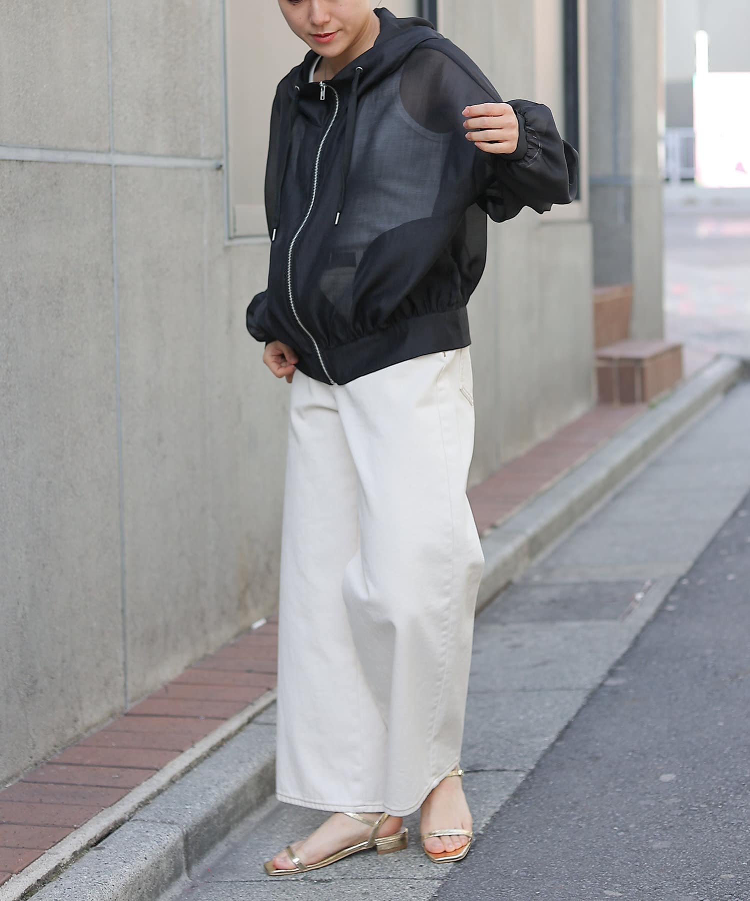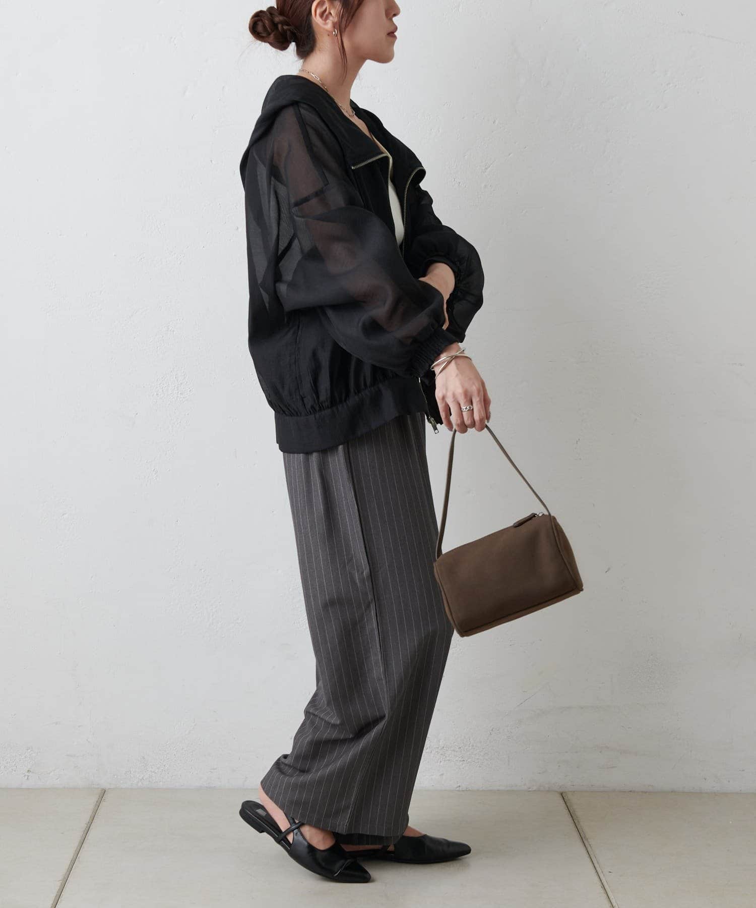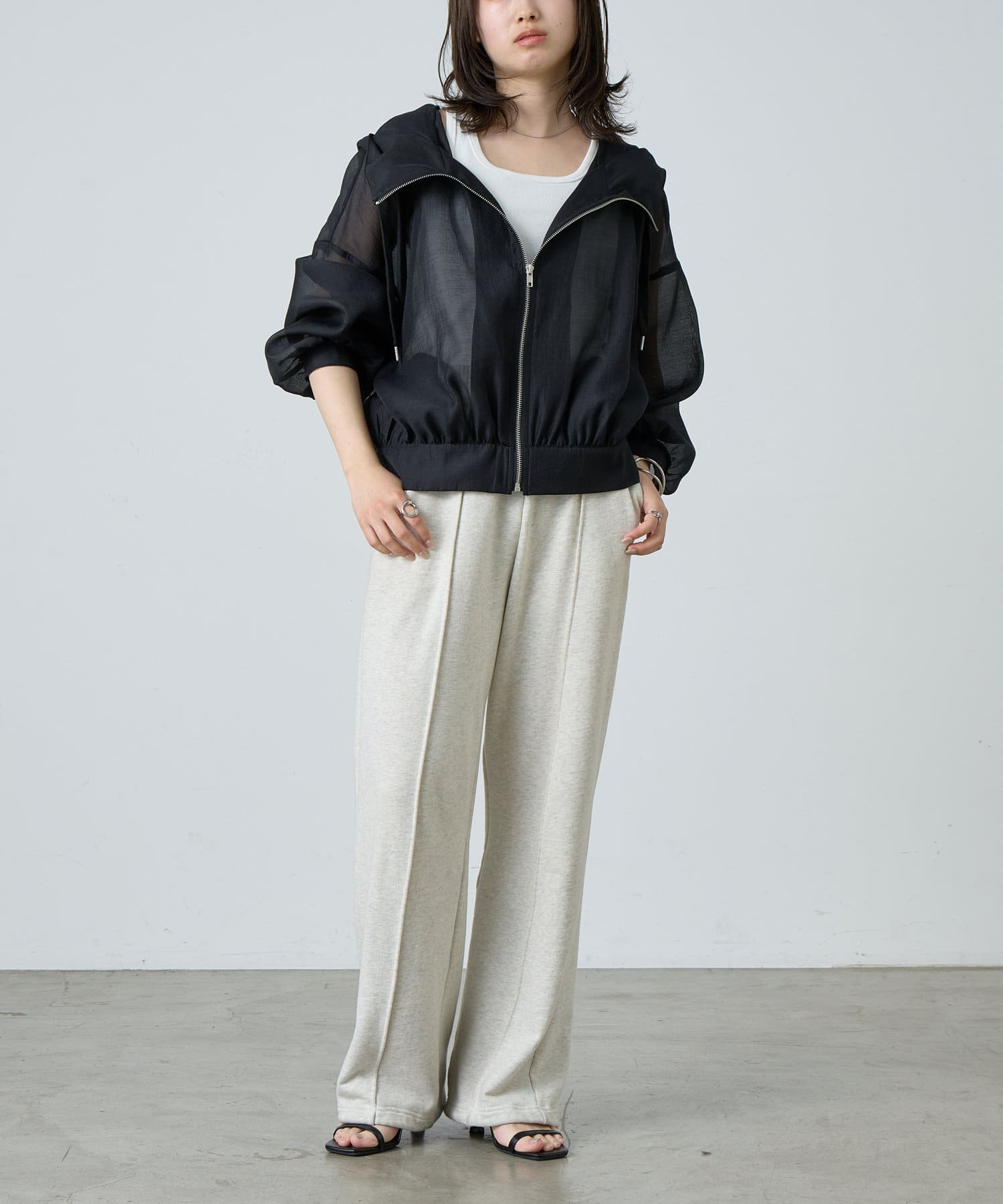 さらっと薄手に軽やかに羽織れるシアー素材のアウターです。