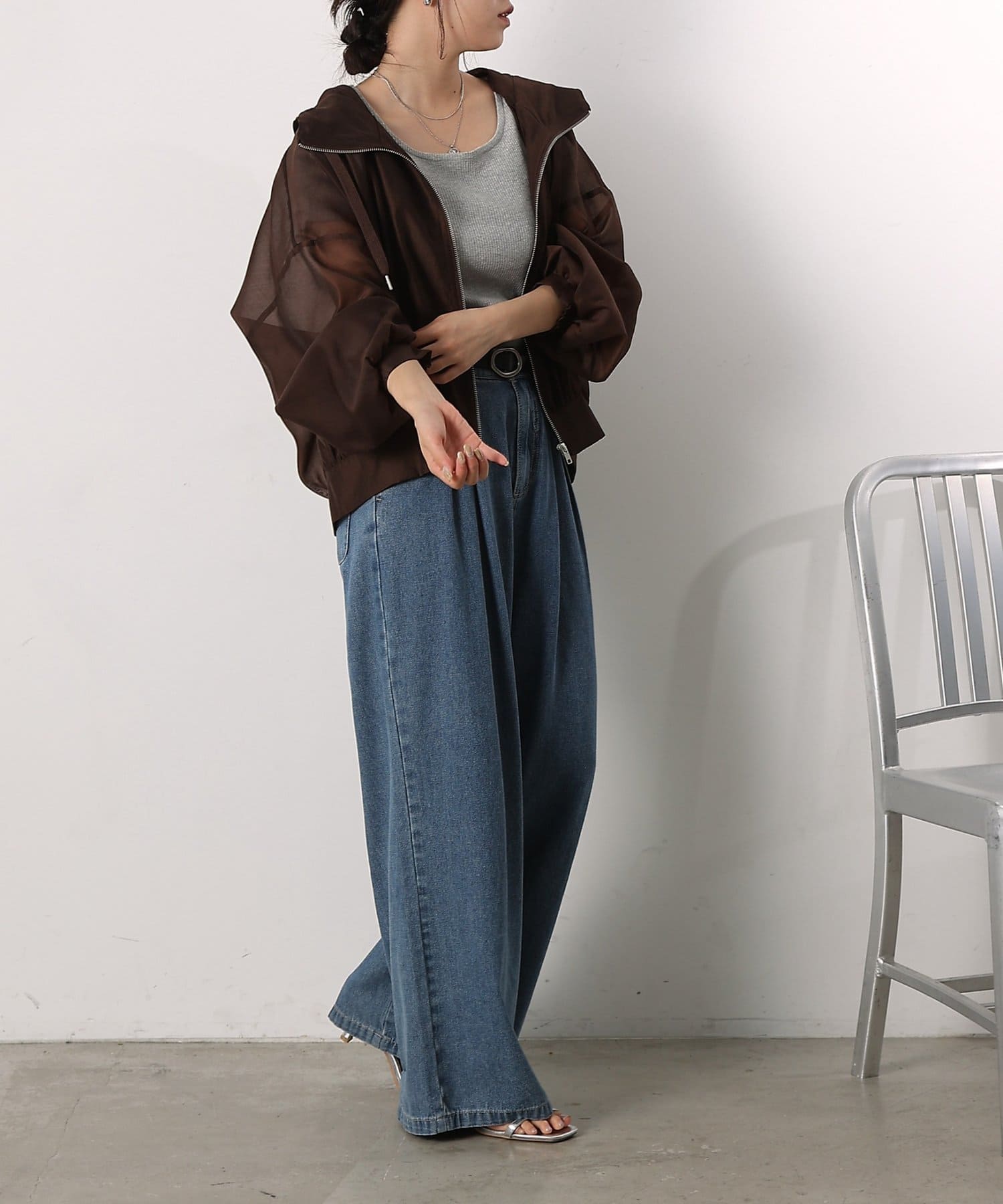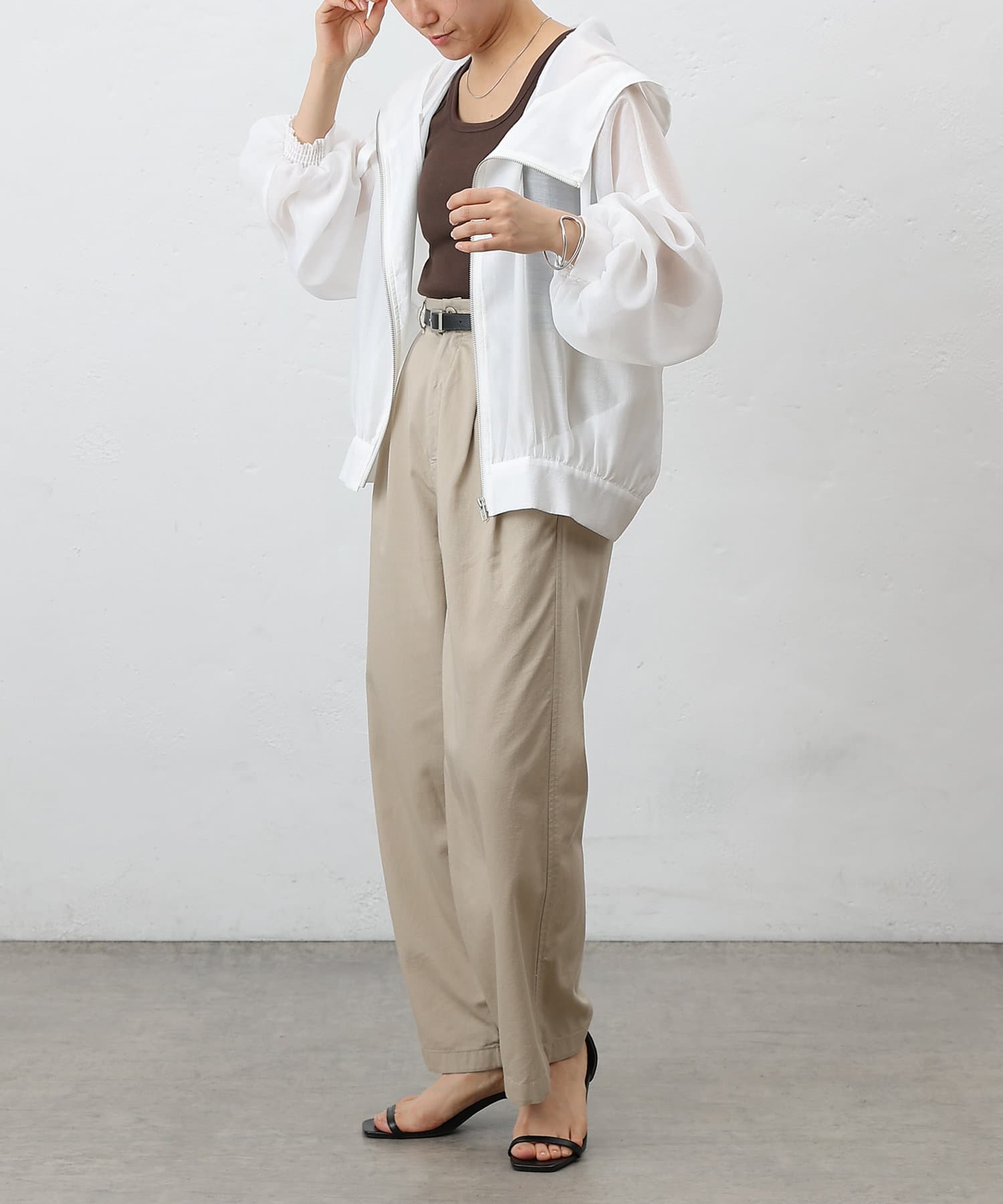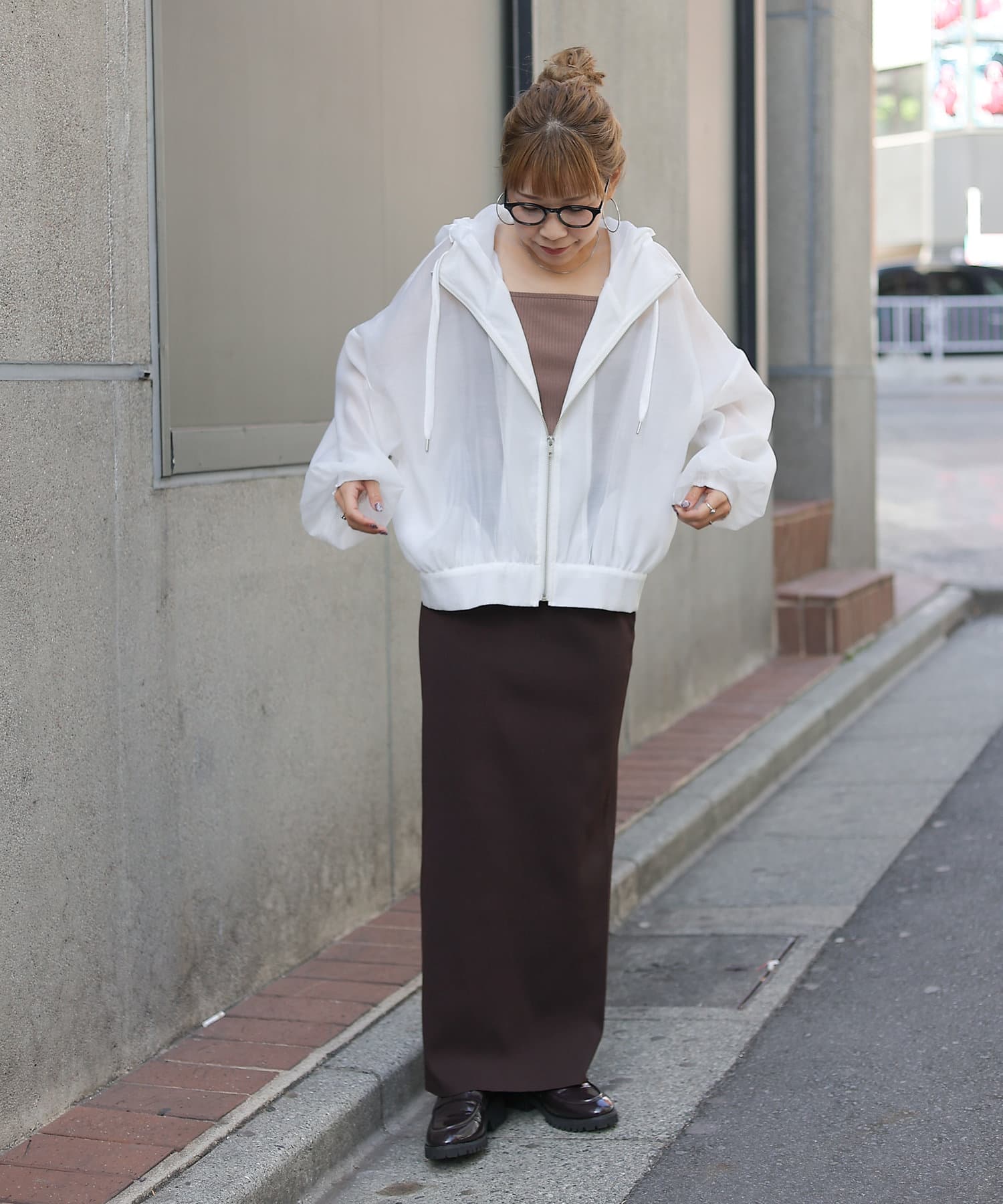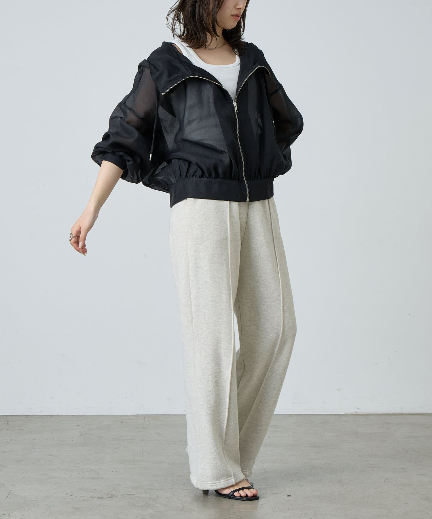 さらっと薄手に軽やかに羽織れるシアー素材のアウターです。