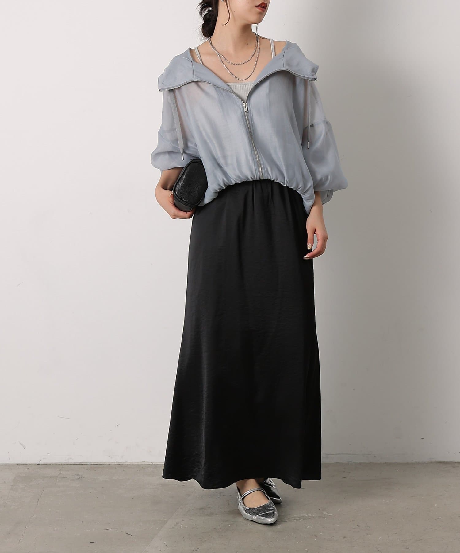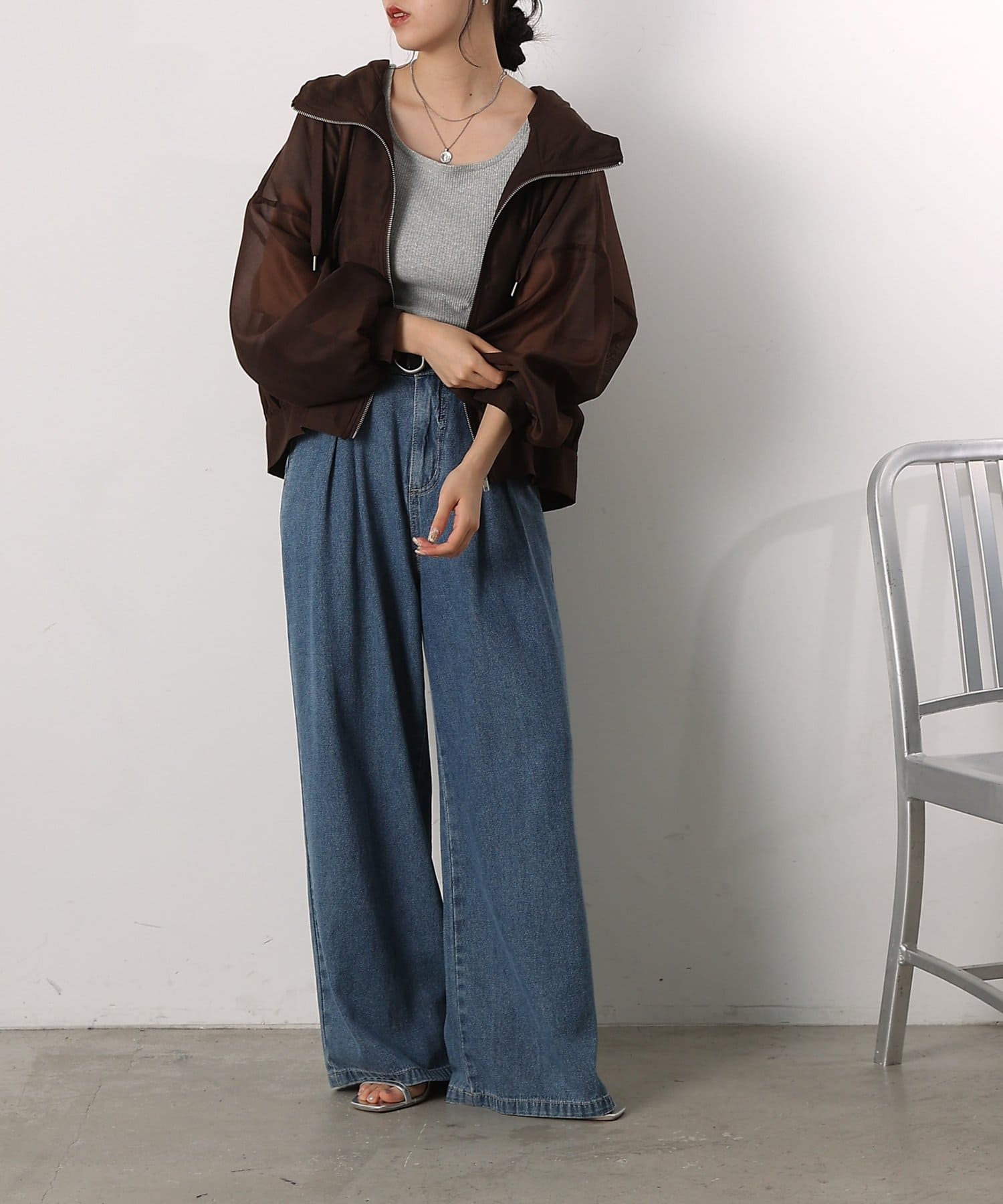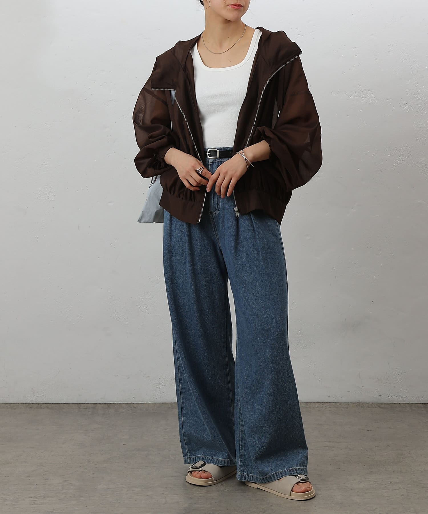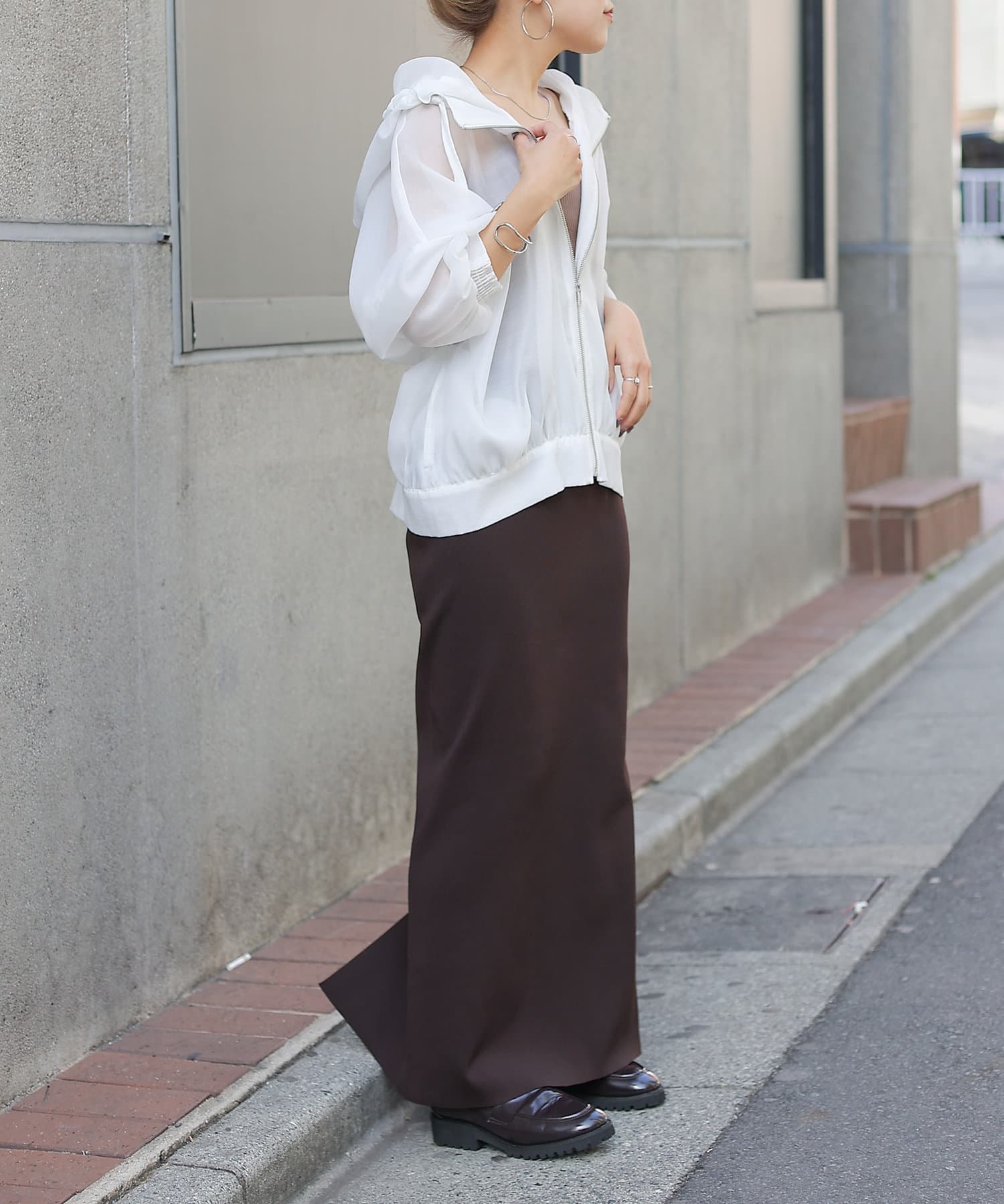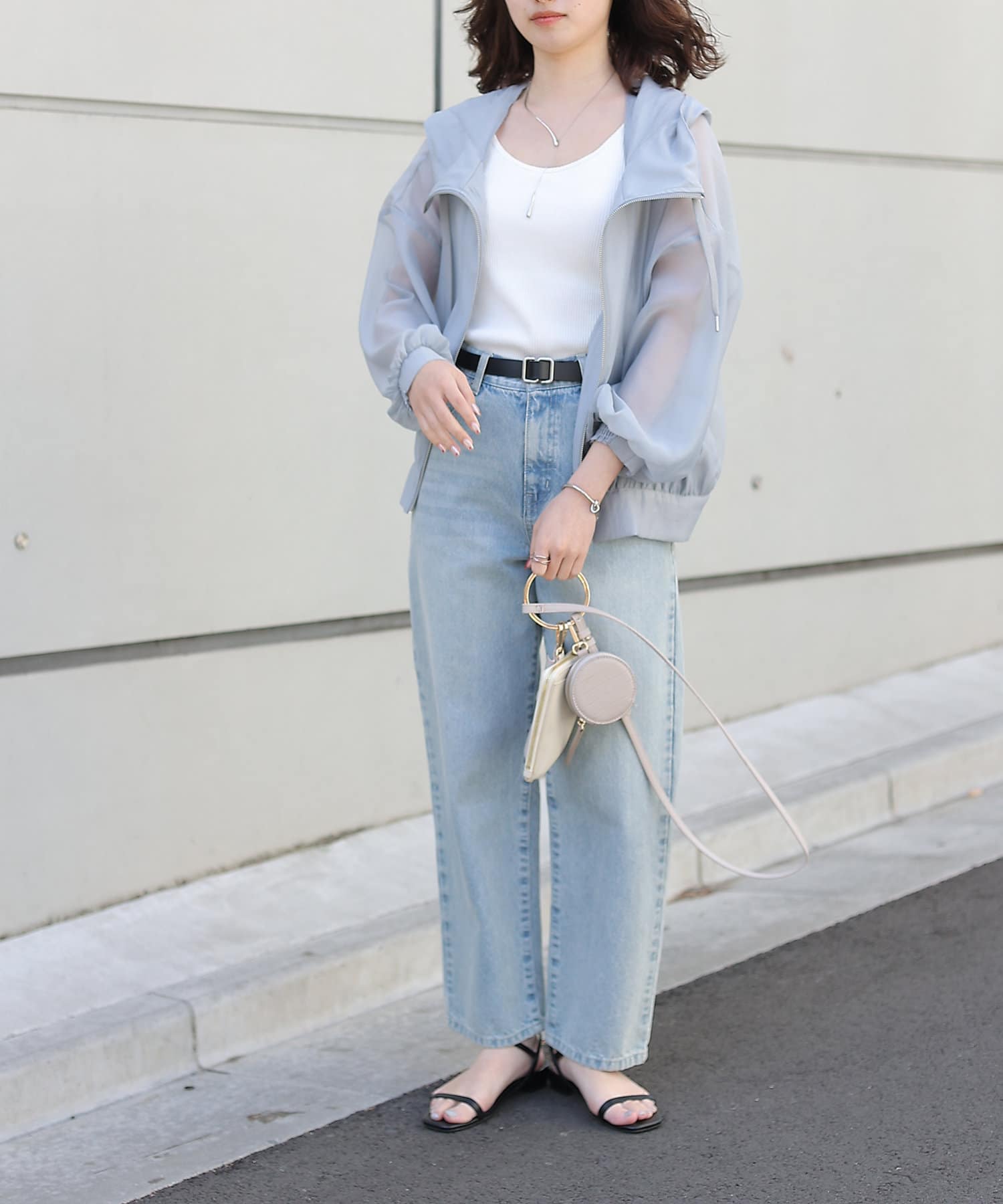 さらっと薄手に軽やかに羽織れるシアー素材のアウターです。