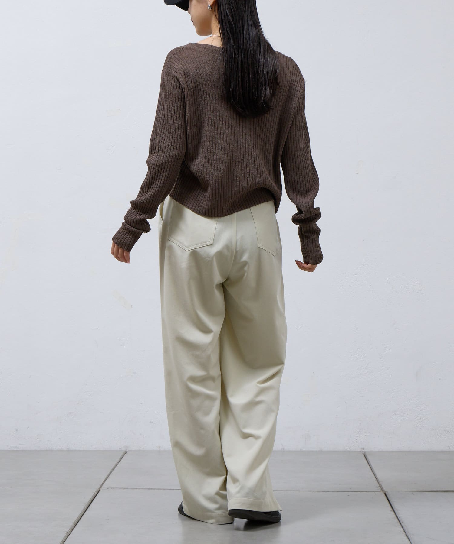 ・細めのリブ仕様ですっきりスタイルアップにも
