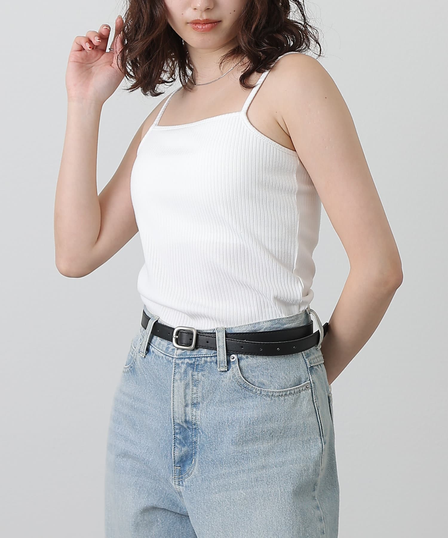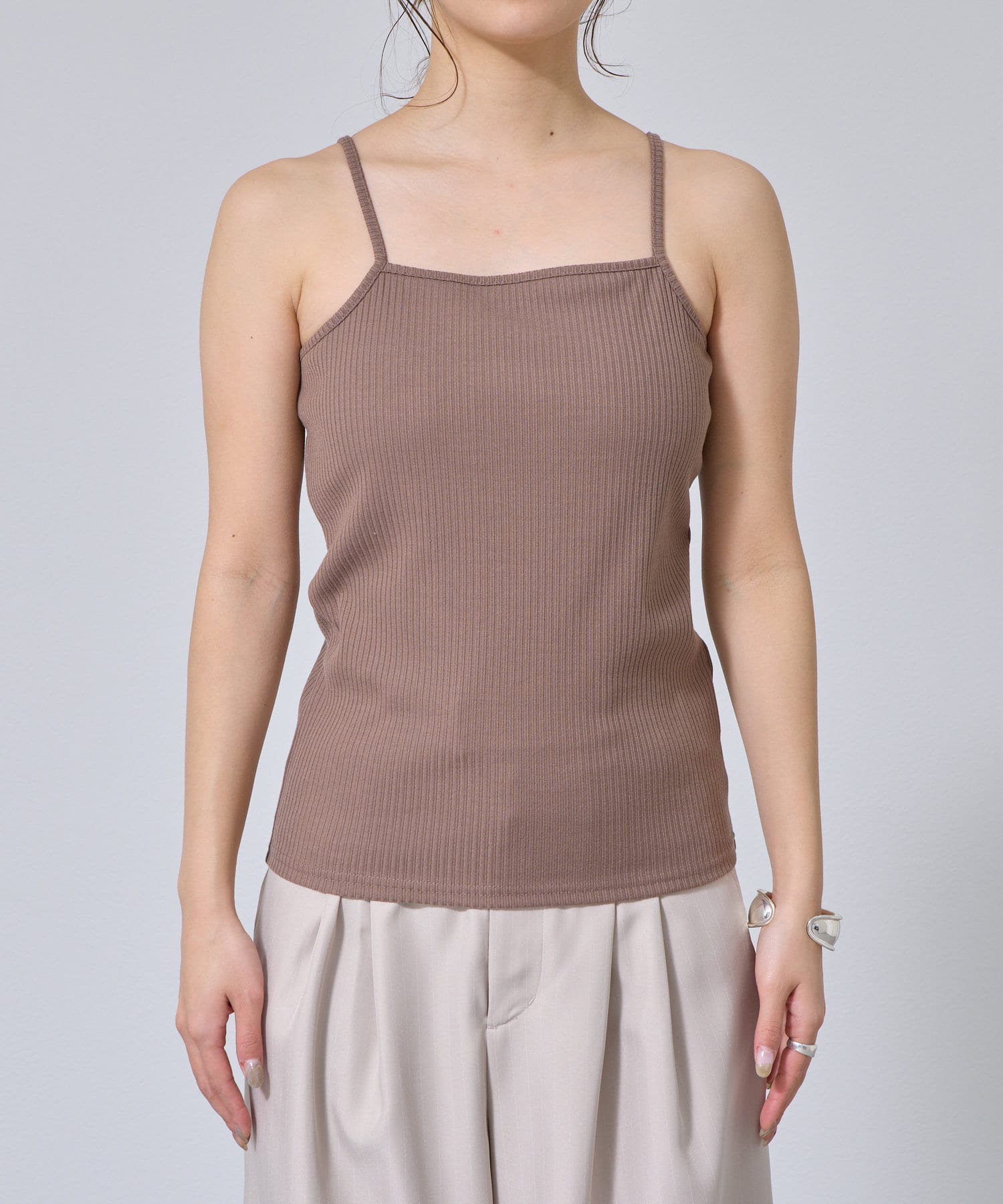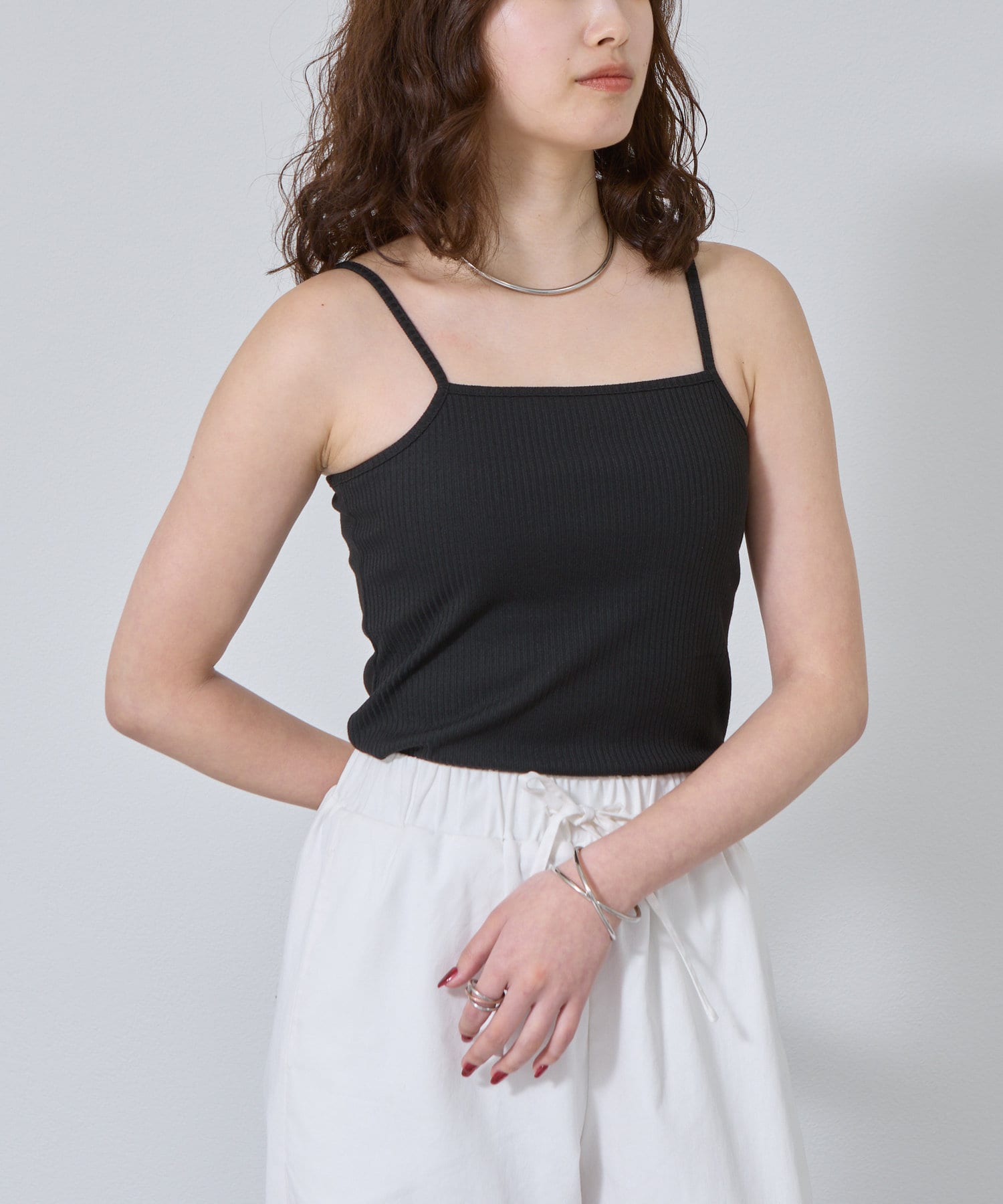【リバイバル】カップ付テレコリブスクエアキャミソール