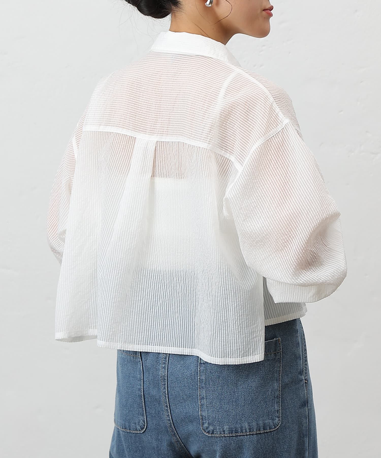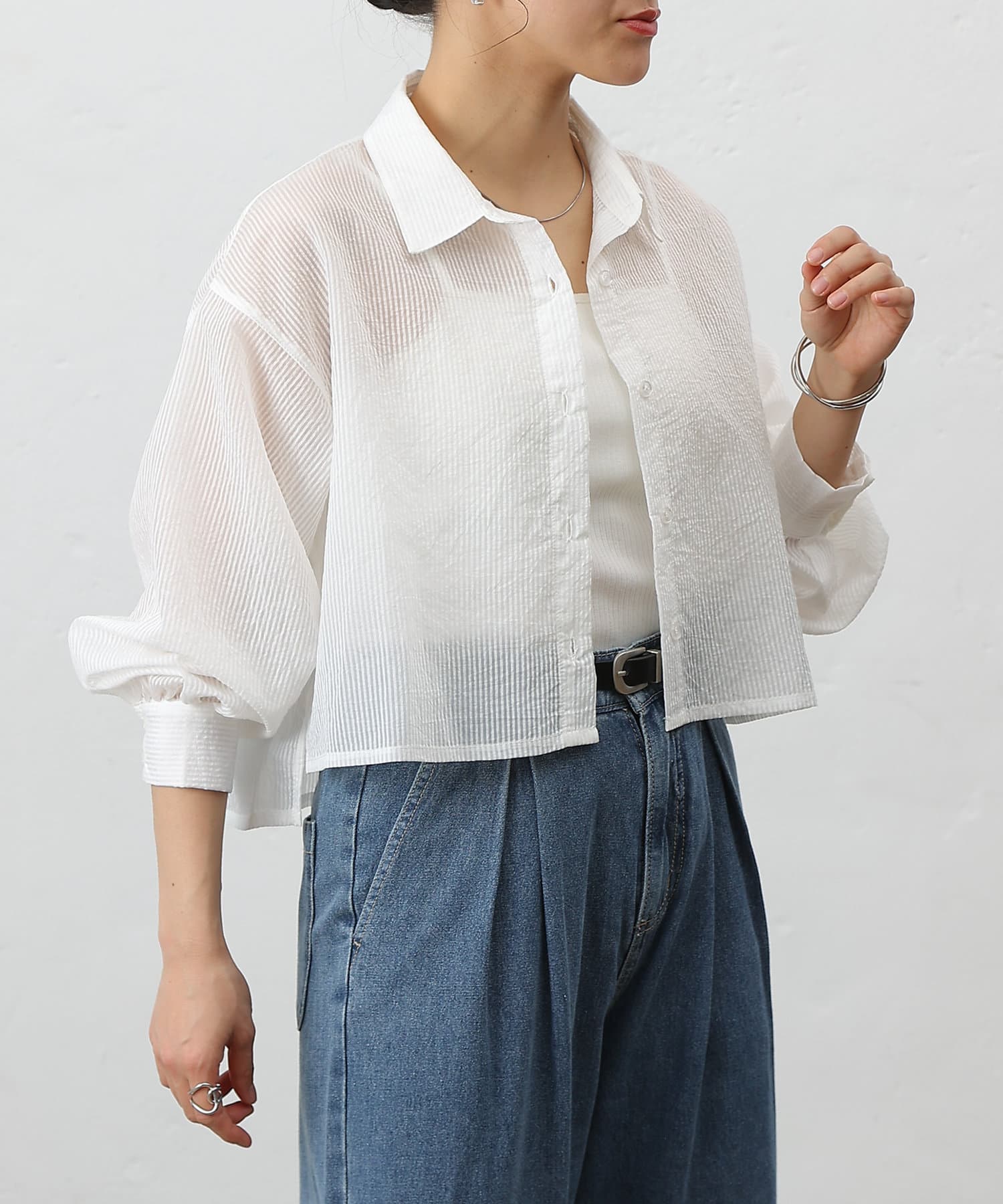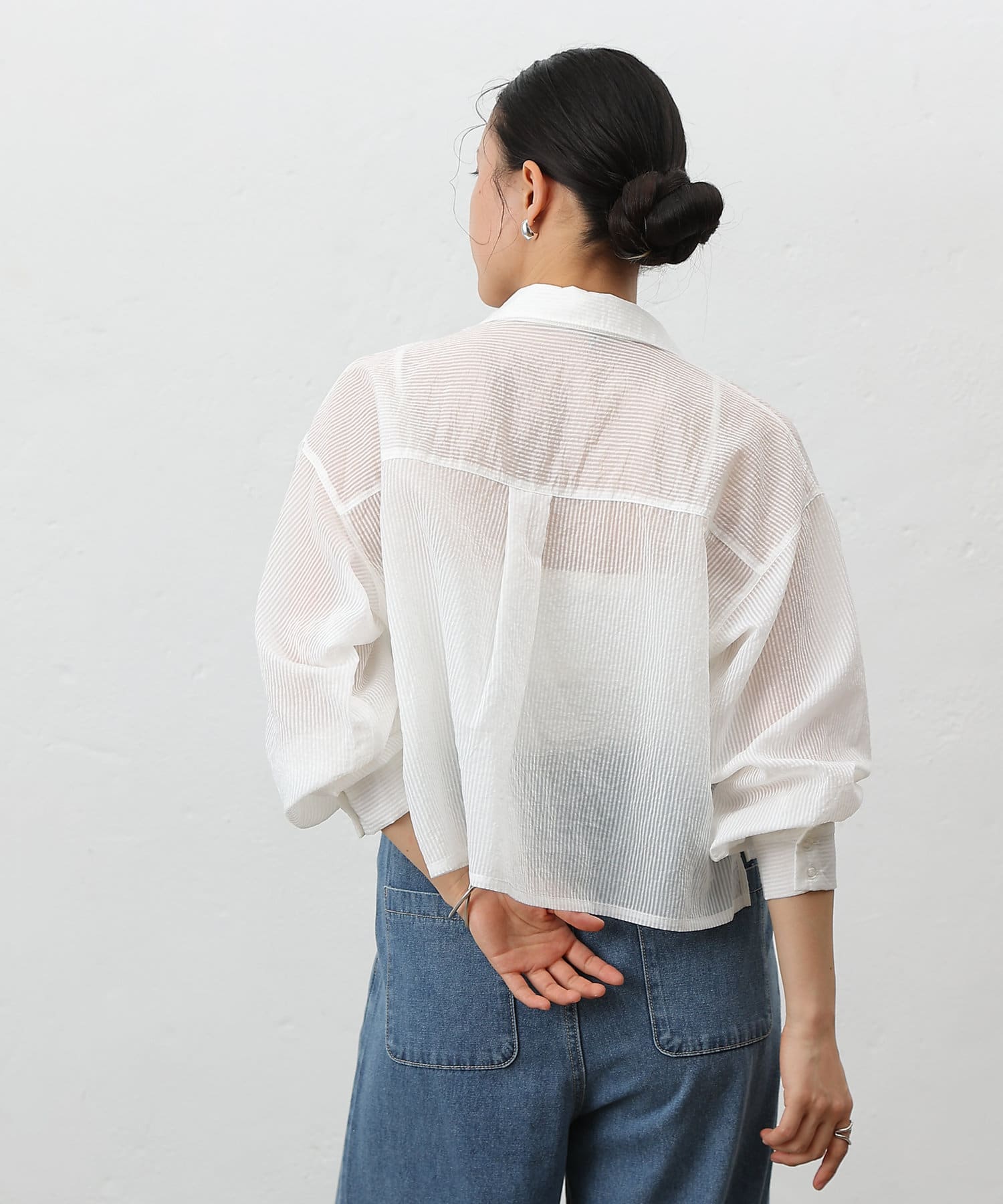 【こなれ感のあるシアーストライプ短丈シャツ】