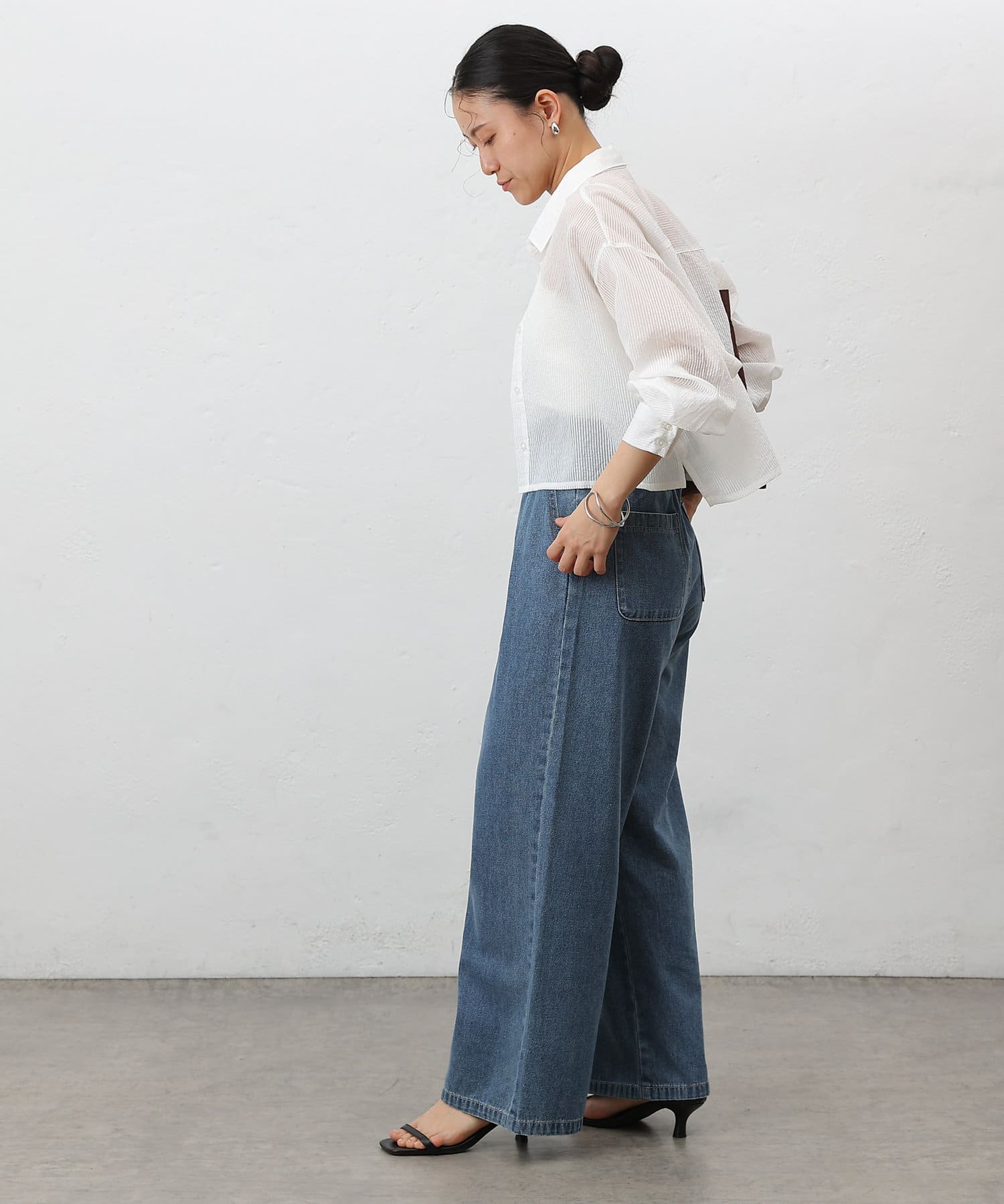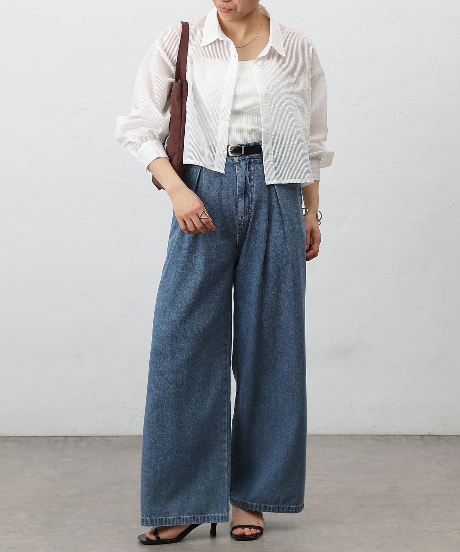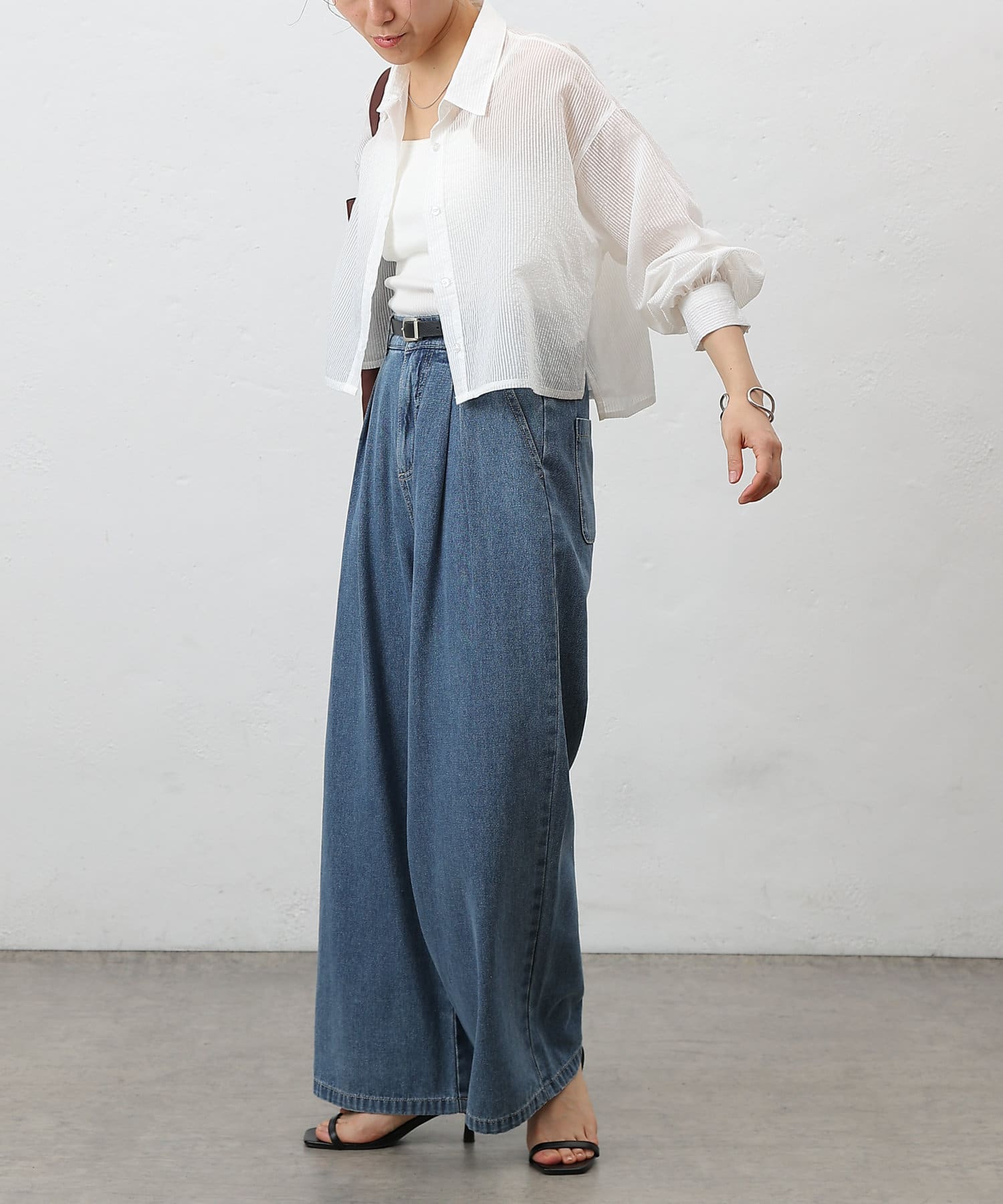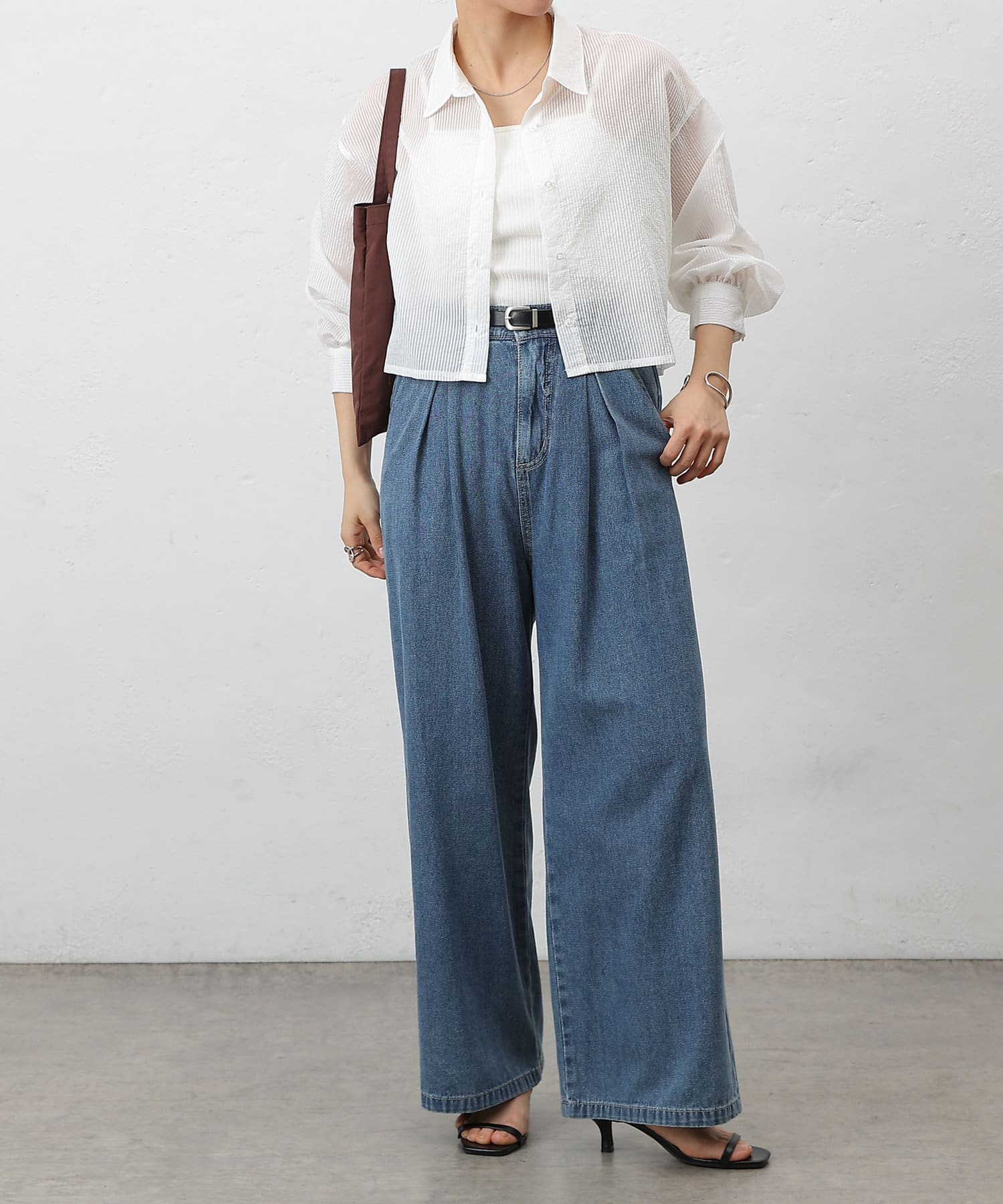 【こなれ感のあるシアーストライプ短丈シャツ】
