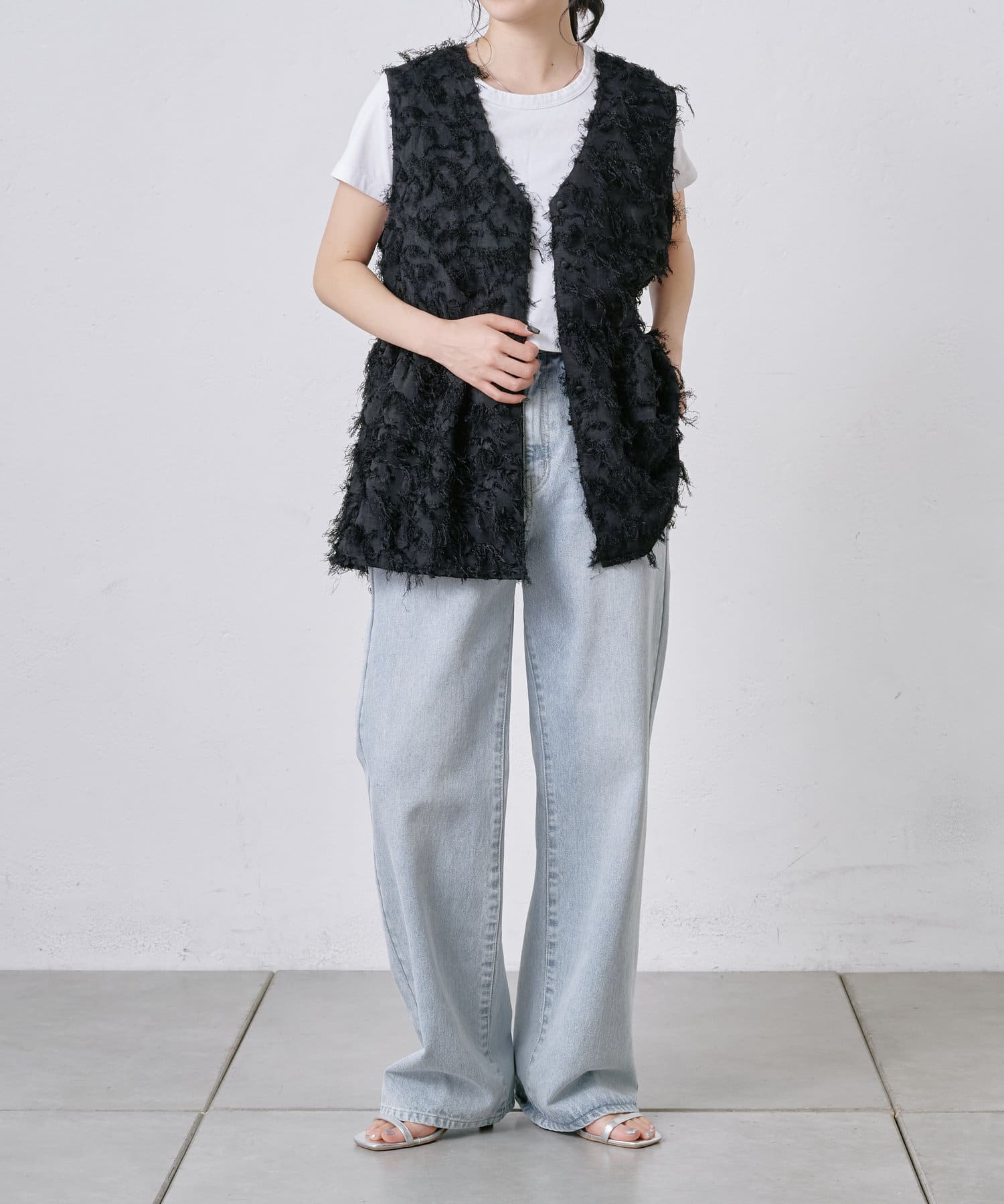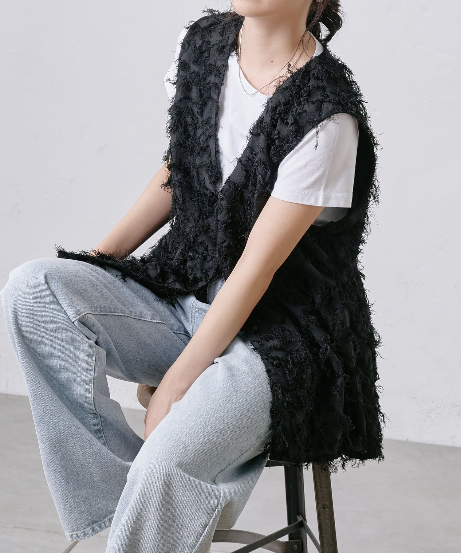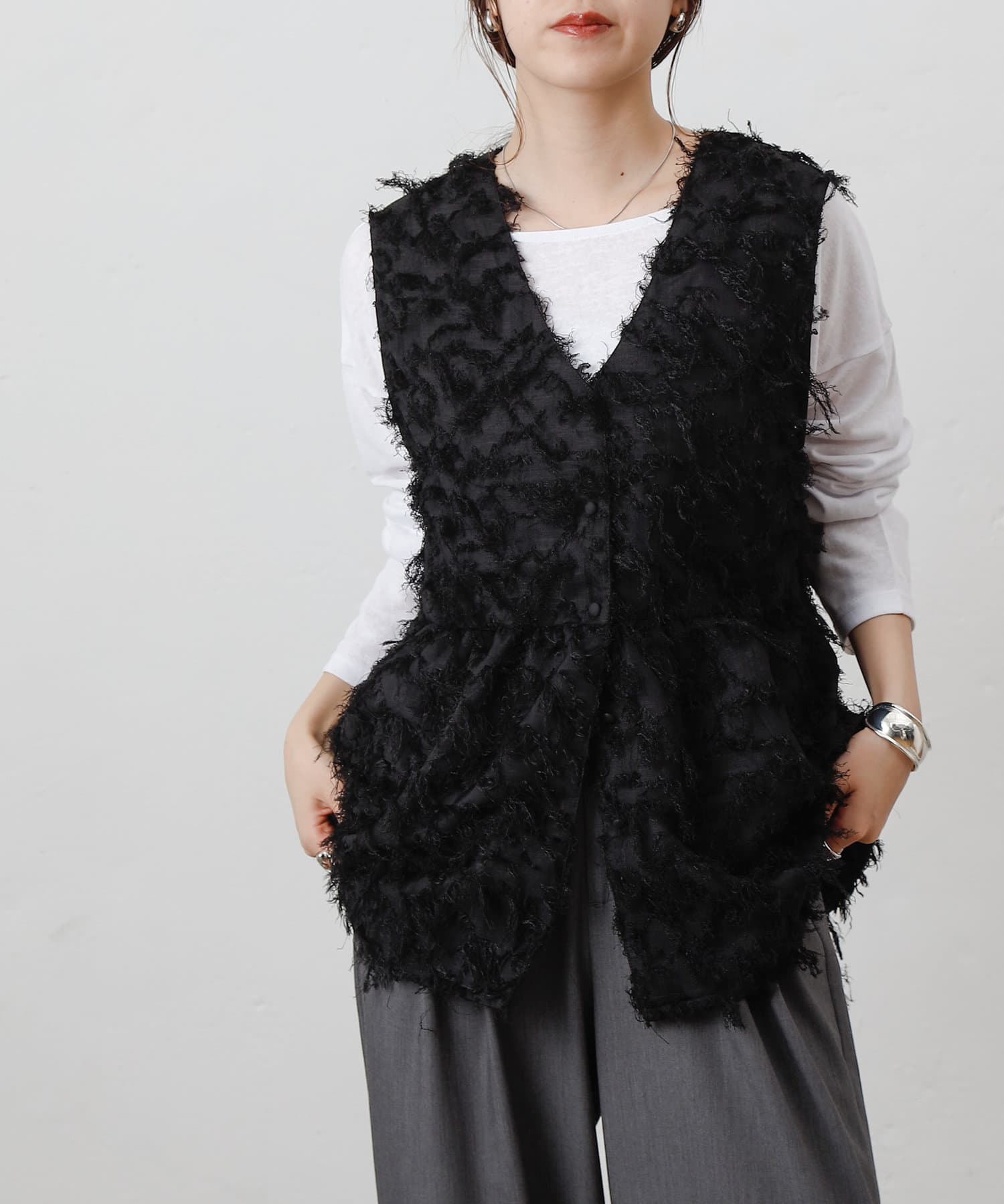 ・CWA1051304A0009 フリンジジャガードオフショルトップス