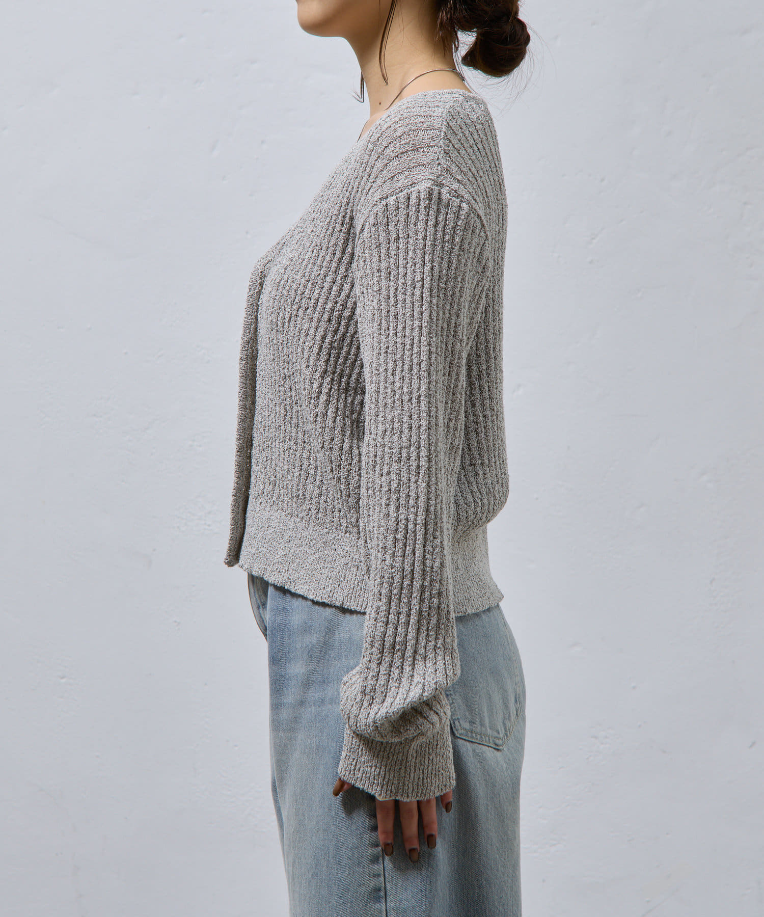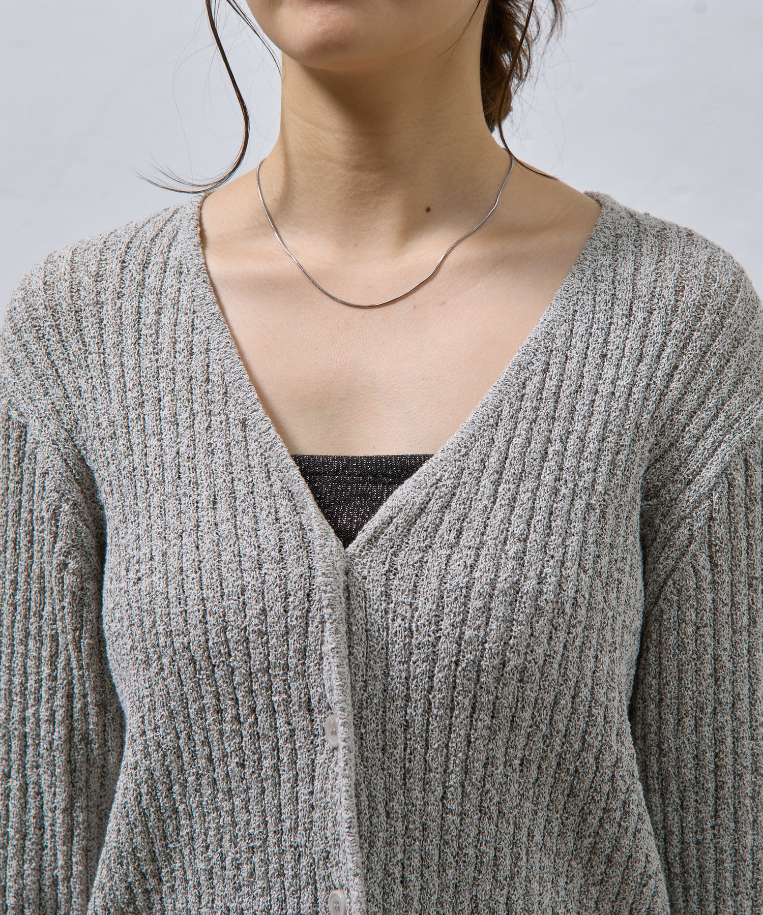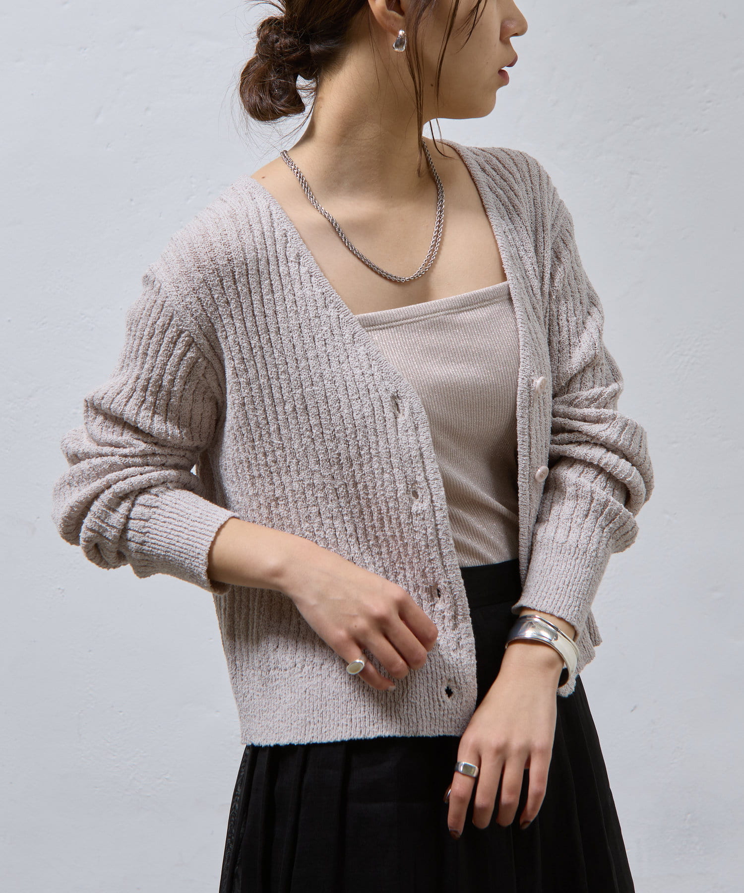 程よいゆとりがあり、きれいに見えるサイズ感のリブニットカーディガン。