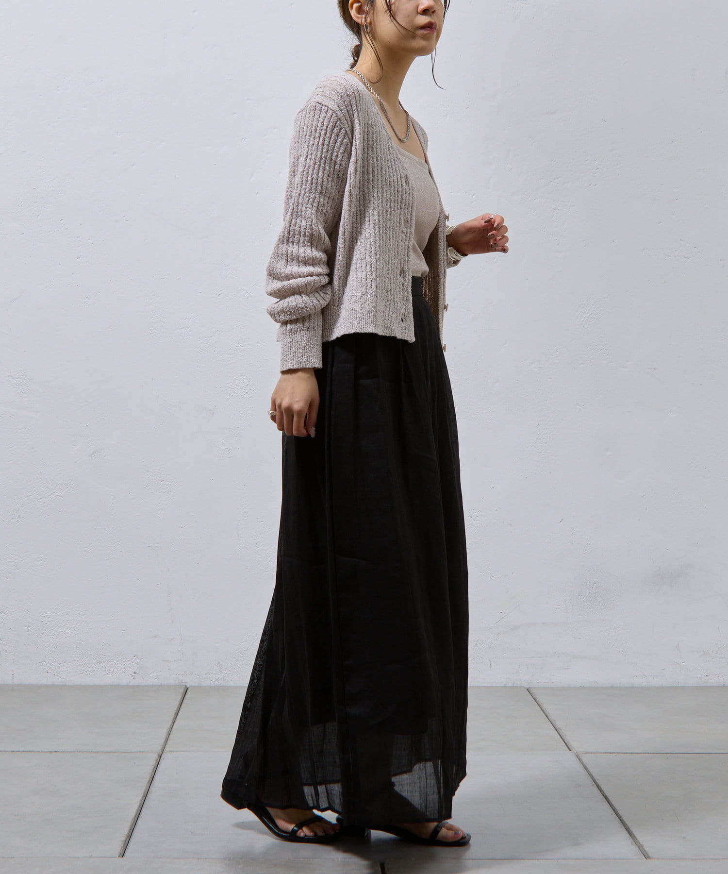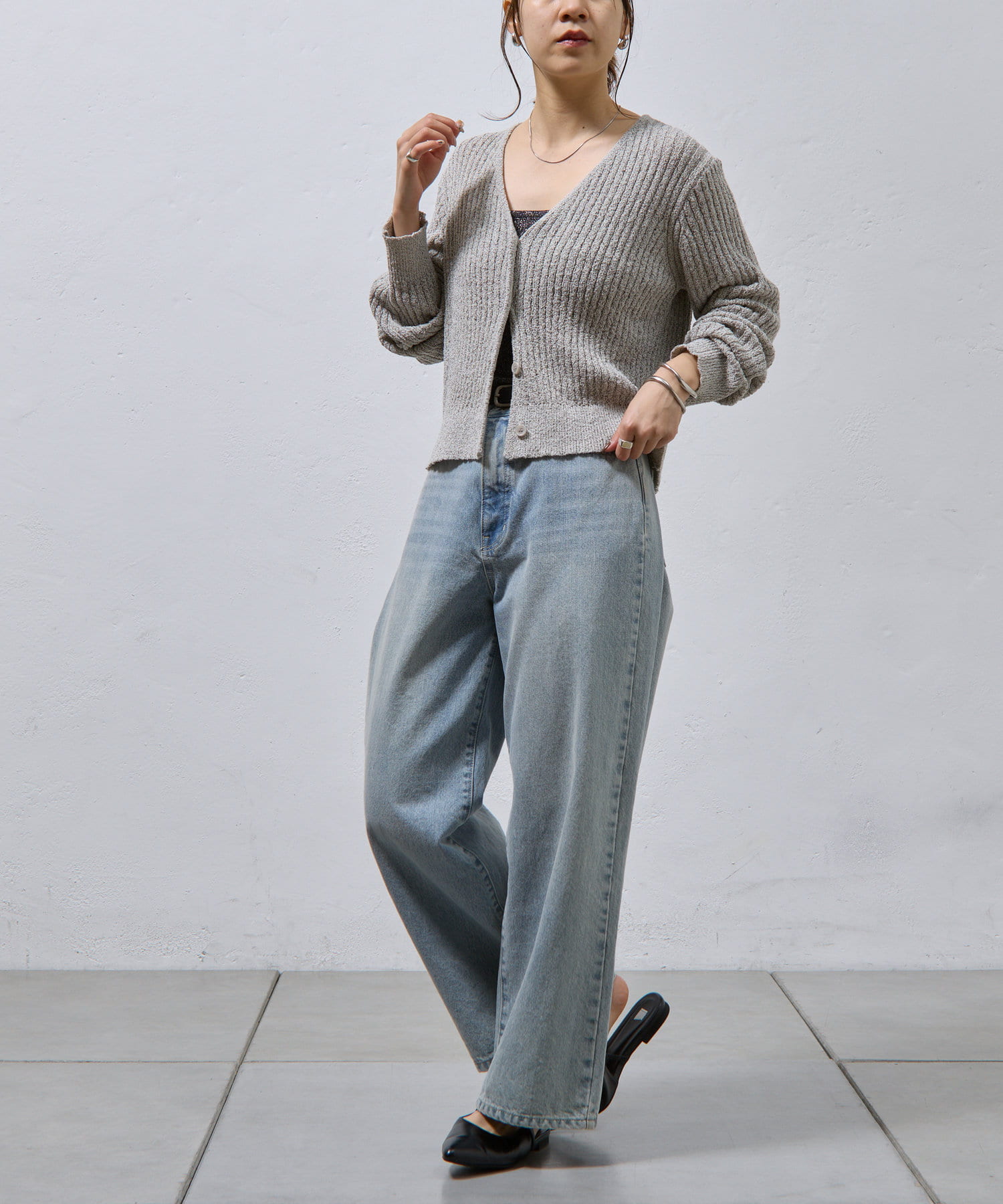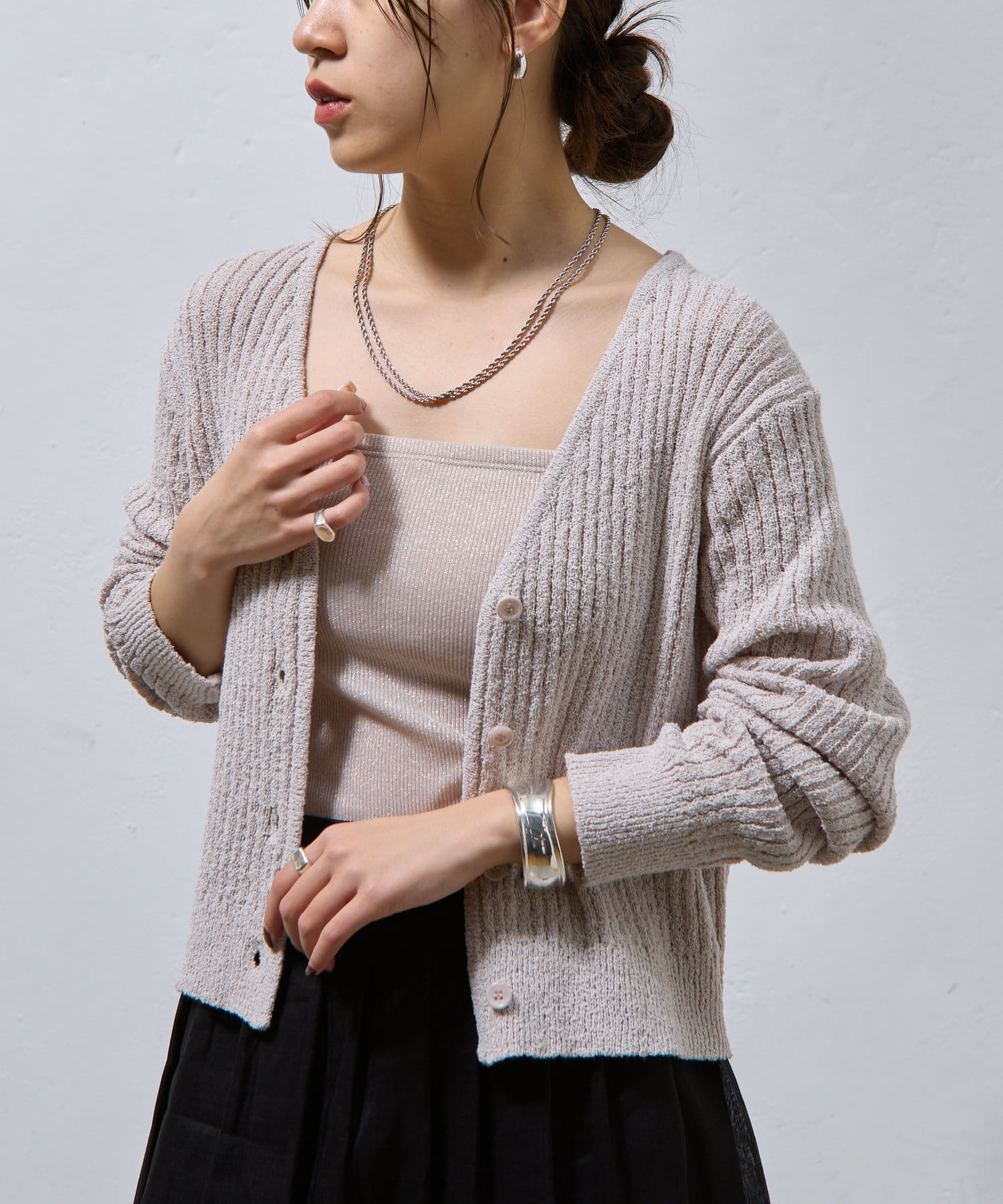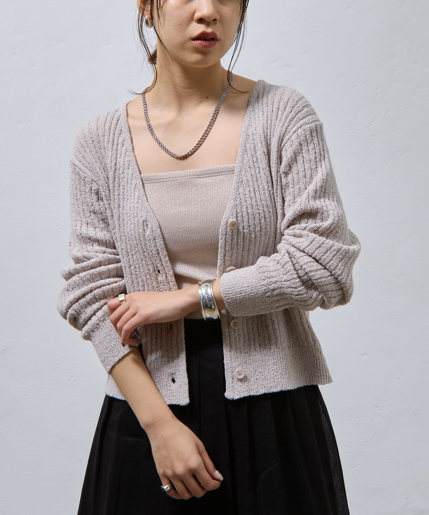 程よいゆとりがあり、きれいに見えるサイズ感のリブニットカーディガン。