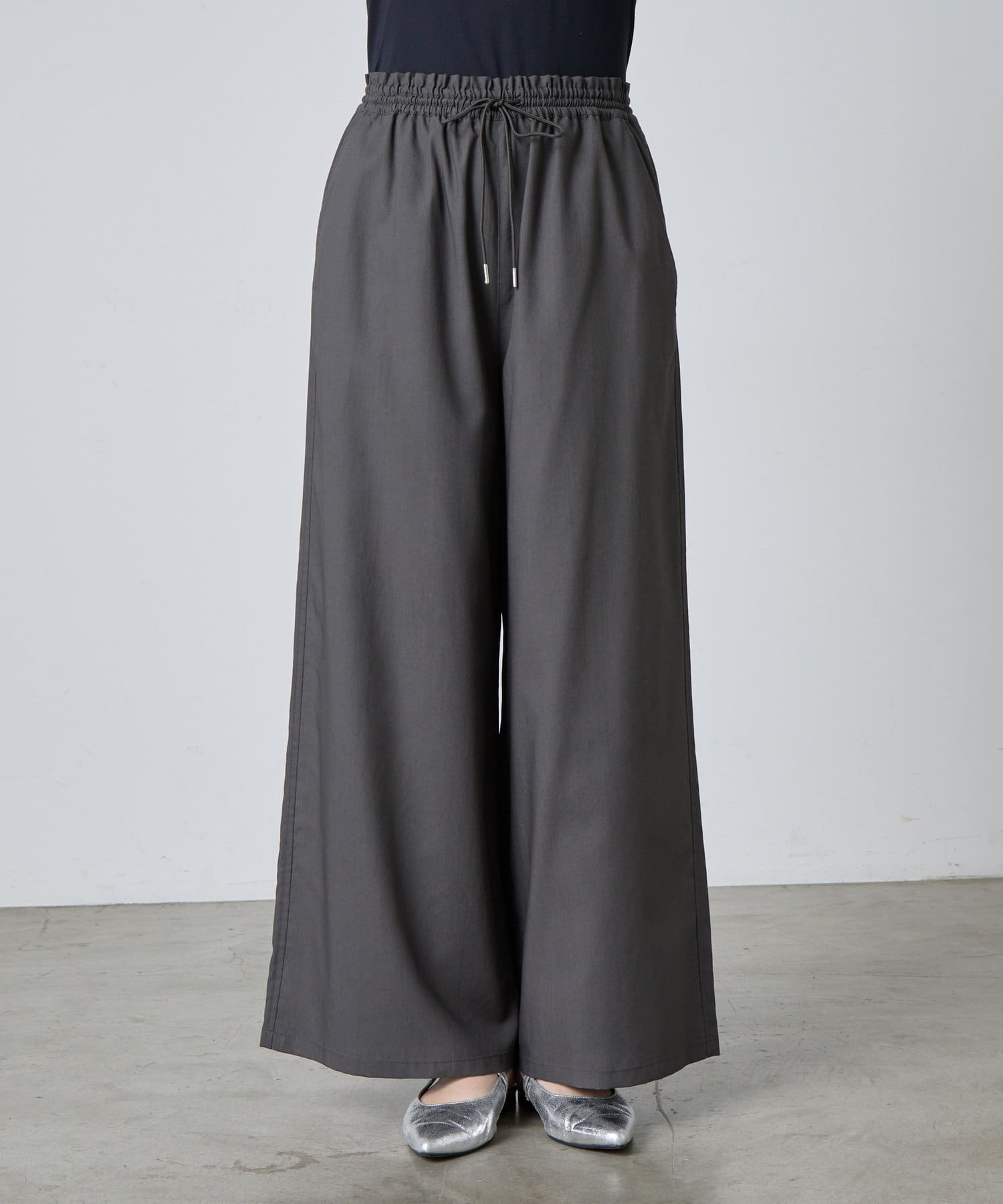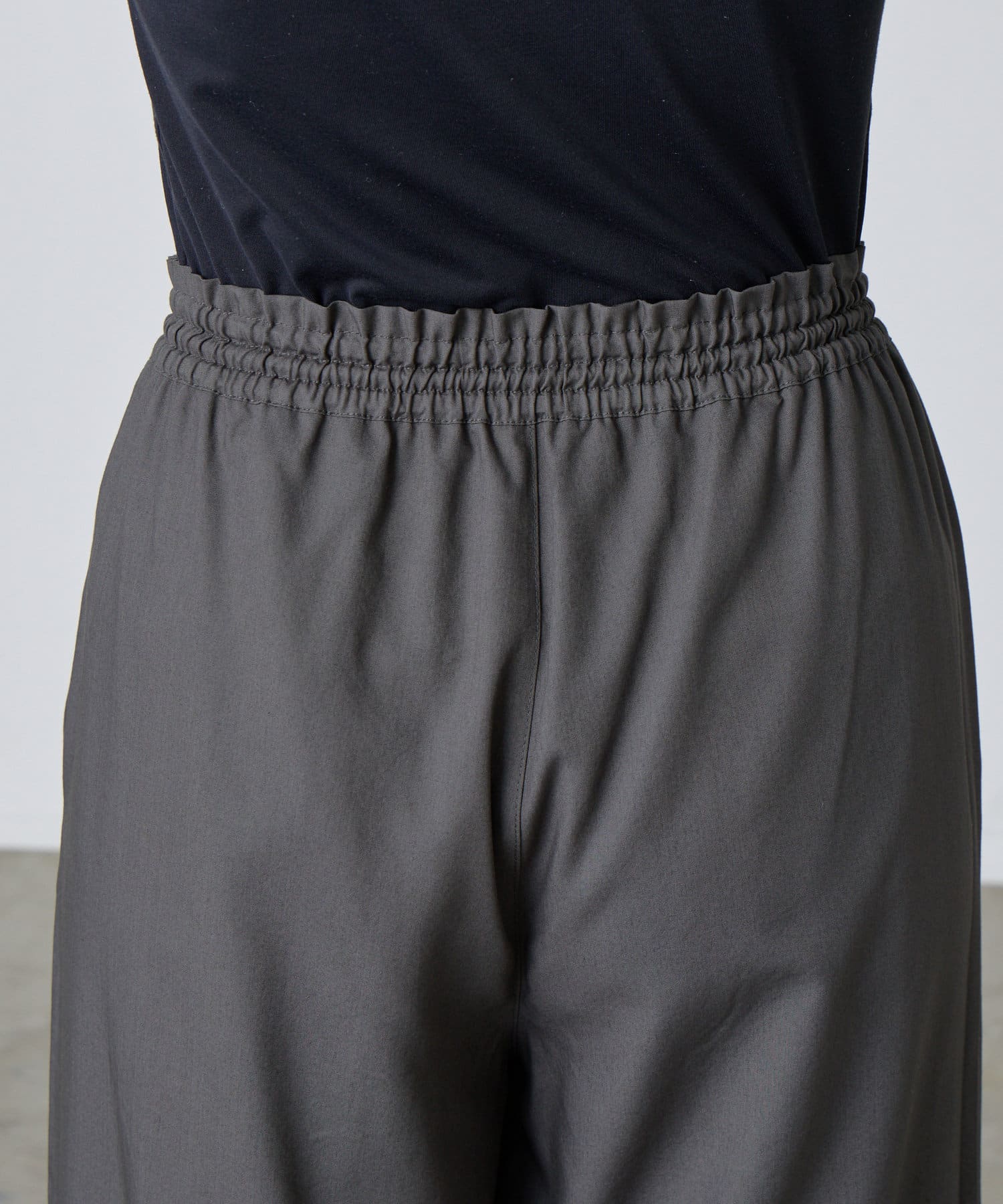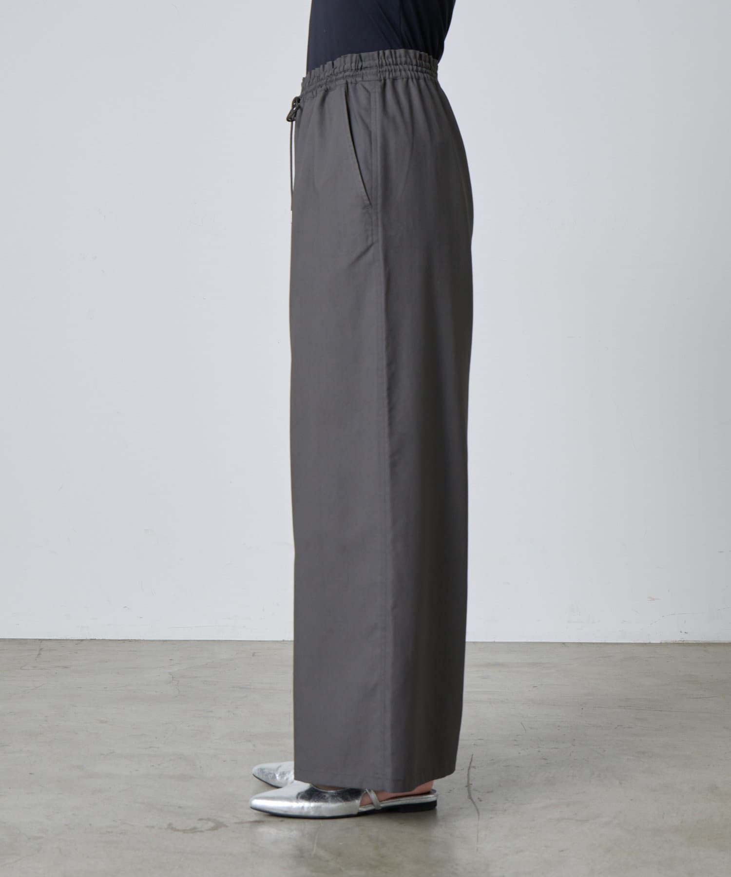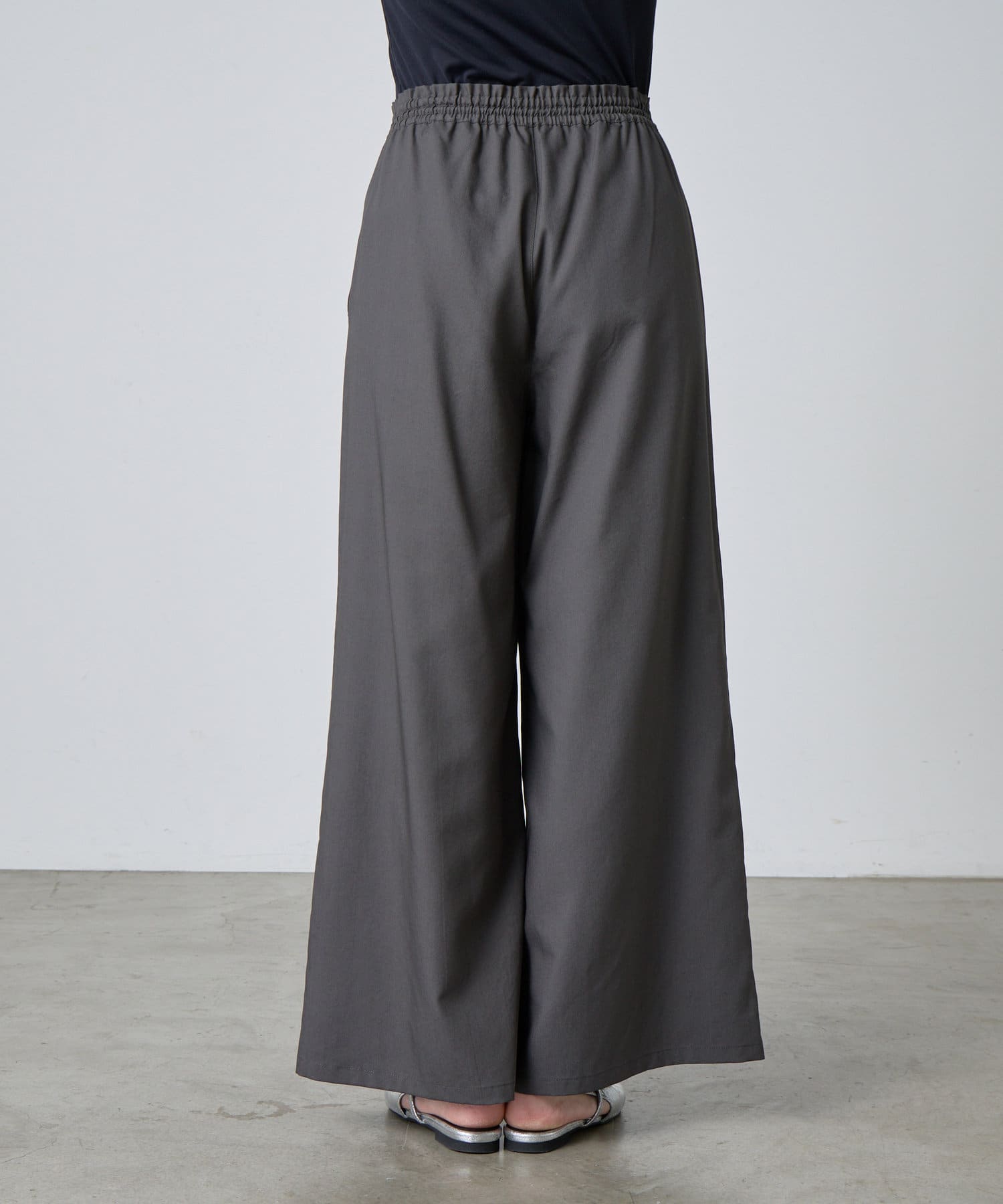 ゆったり&総ゴム仕様で楽ちんな着心地ながらも、キレイ見えするデザイン。