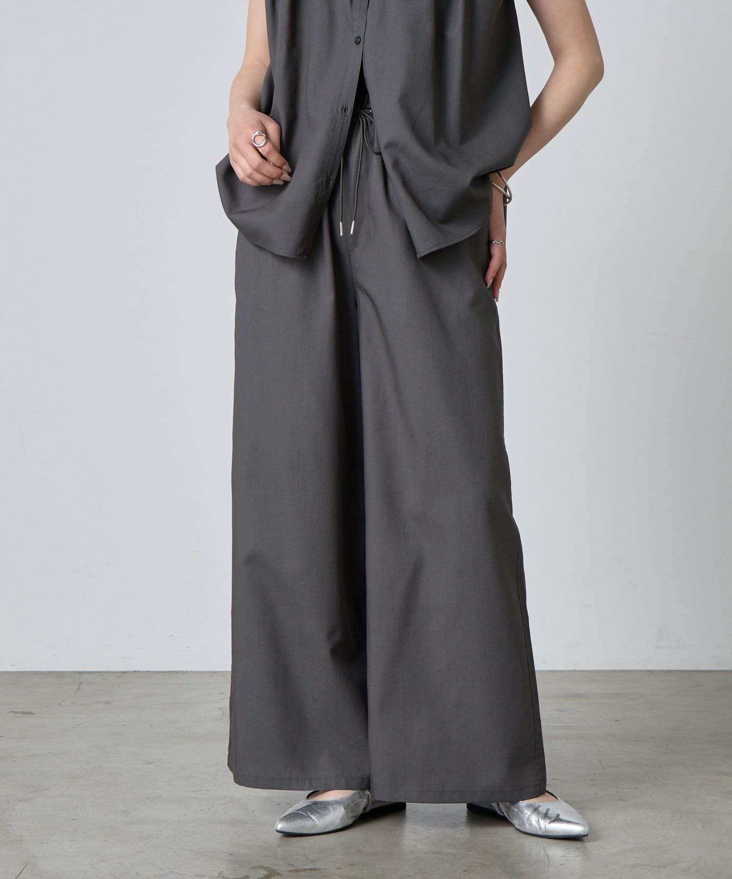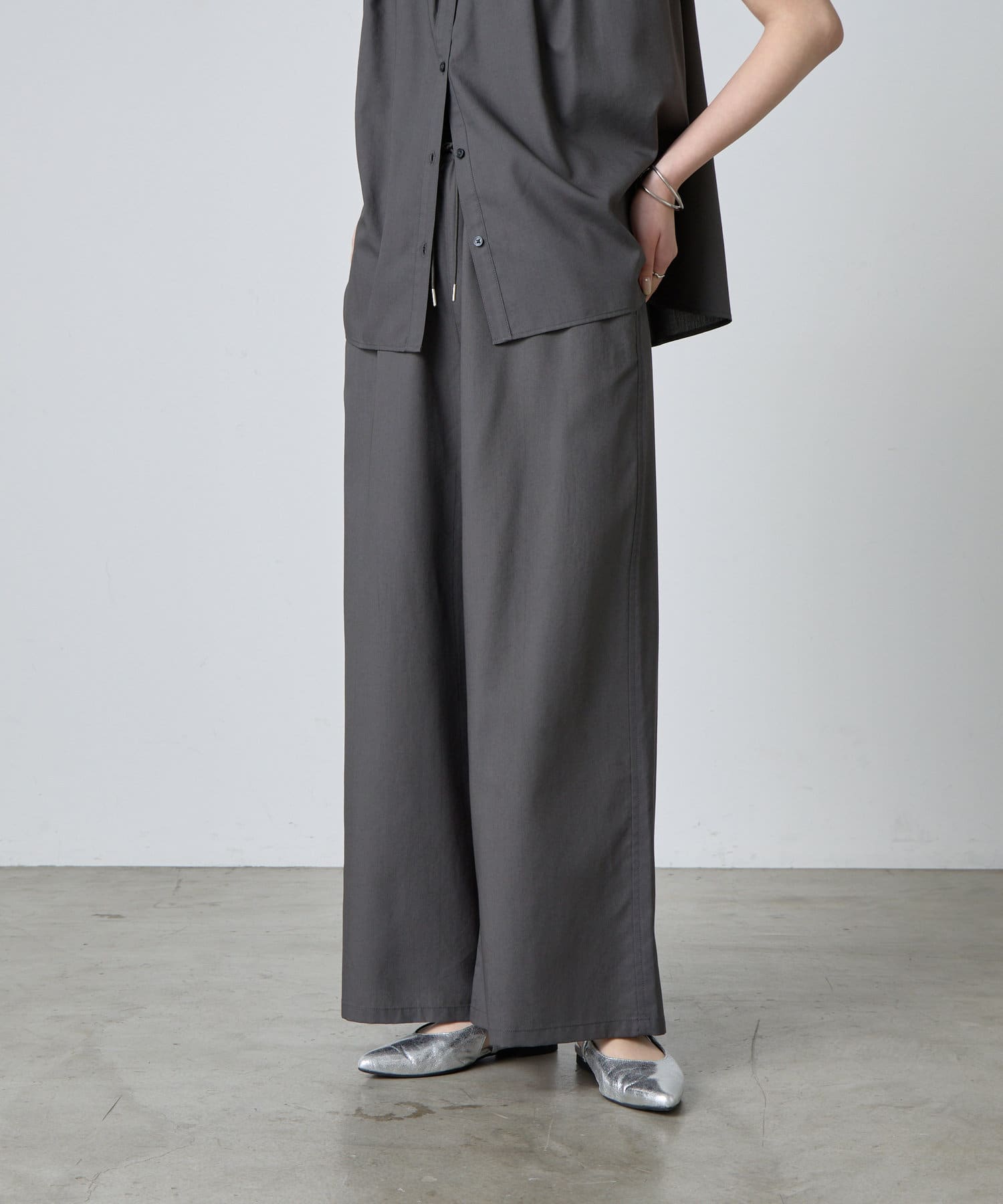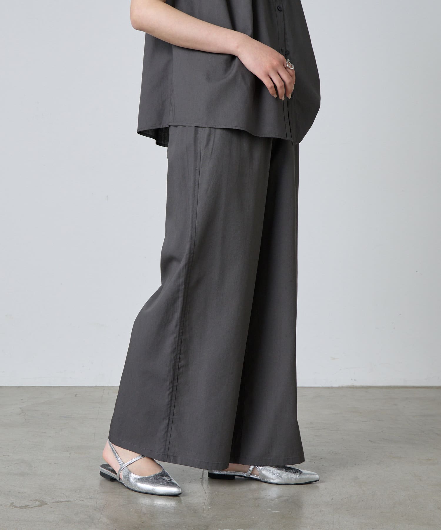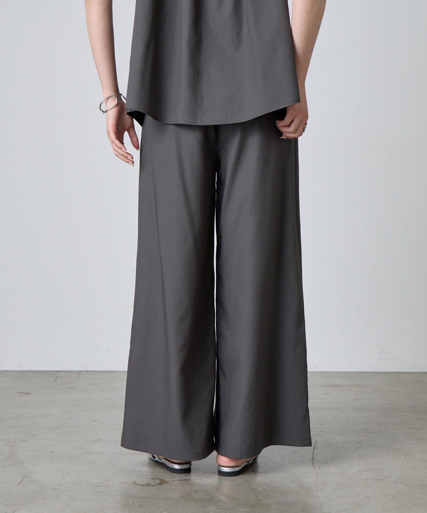 ゆったり&総ゴム仕様で楽ちんな着心地ながらも、キレイ見えするデザイン。