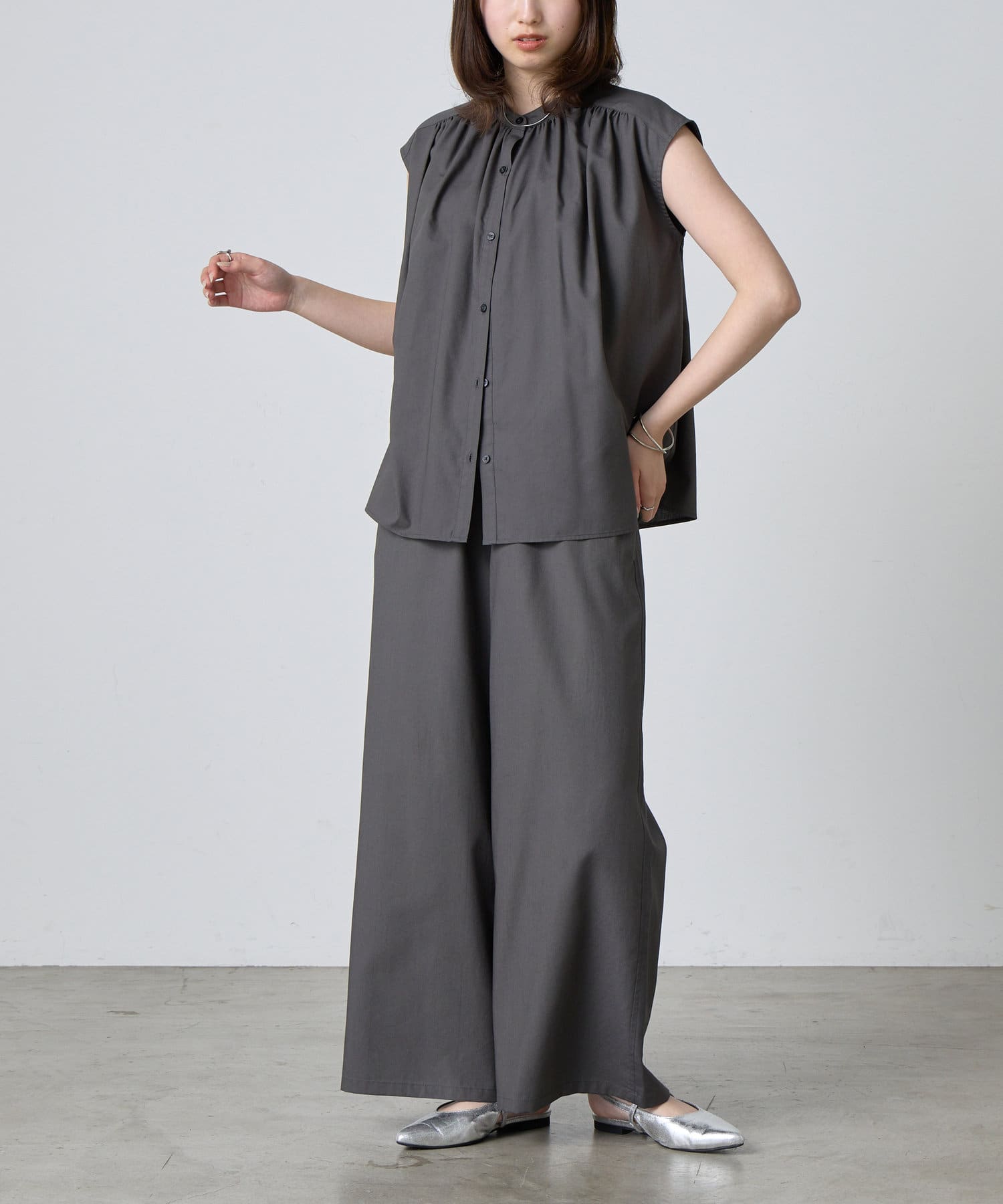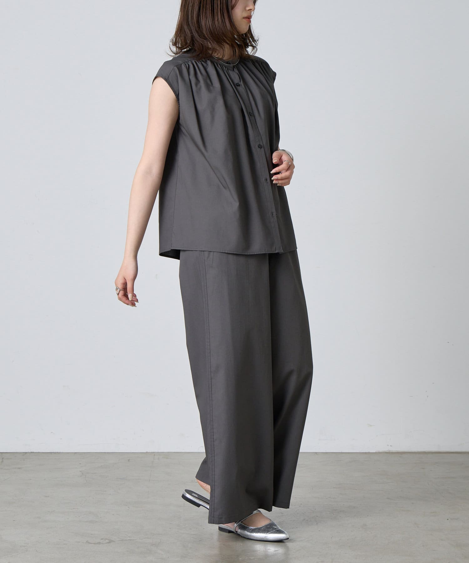 ・CWA1051404A0003 ナイロンカバーリングギャザーブラウス