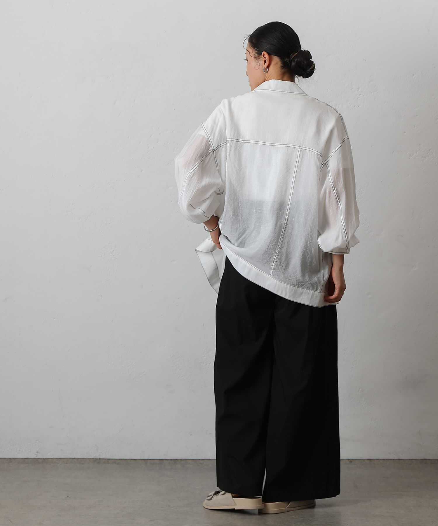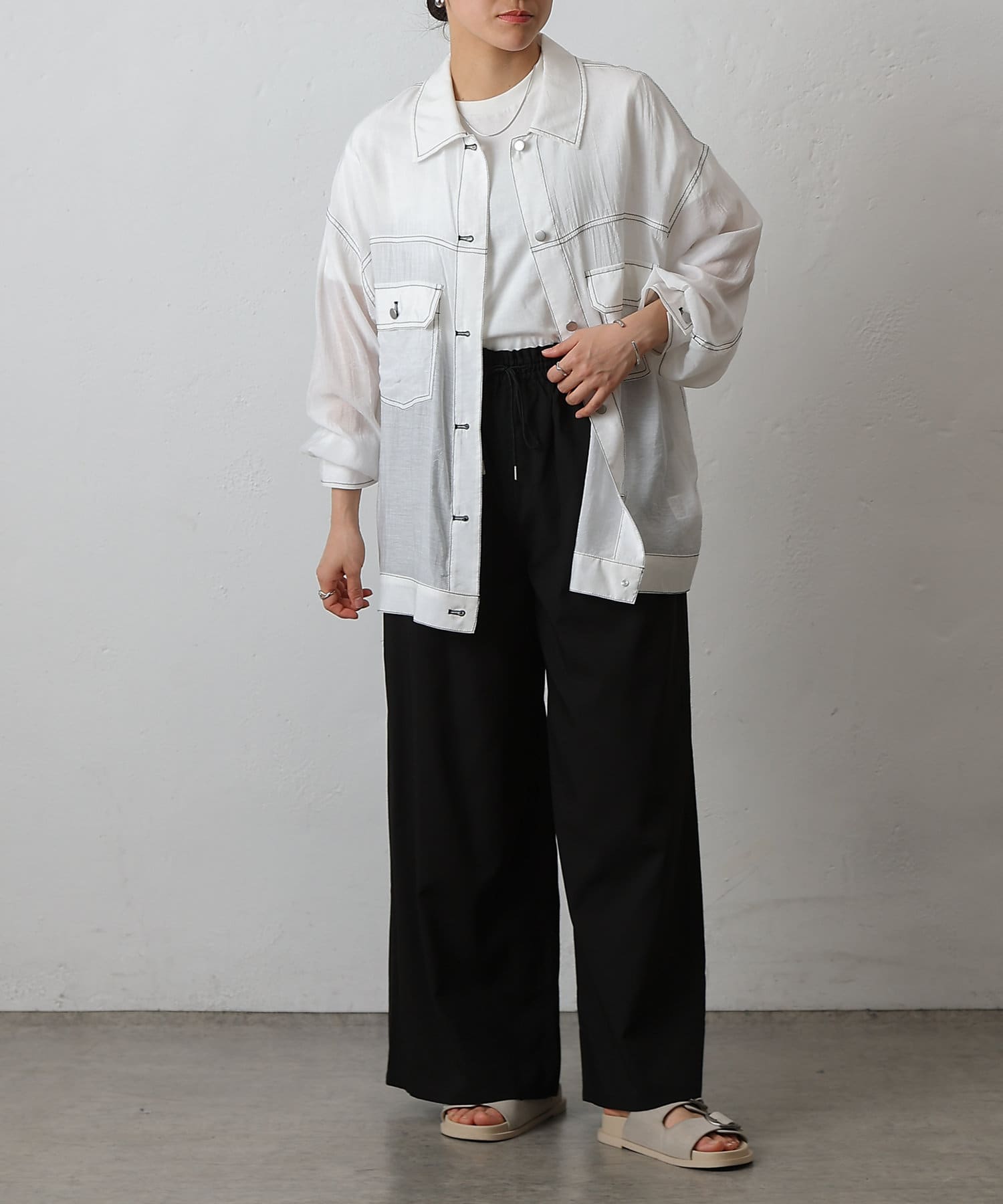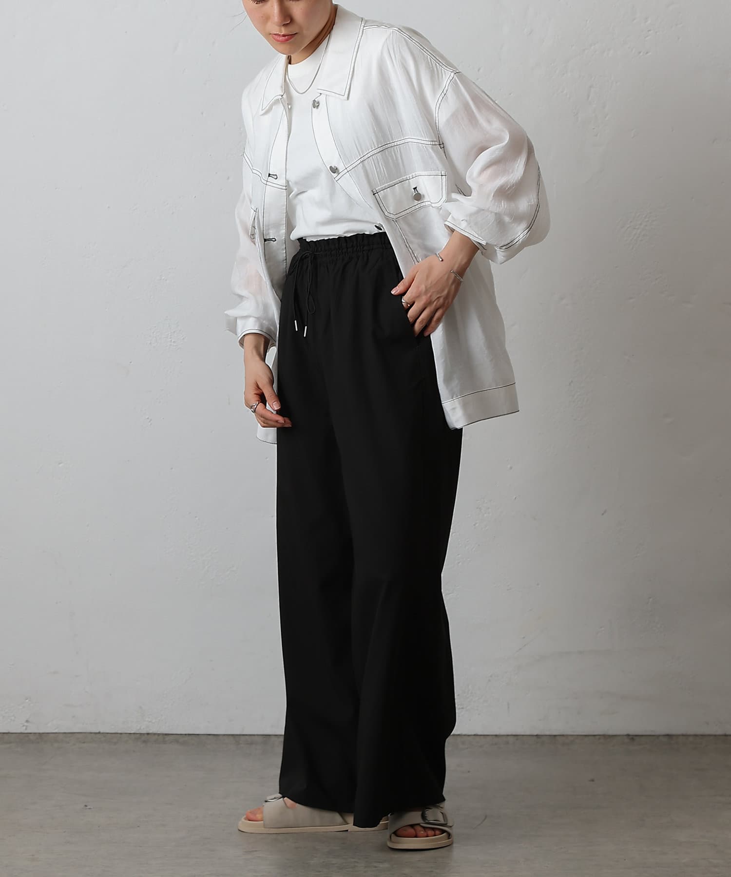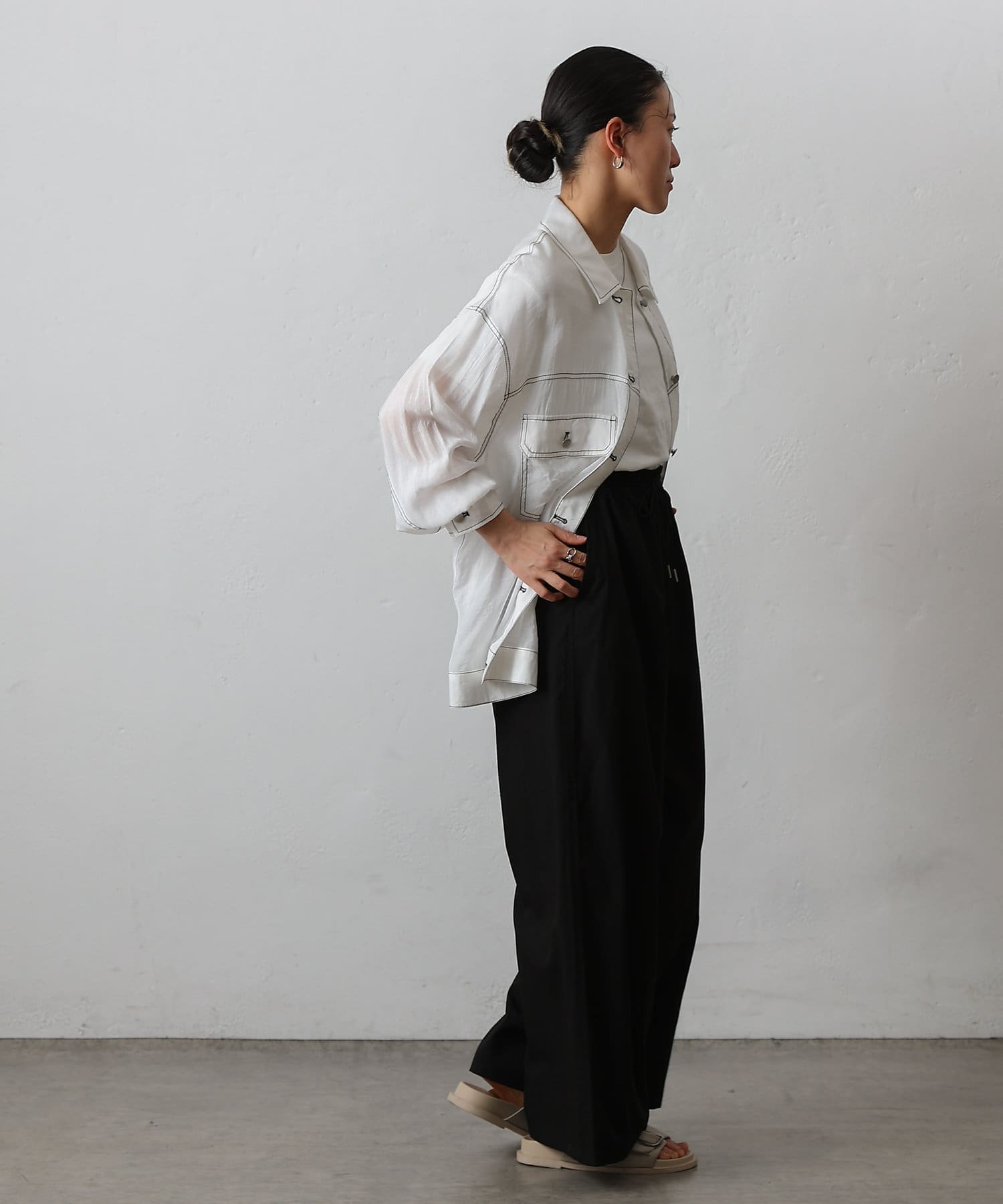 ・CWA1051404A0004 ナイロンカバーリングスキッパーブラウス