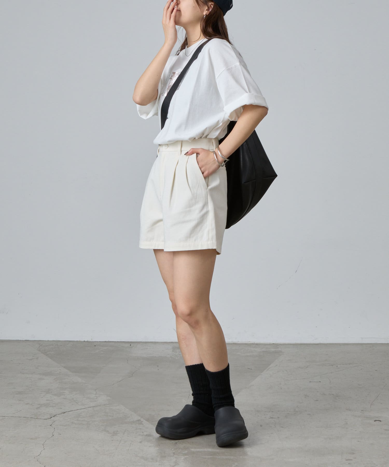 ウエストの2タックデザインがポイントのハイウエストショーツ。