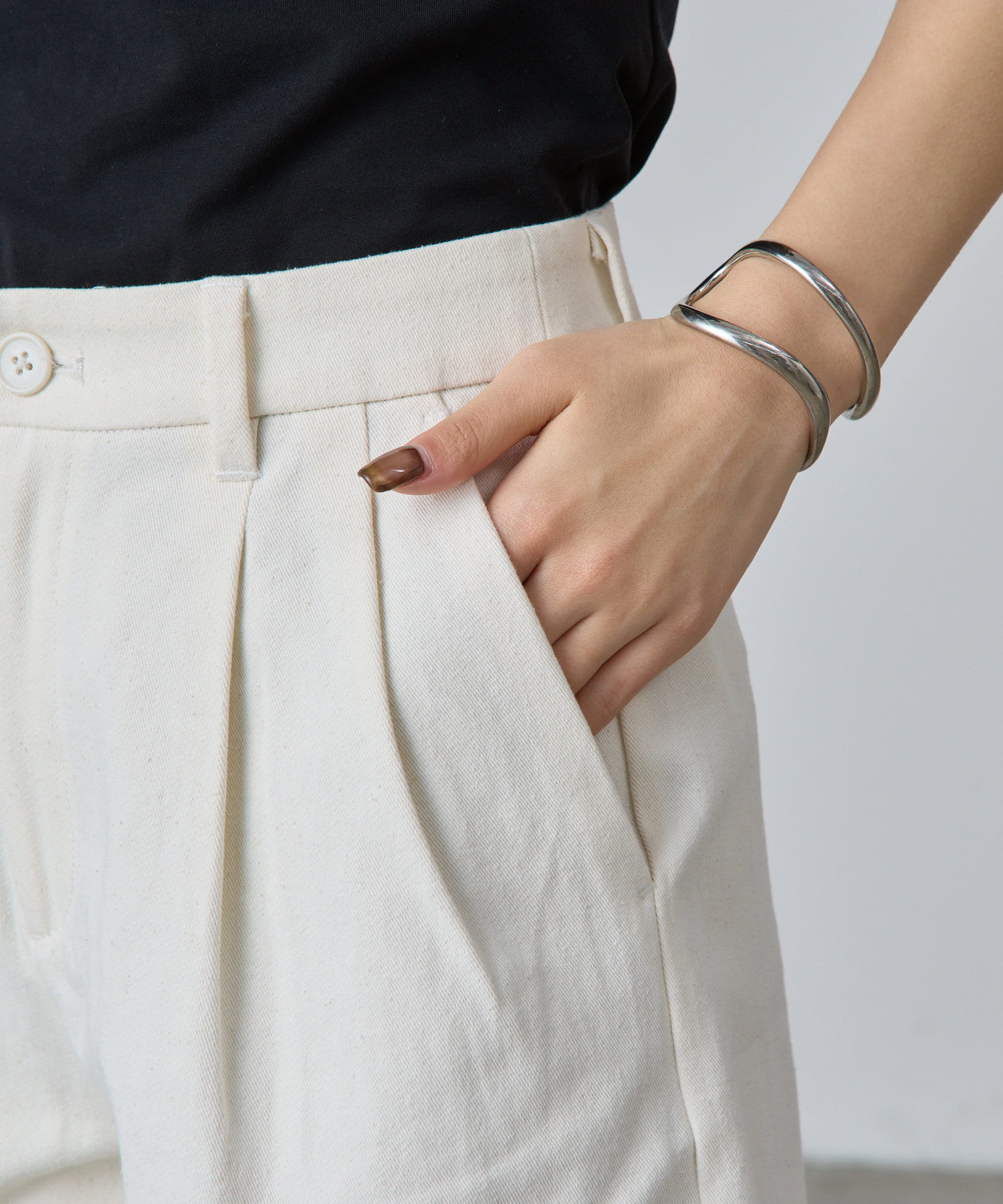 タック入り×ハイウエストで脚長効果をもたらし、スタイルアップなシルエットに◎