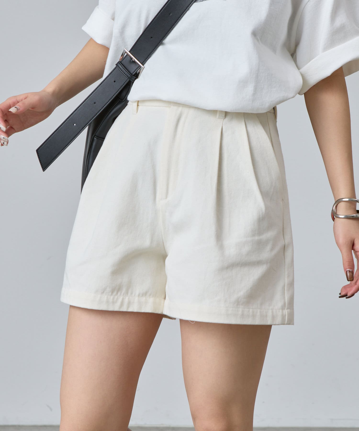 ウエストの2タックデザインがポイントのハイウエストショーツ。