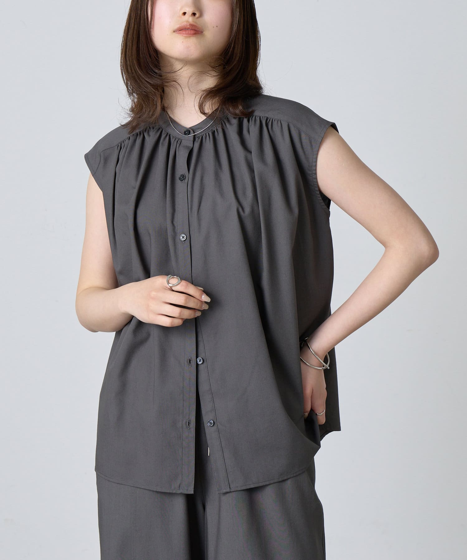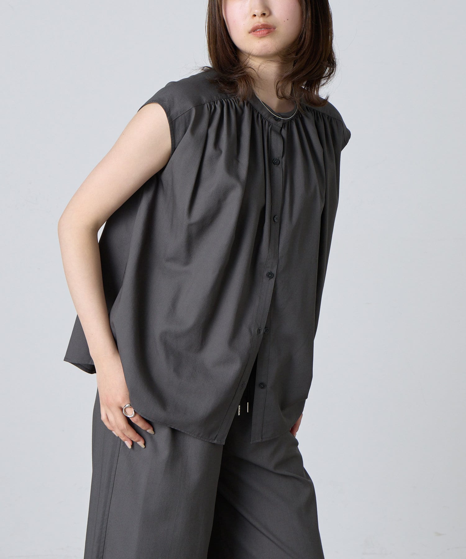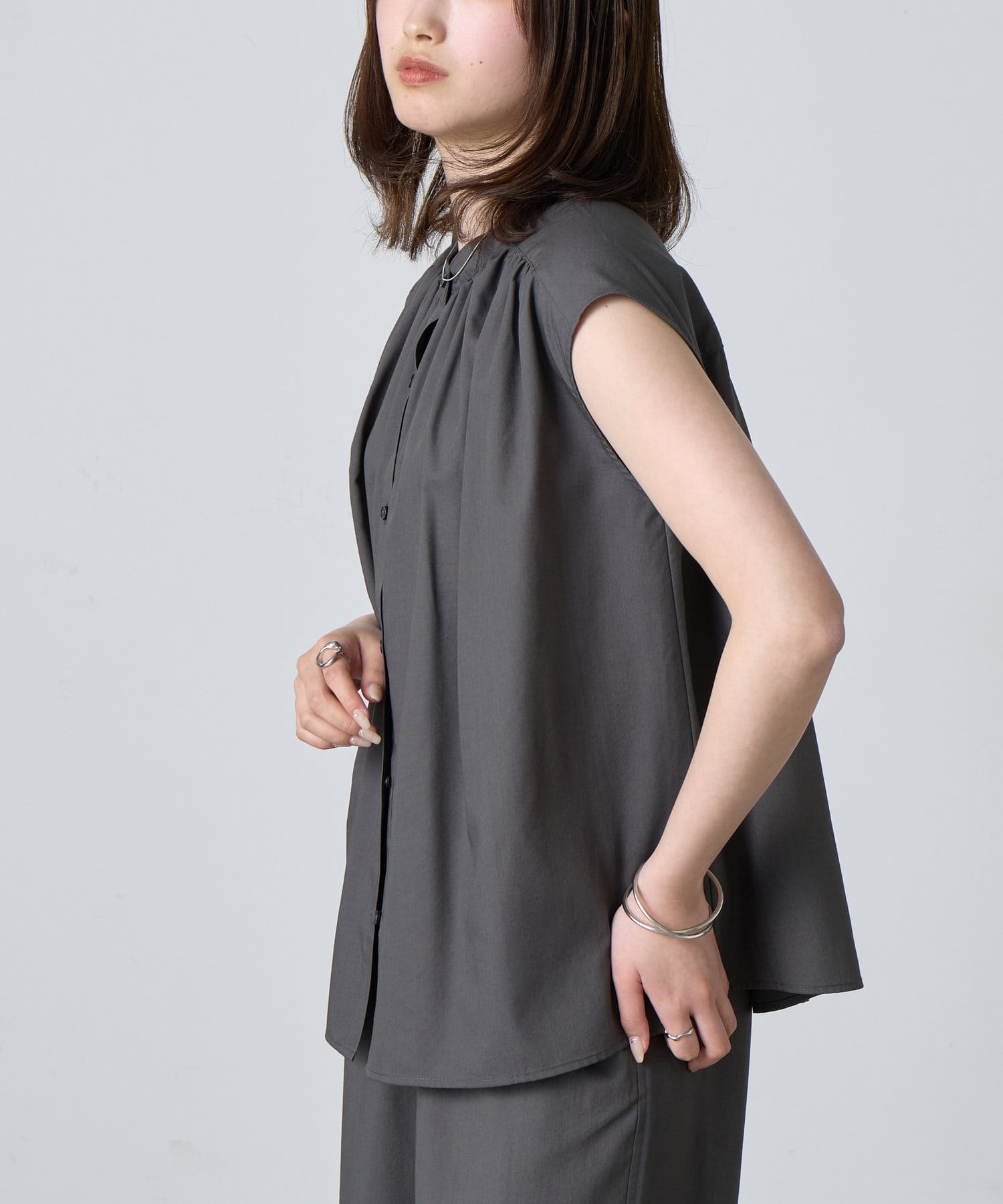 【セットアップ対応】ナイロンカバーリングギャザーブラウス