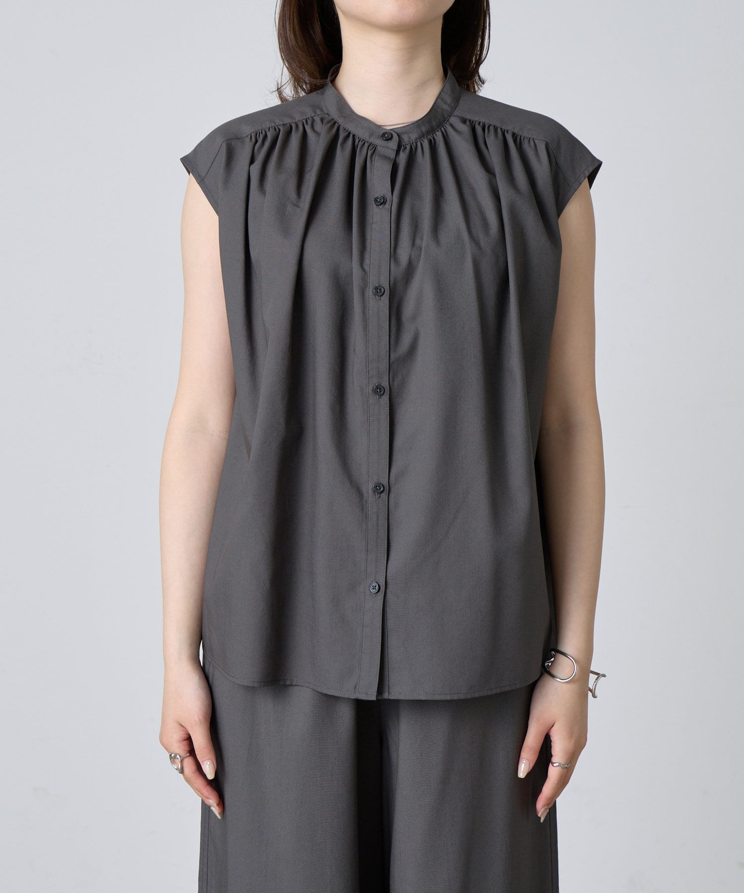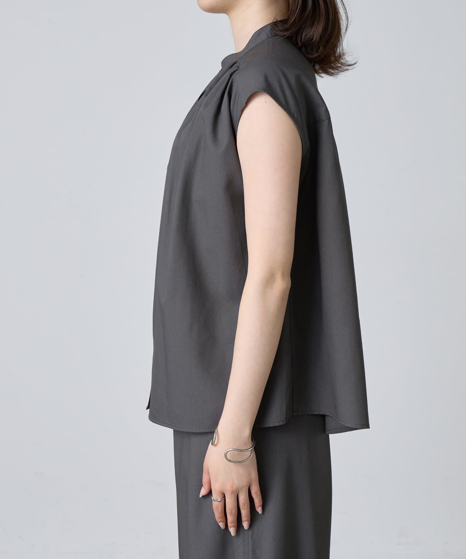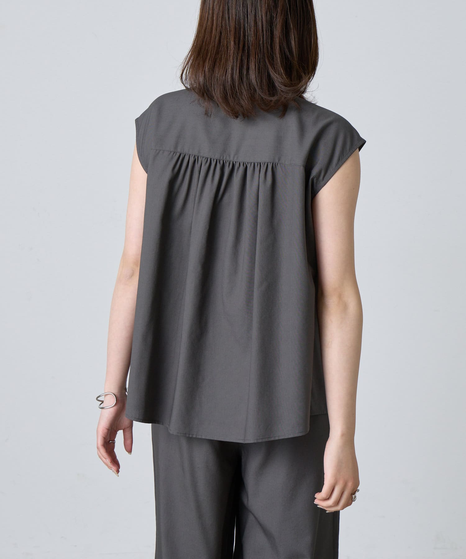 【セットアップ対応】ナイロンカバーリングギャザーブラウス