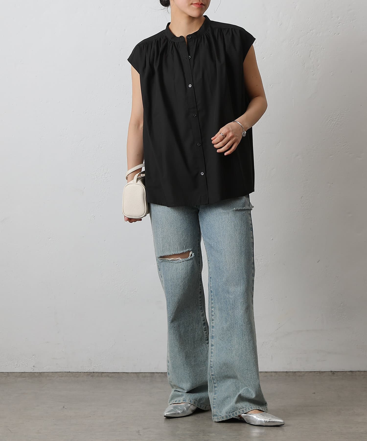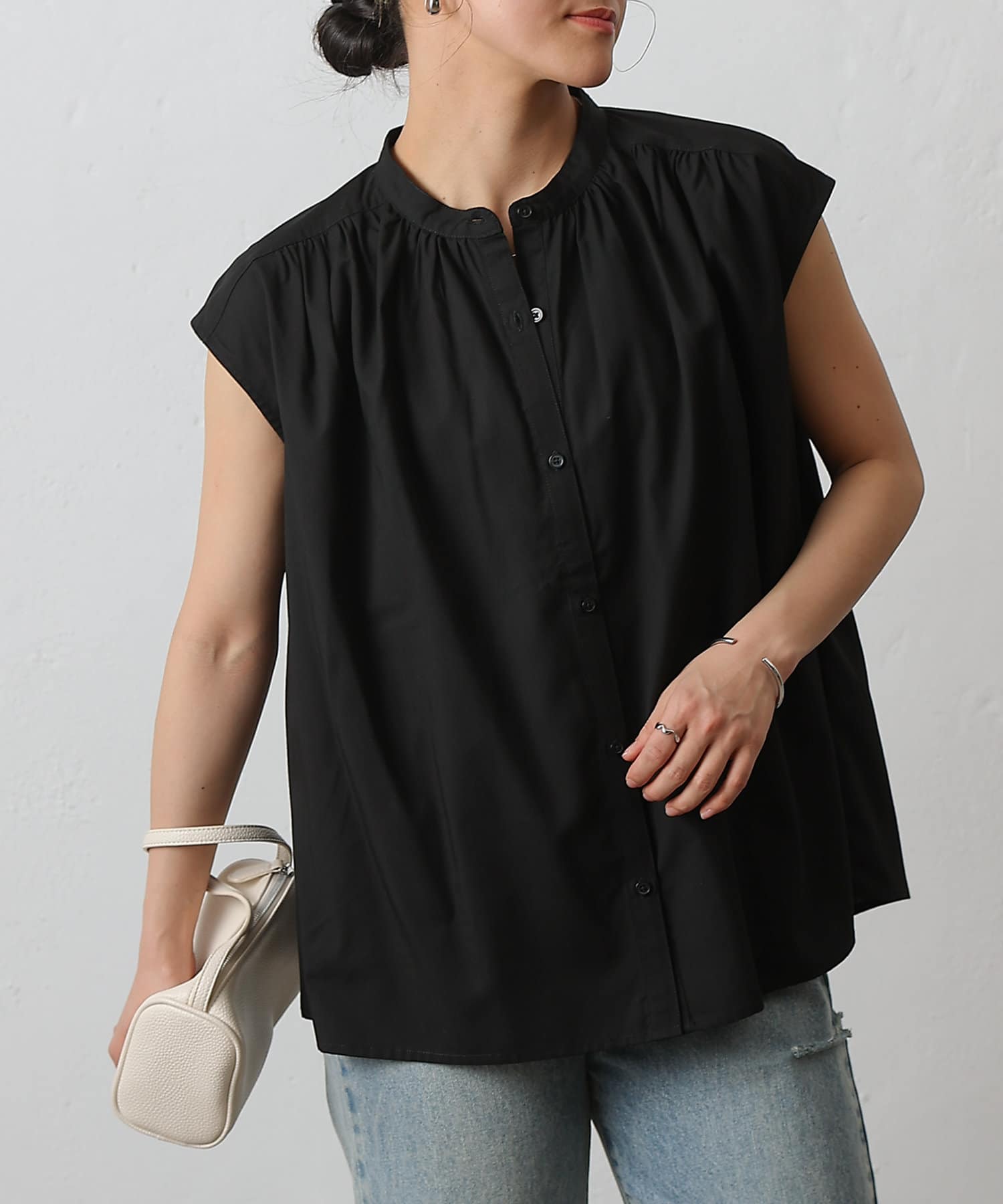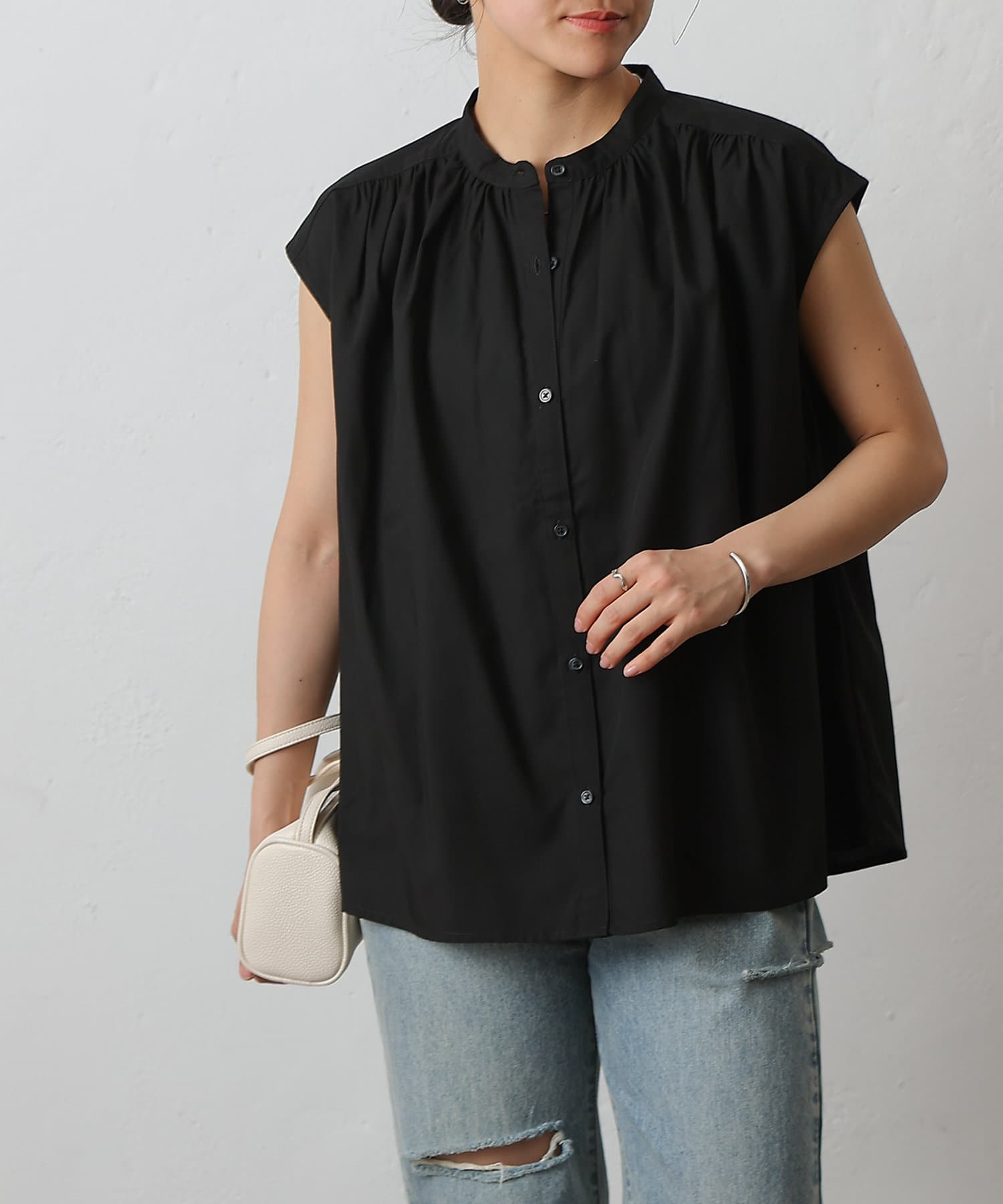 ・CWA1051404A0004 ナイロンカバーリングスキッパーブラウス
