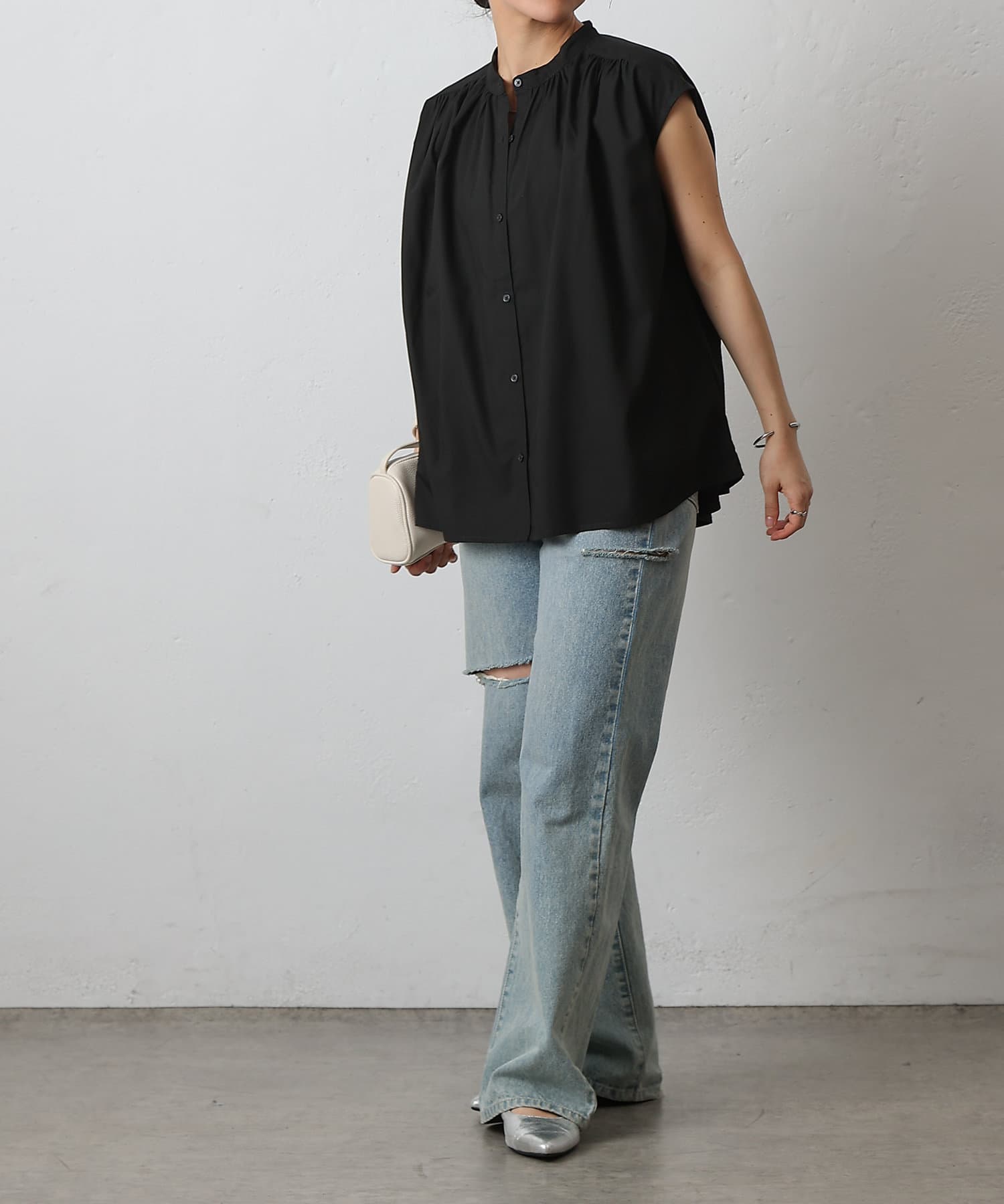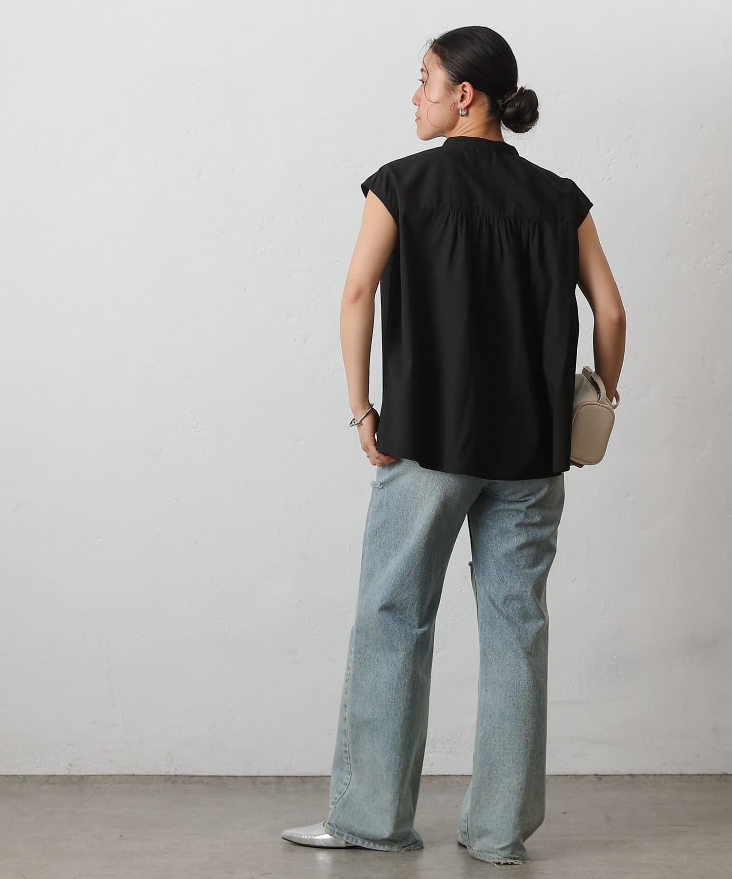 ゆとりを持たせたアームホールとやや肩先にかかるスリーブが、腕周りを華奢見せしてくれる優れものです。