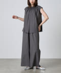 【セットアップ対応】ナイロンカバーリングギャザーブラウス