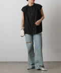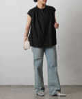 ゆとりを持たせたアームホールとやや肩先にかかるスリーブが、腕周りを華奢見せしてくれる優れものです。