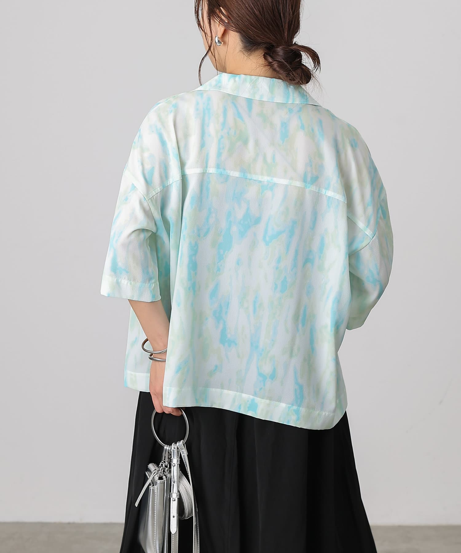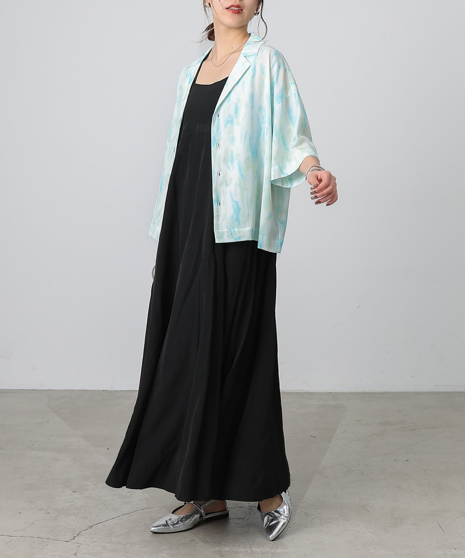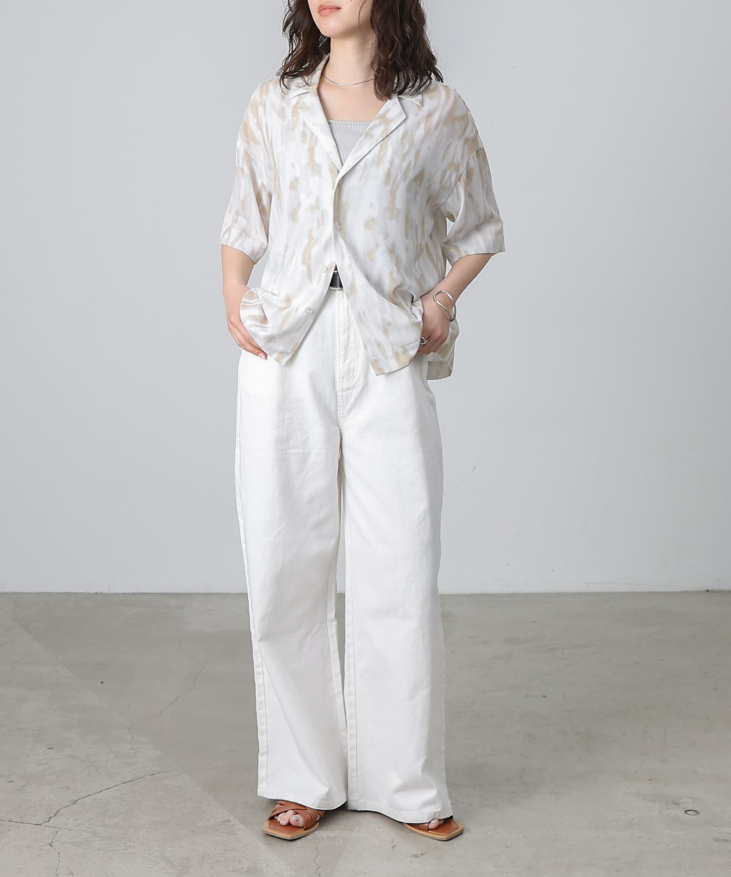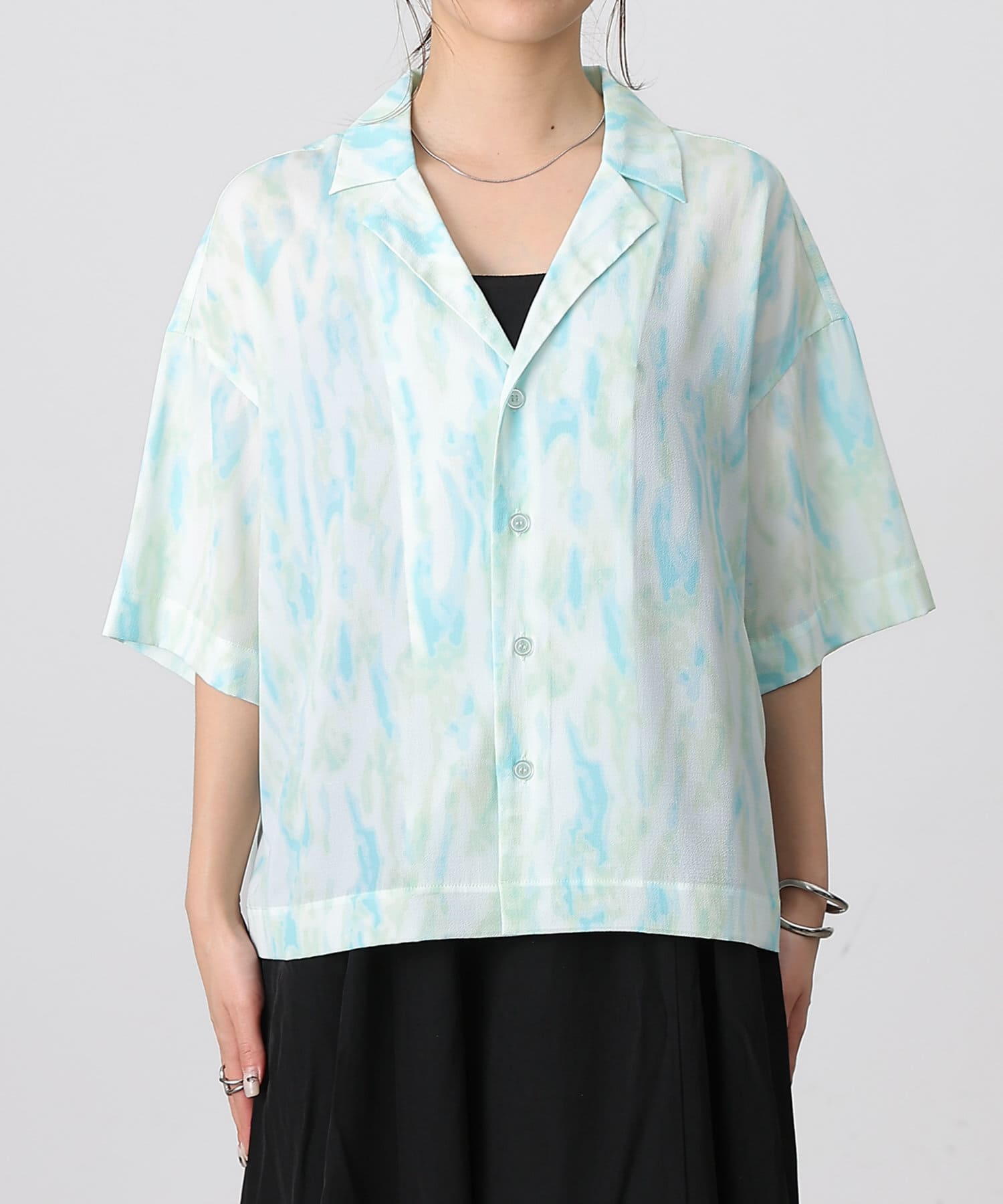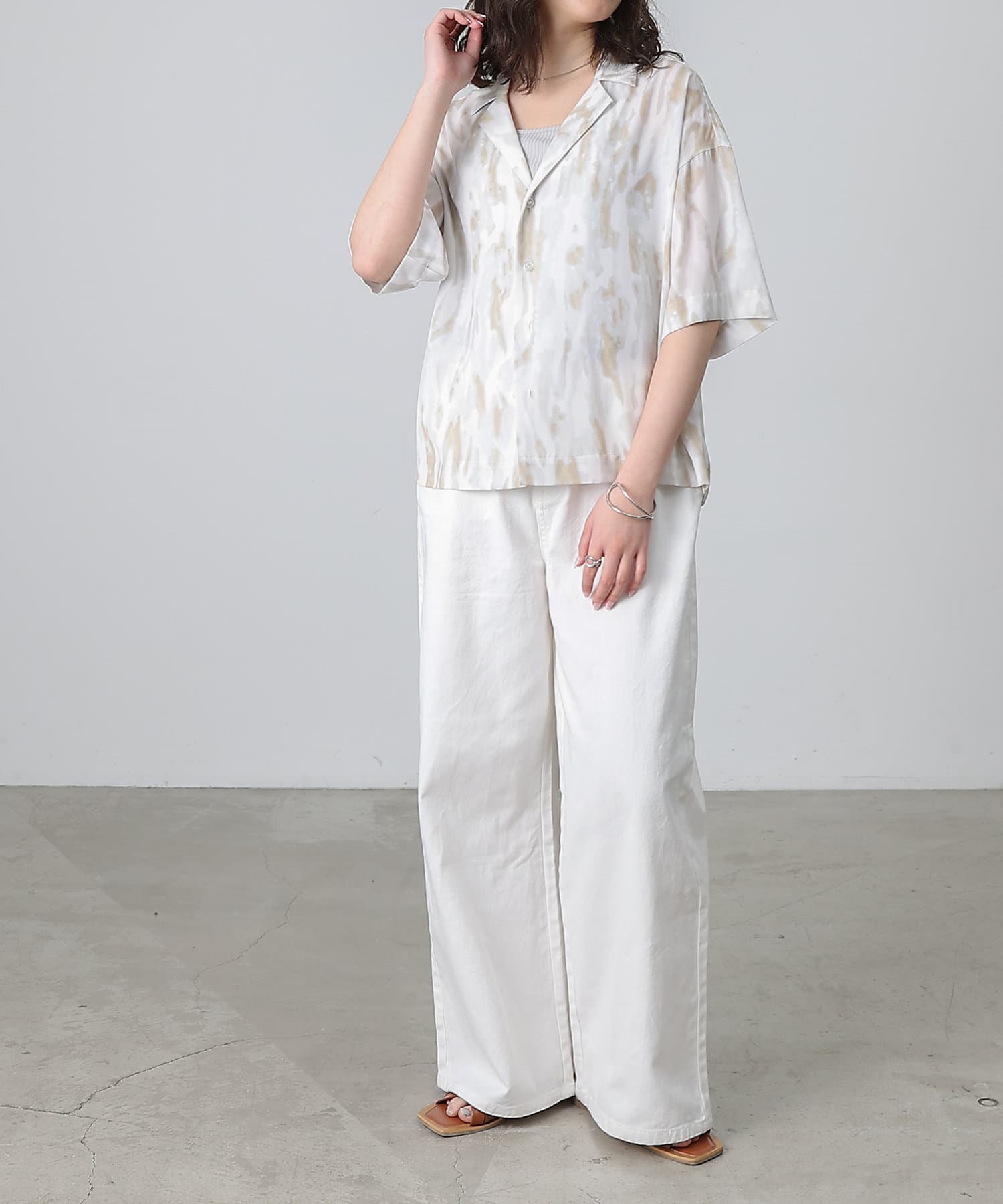シンプルになりがちな夏コーデのアクセントにぴったりなオープンカラーシャツ。