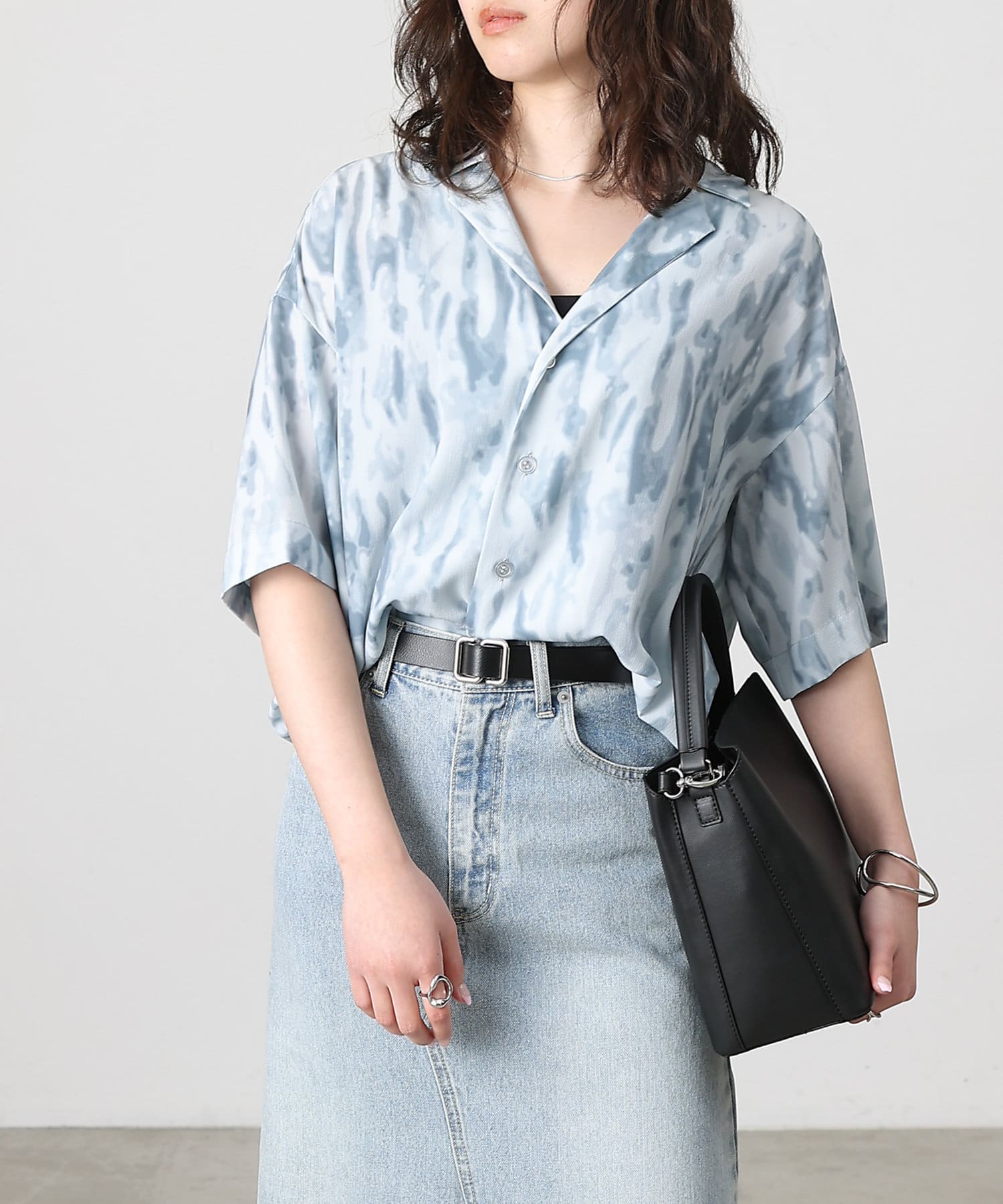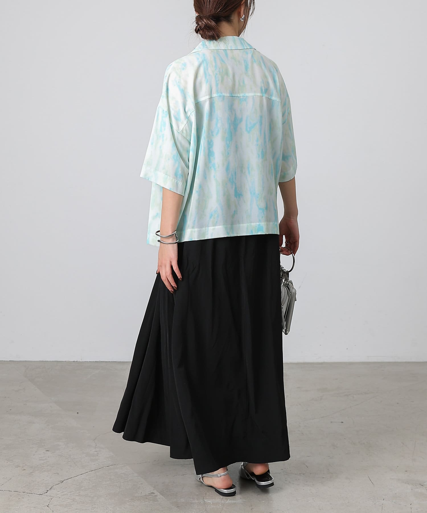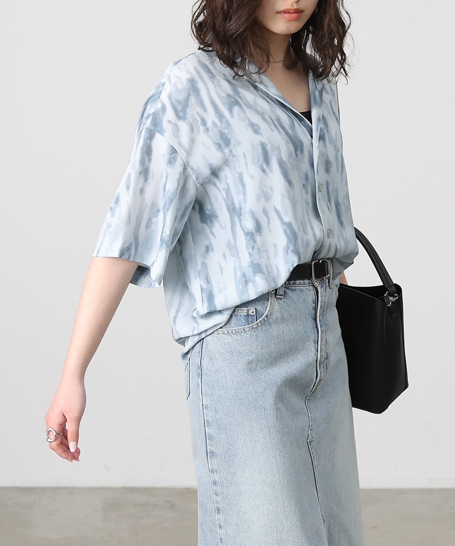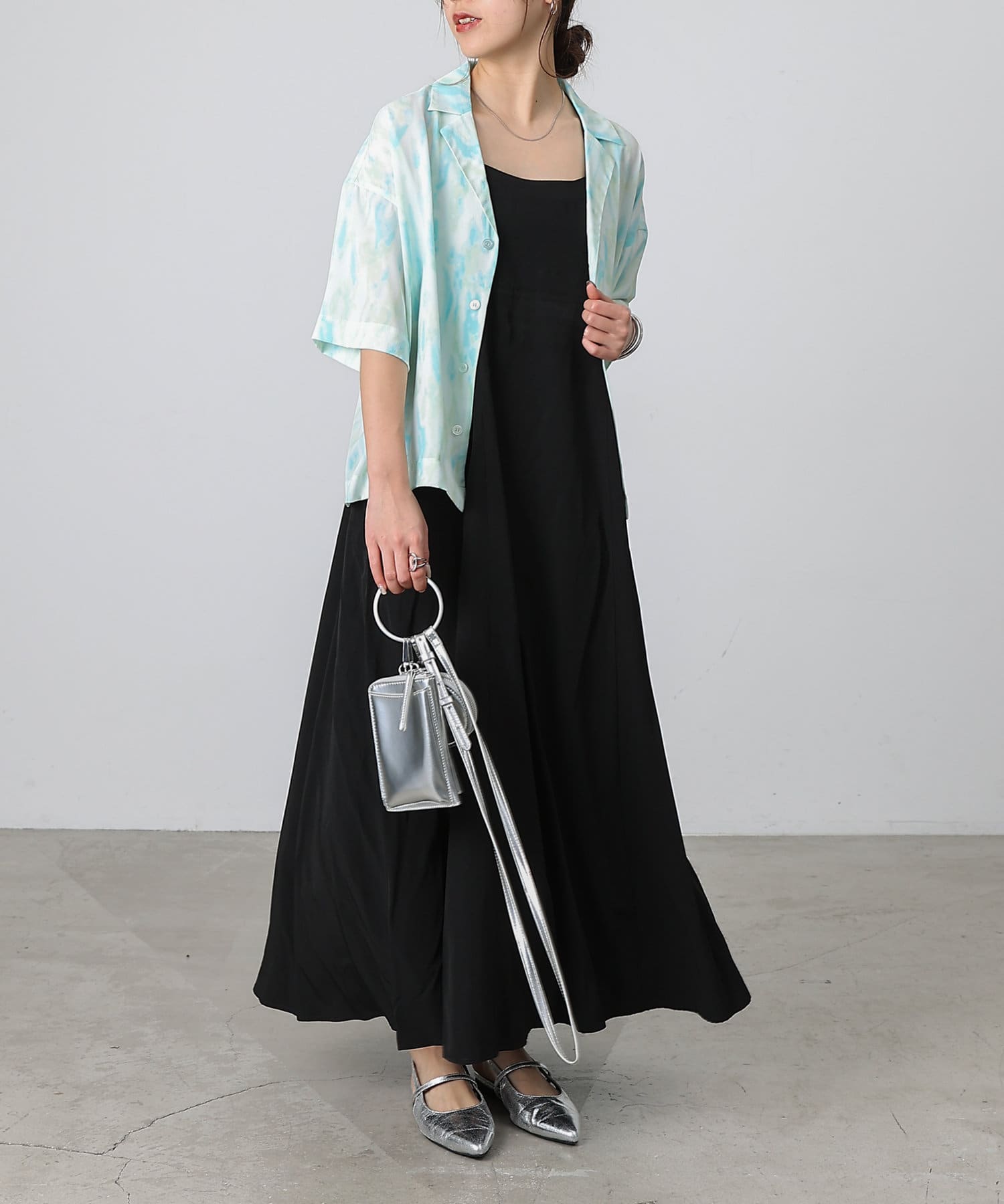 シンプルになりがちな夏コーデのアクセントにぴったりなオープンカラーシャツ。