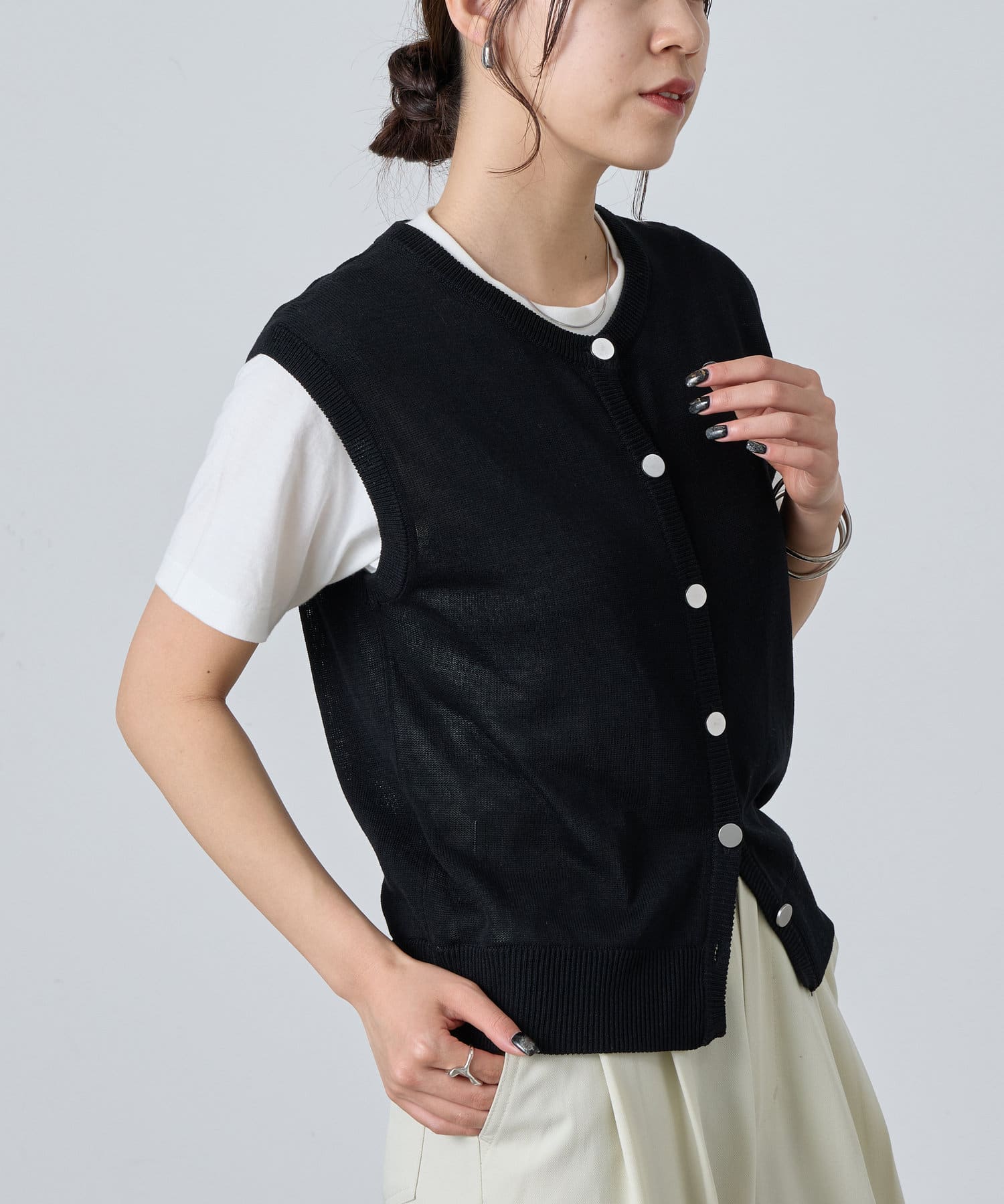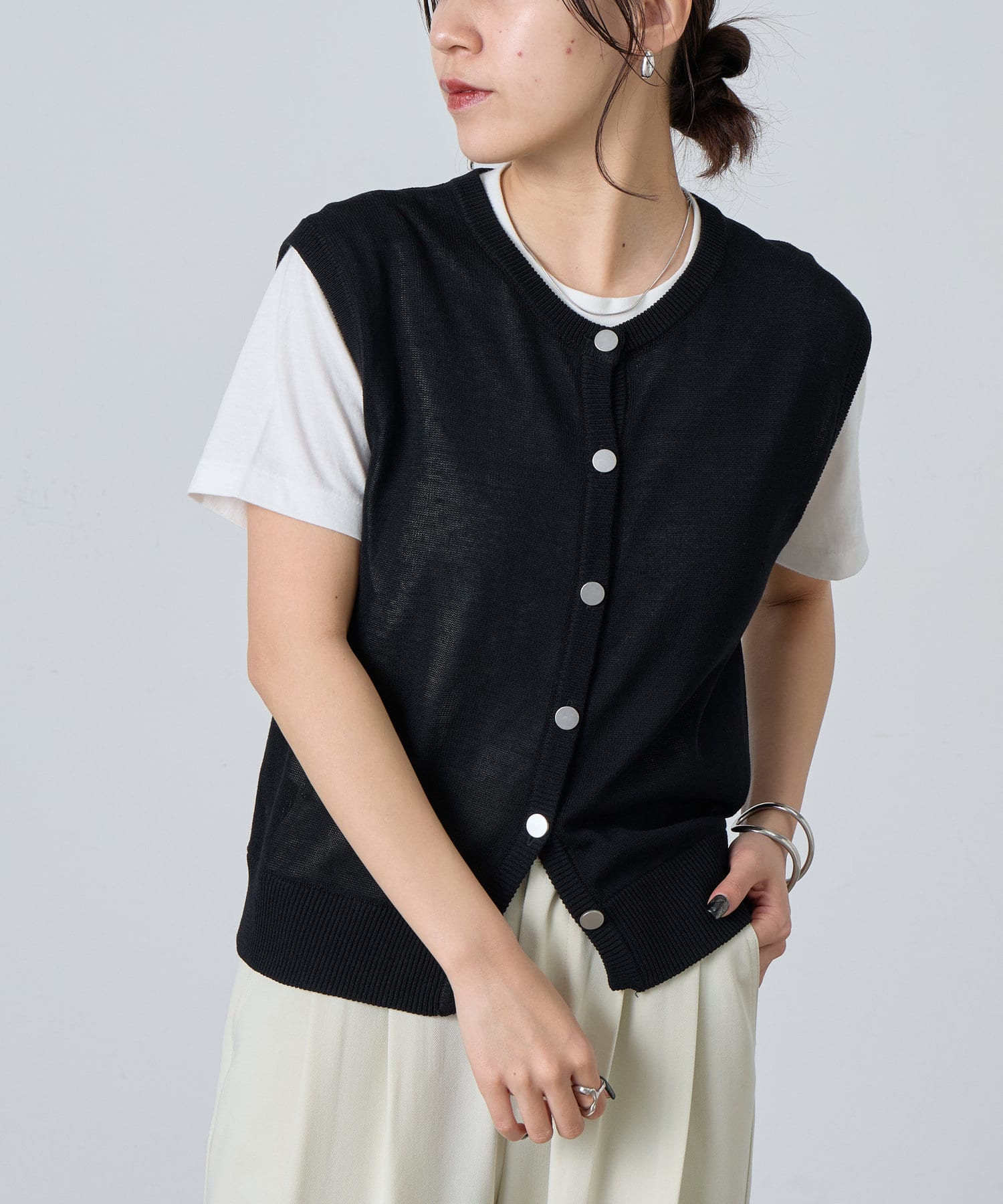 【いつものコーデにプラスワン!涼しげなニットボタンベスト】