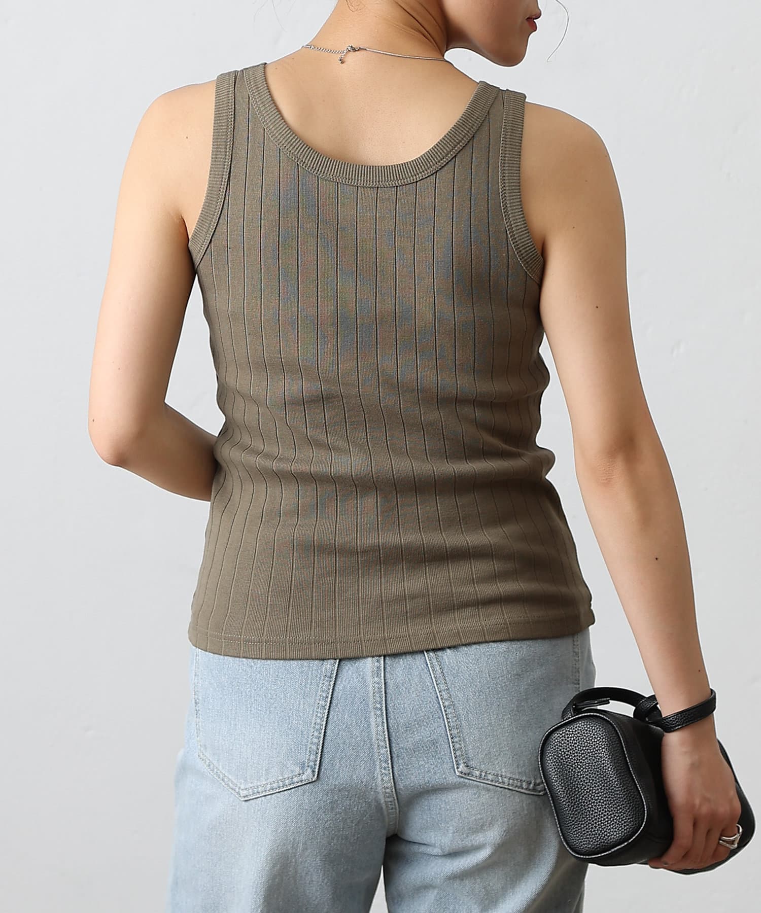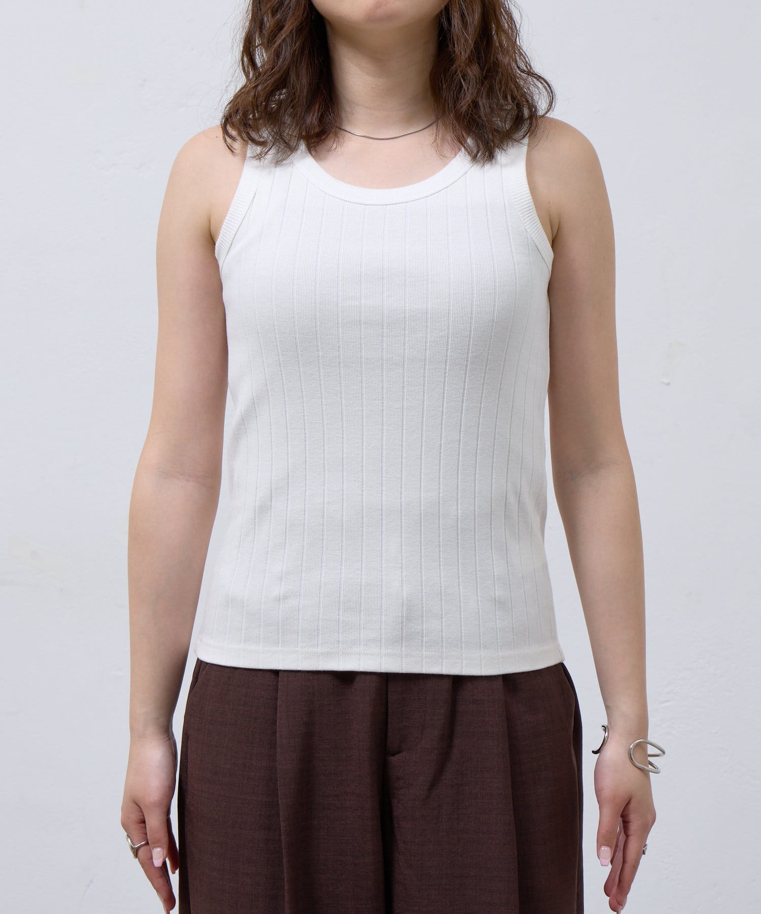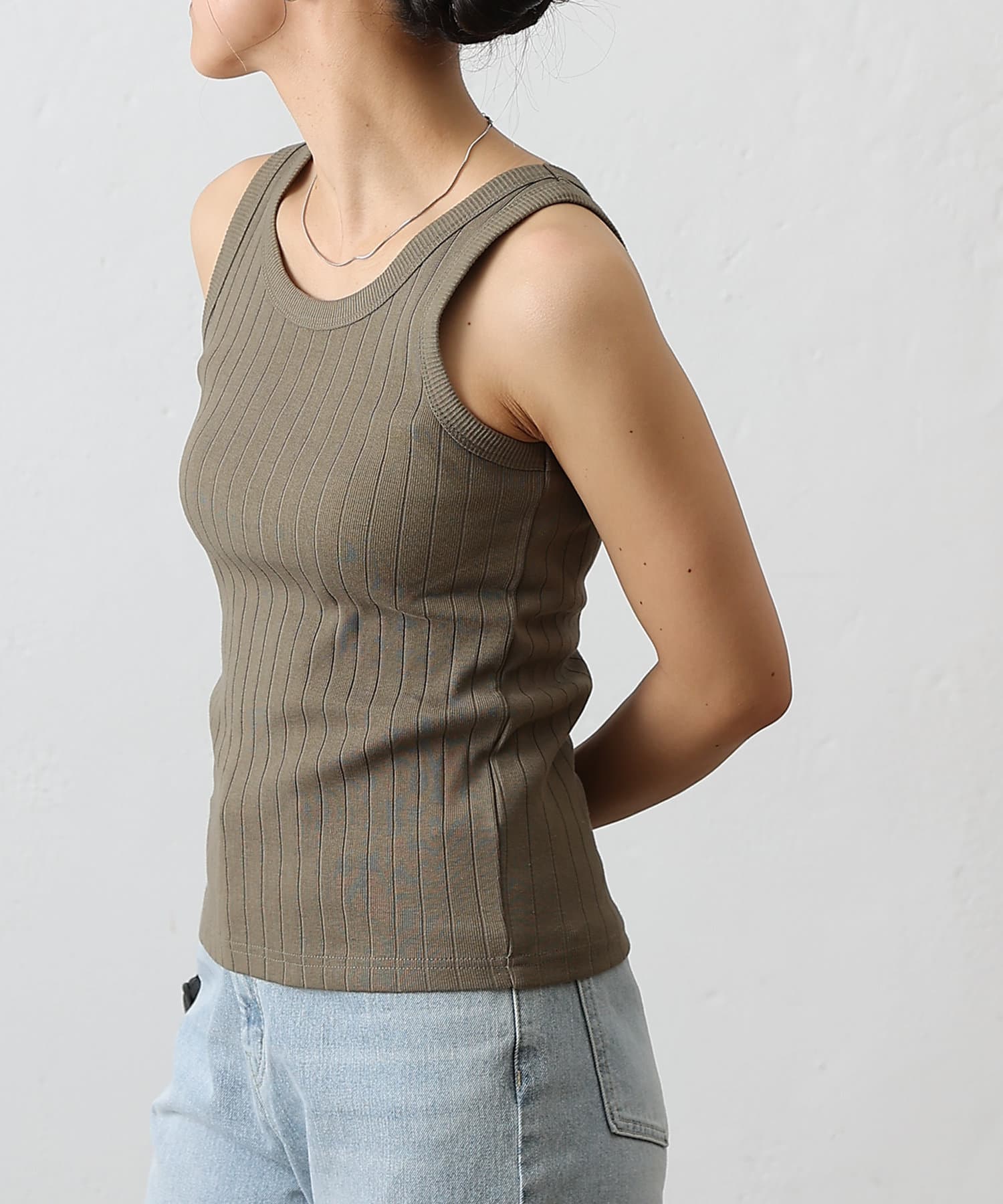 コットン100%のワイドリブタンクトップで着心地も抜群◎