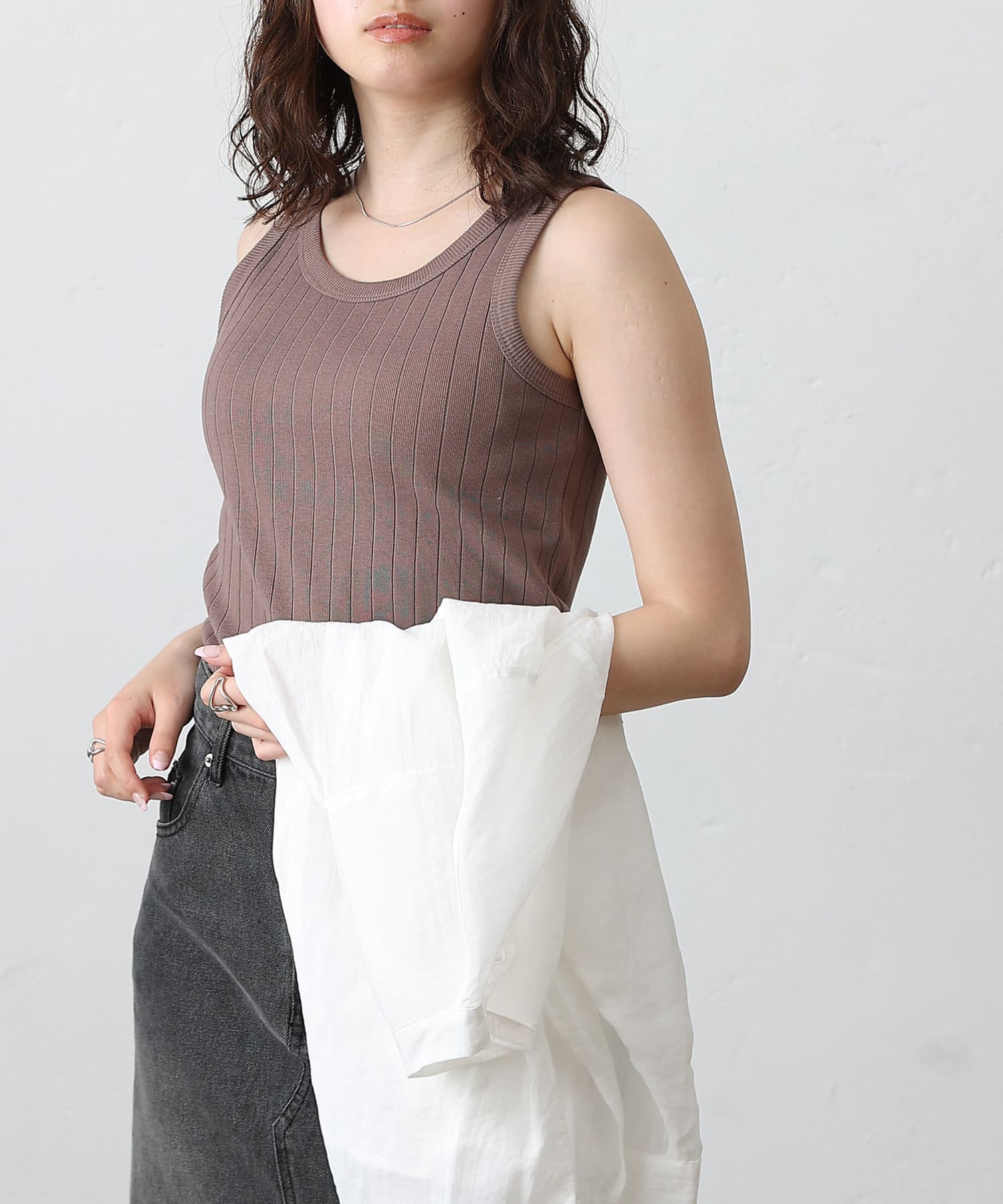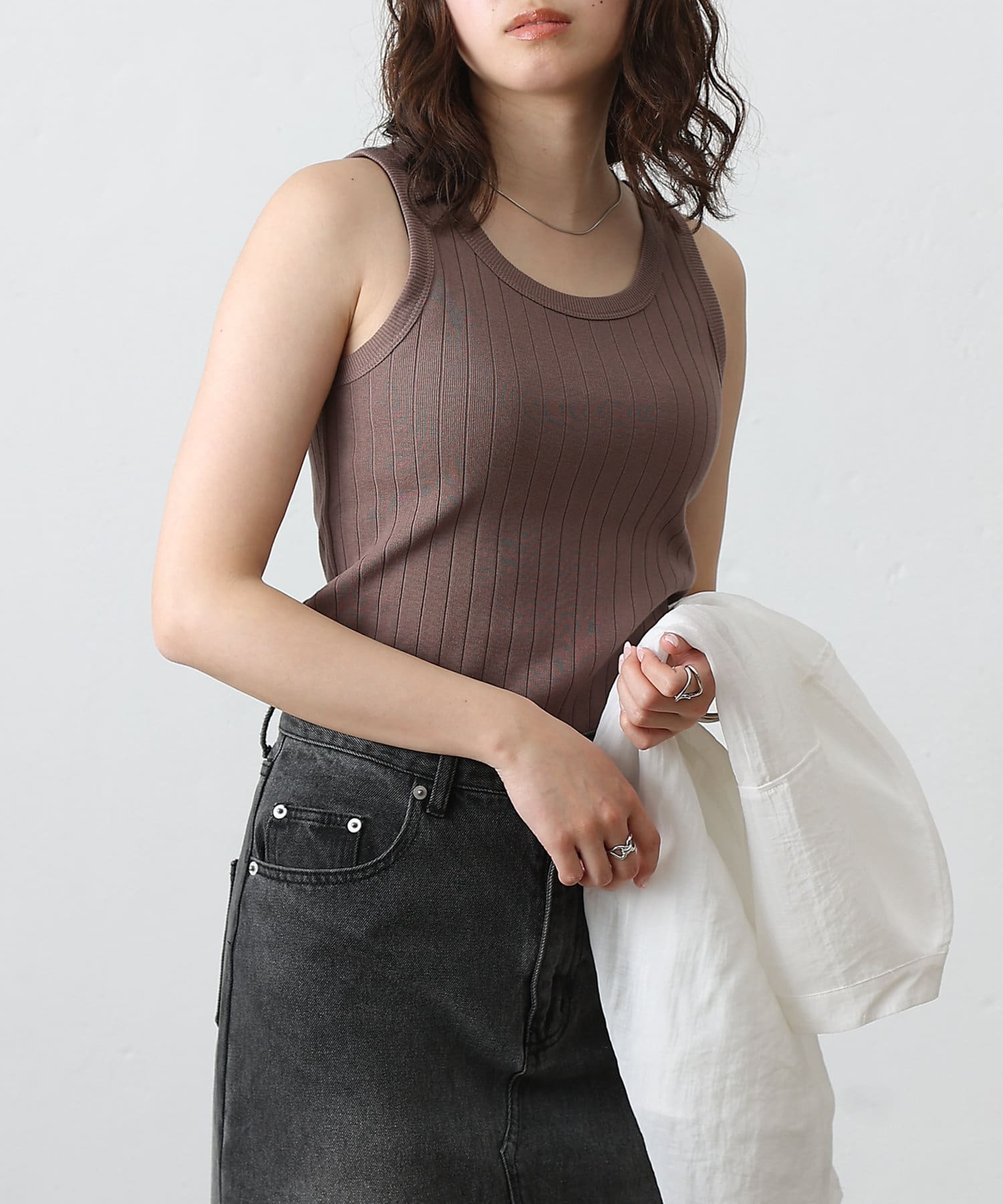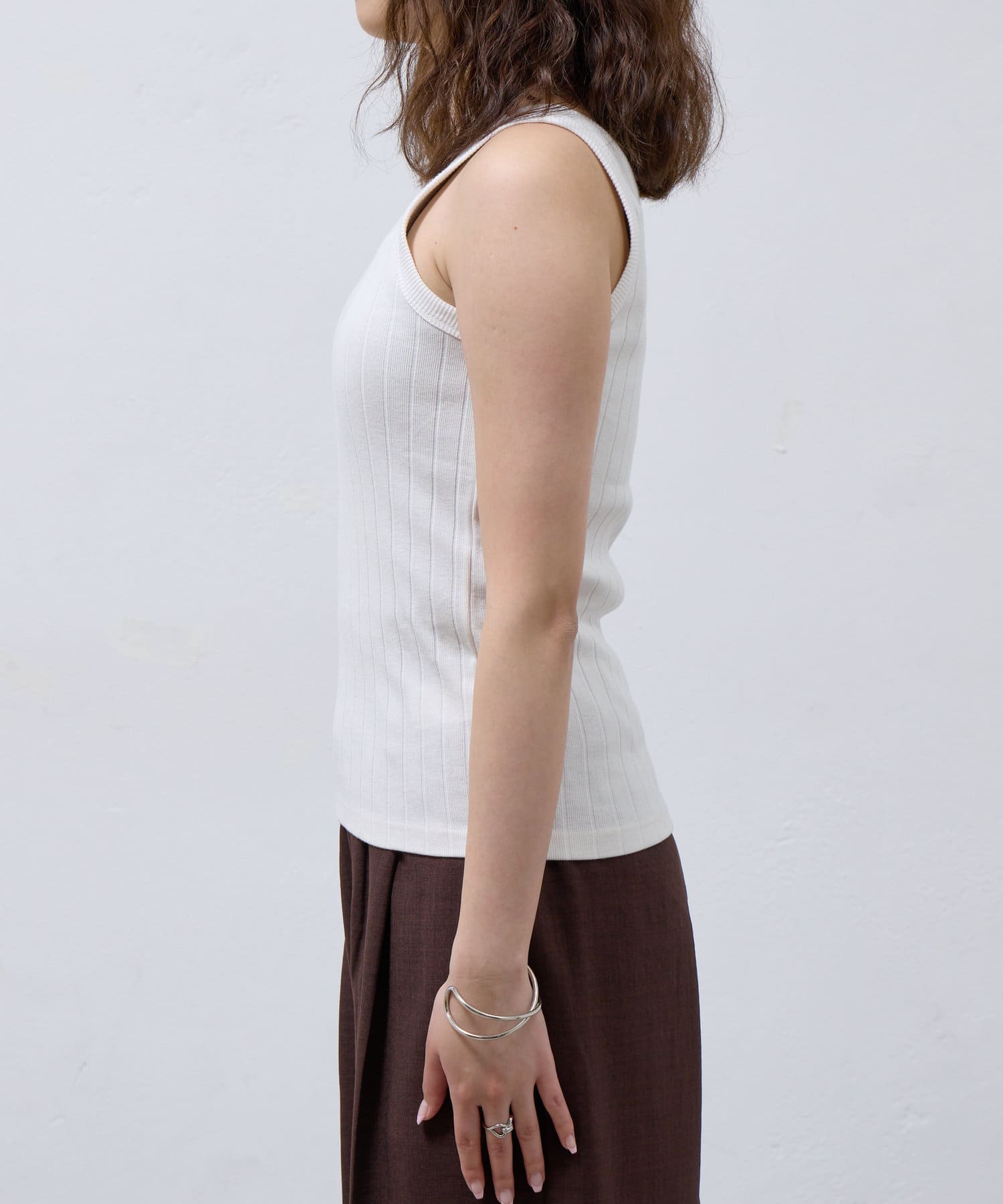 コットン100%のワイドリブタンクトップで着心地も抜群◎