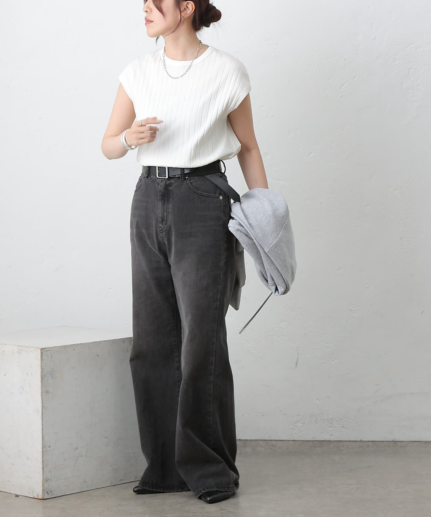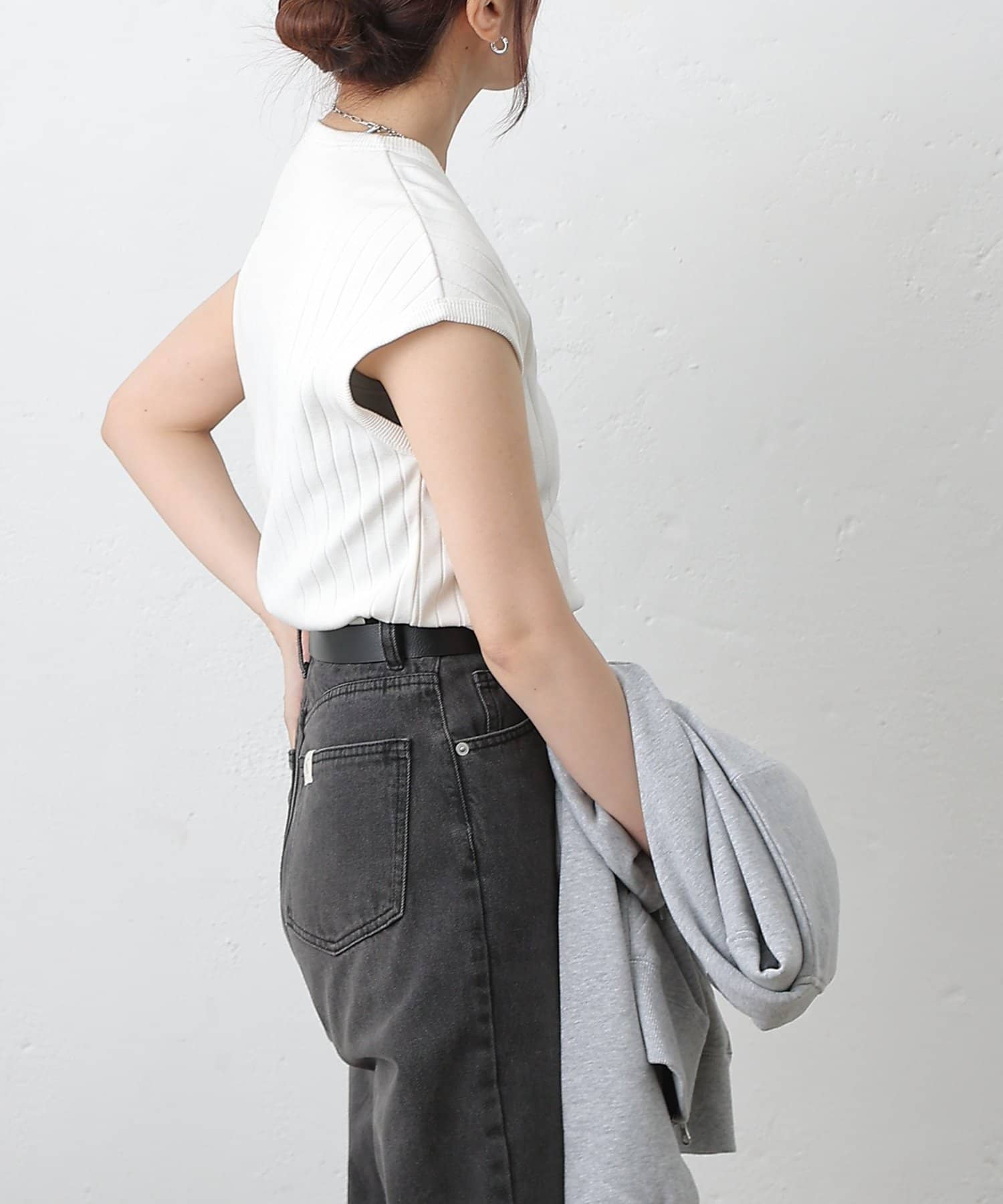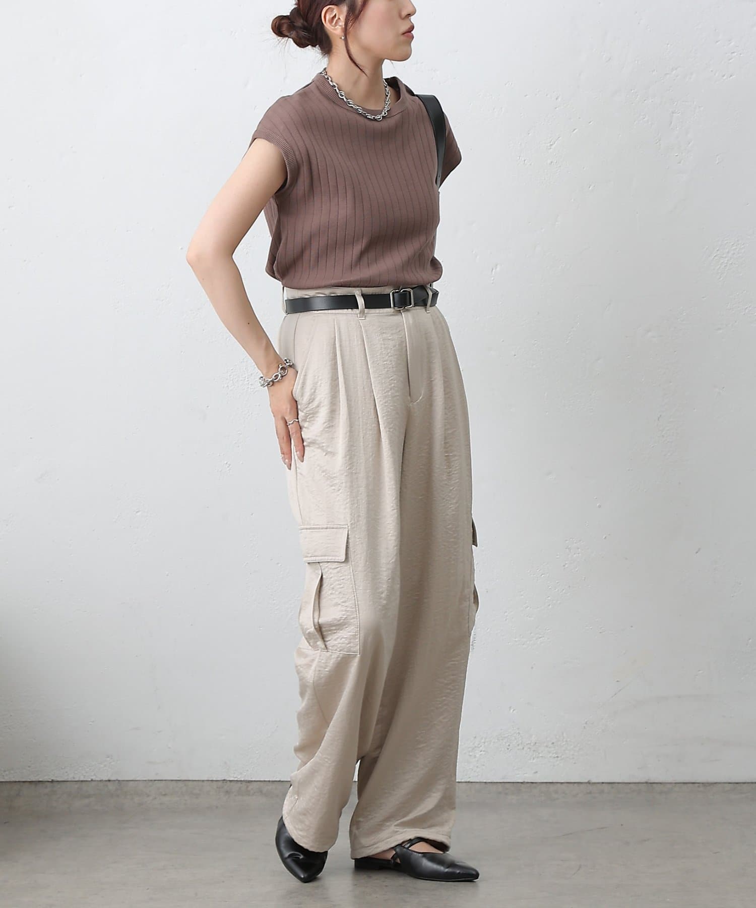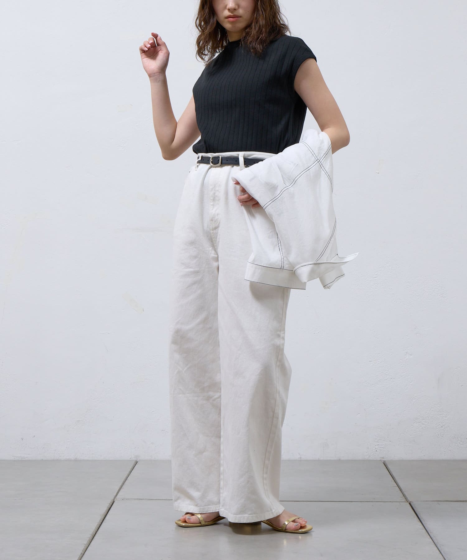 またワイドリブで立体的な素材なので、体のラインを拾いにくくすっきりとみせてくれます。