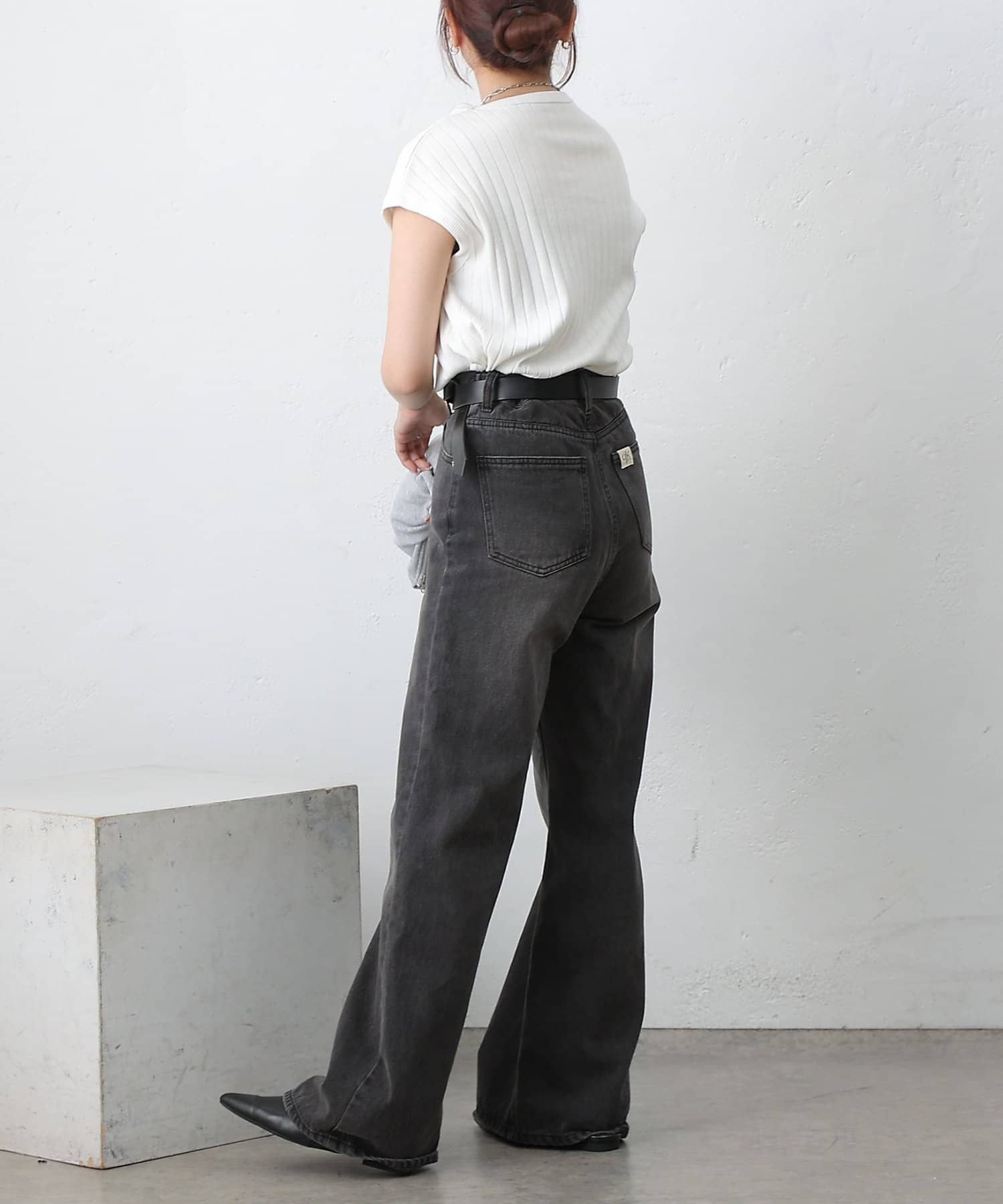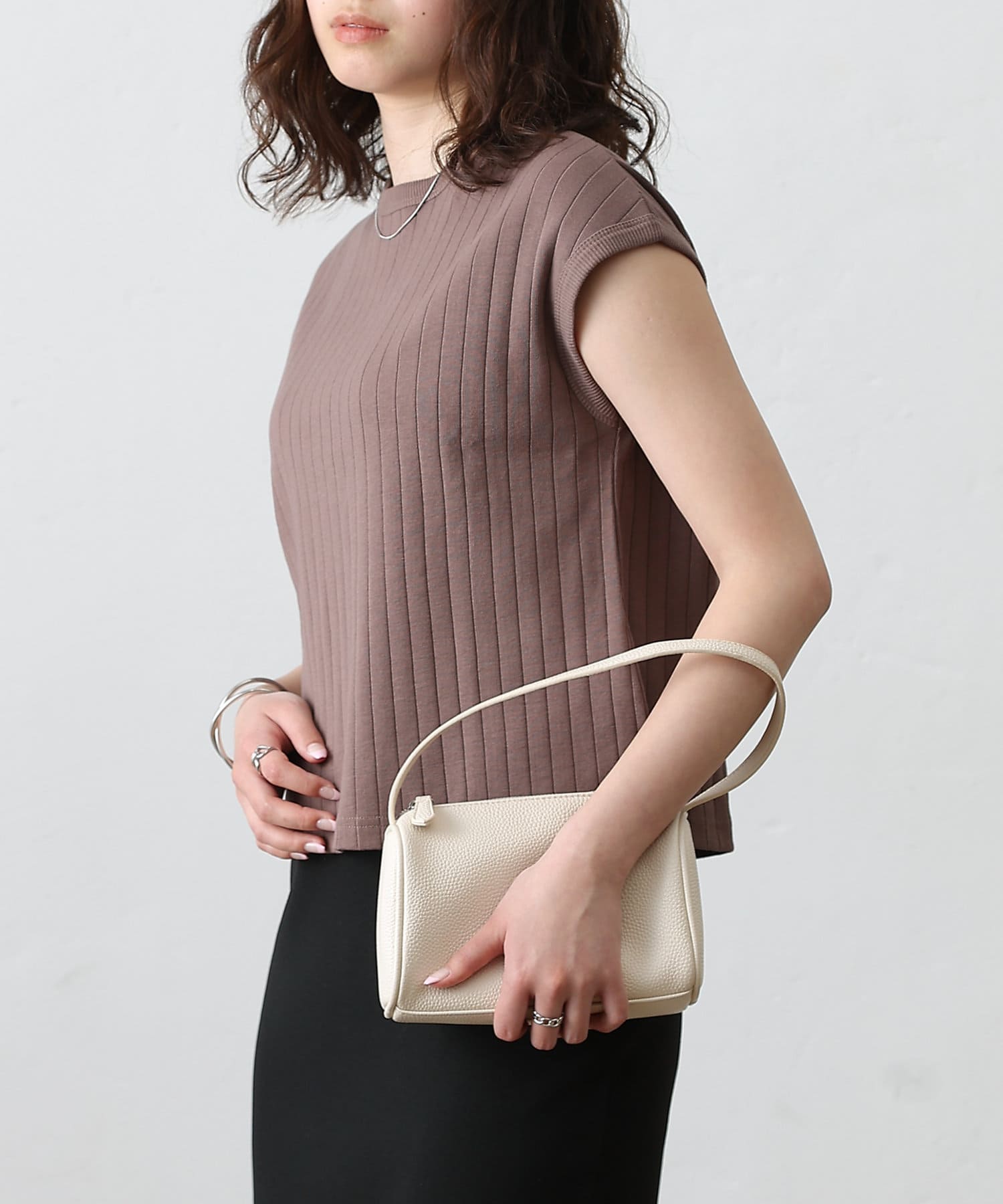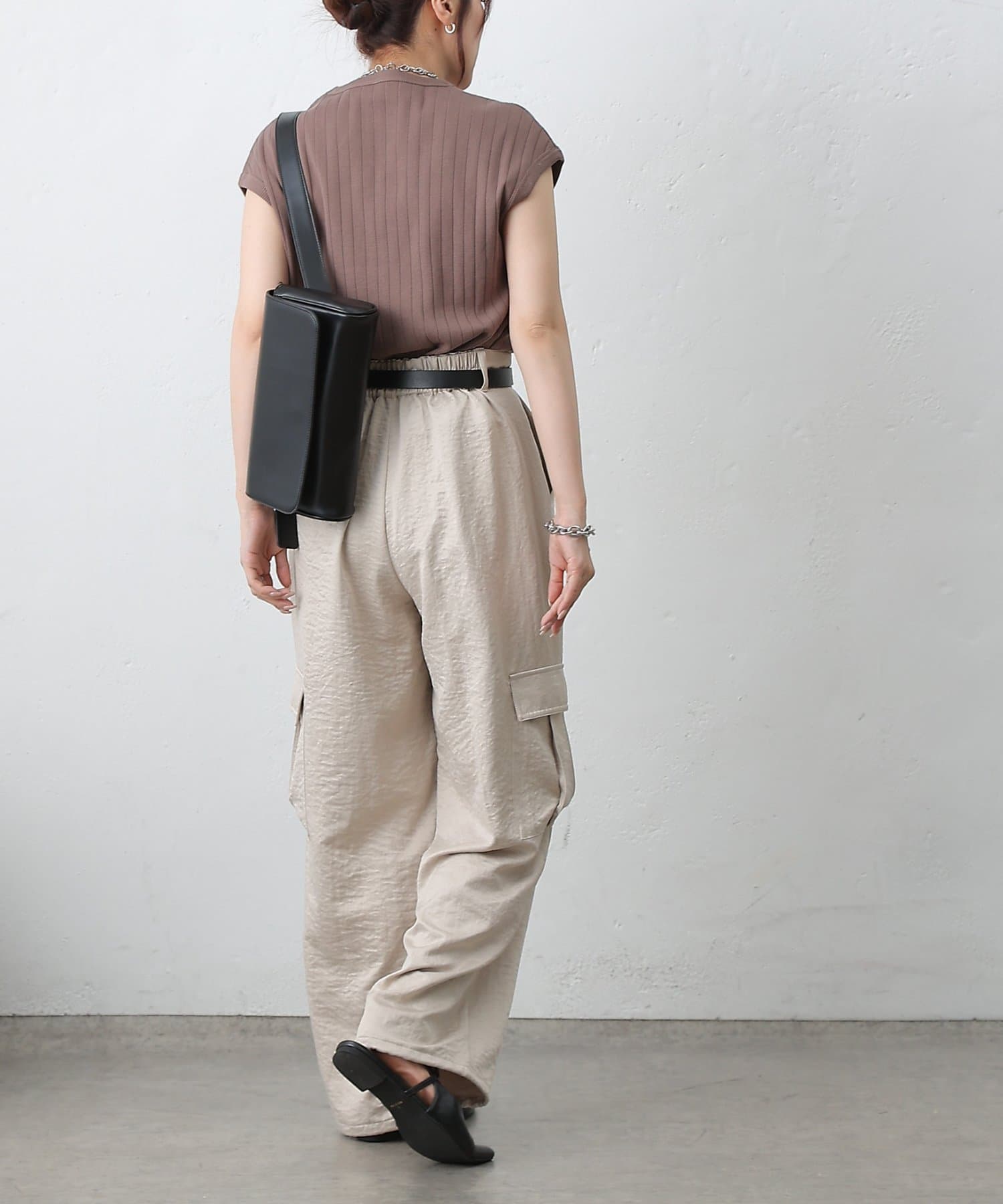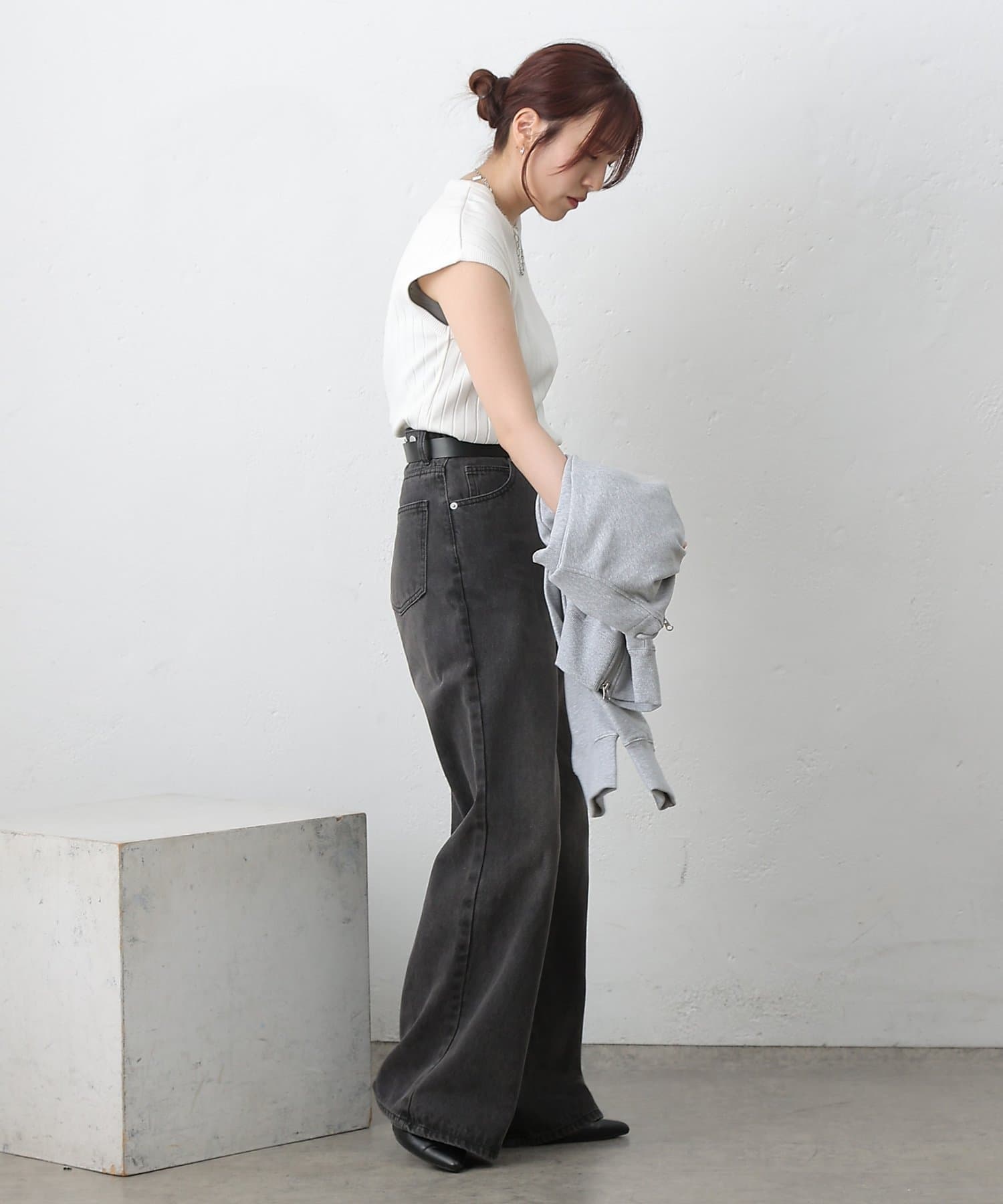 またワイドリブで立体的な素材なので、体のラインを拾いにくくすっきりとみせてくれます。