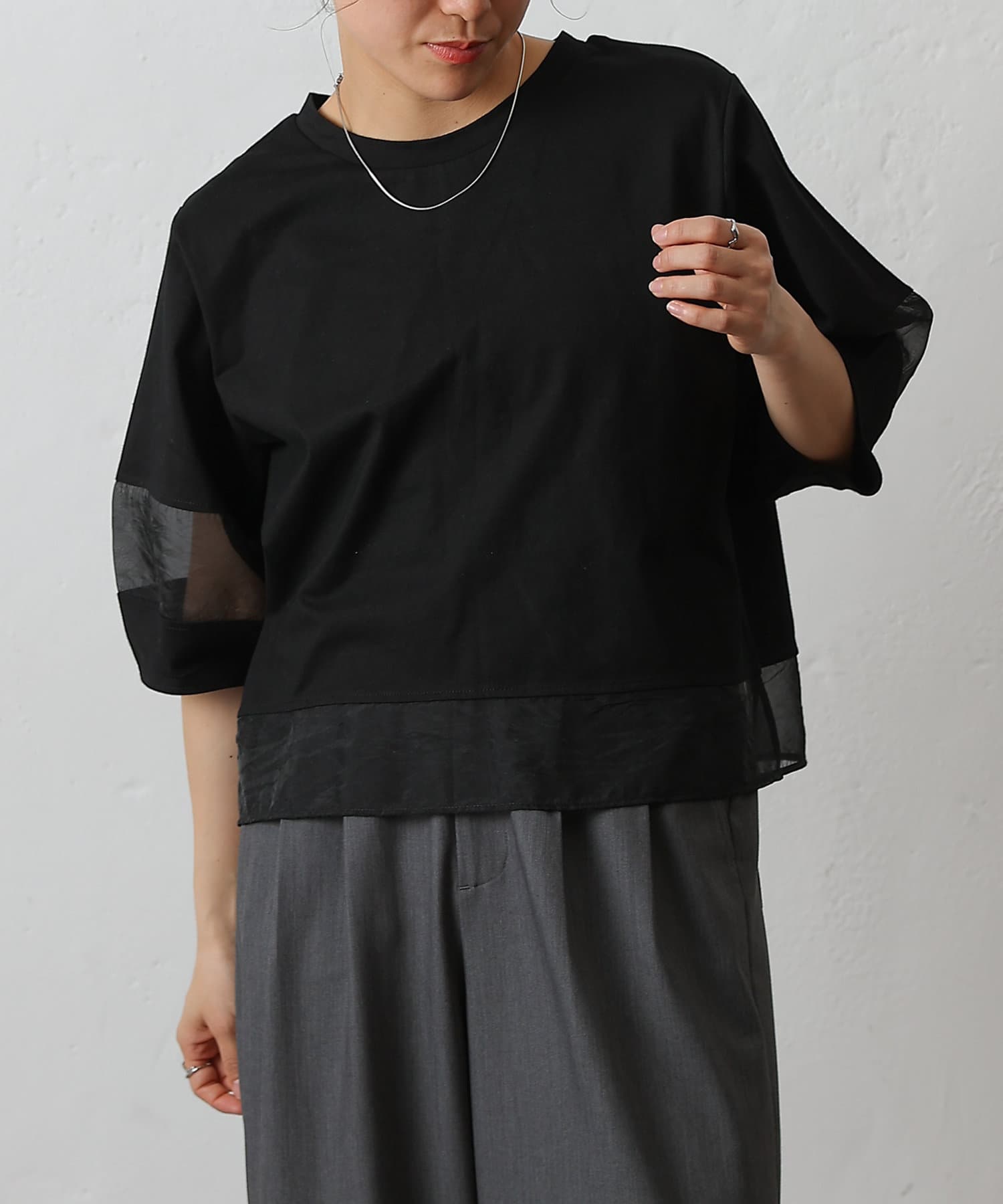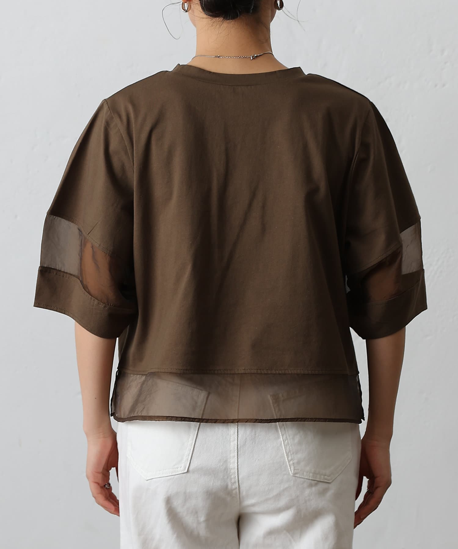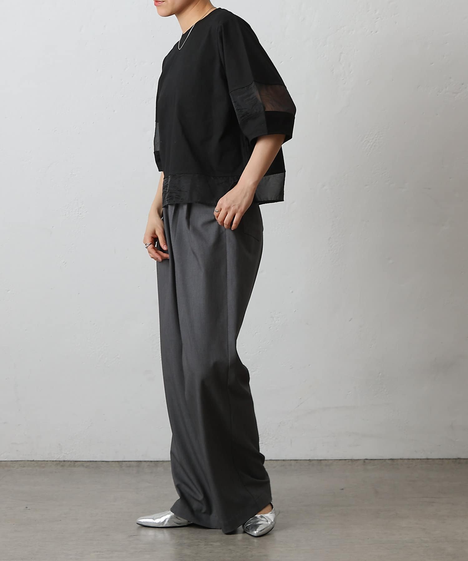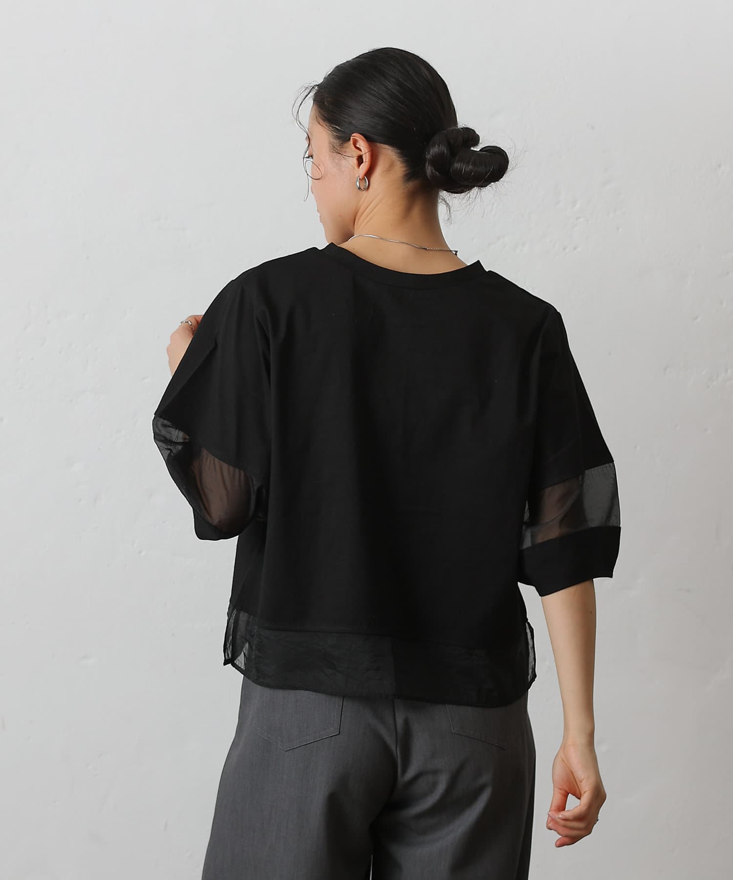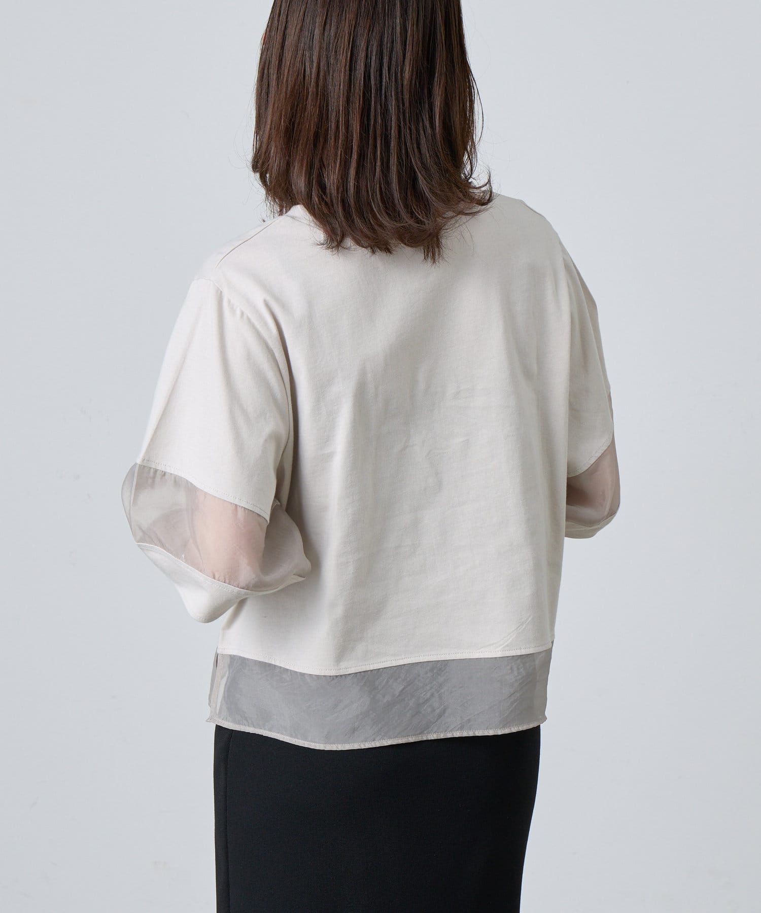 【大人の抜け感を演出したシアー切替ランタンスリーブプルオーバー】