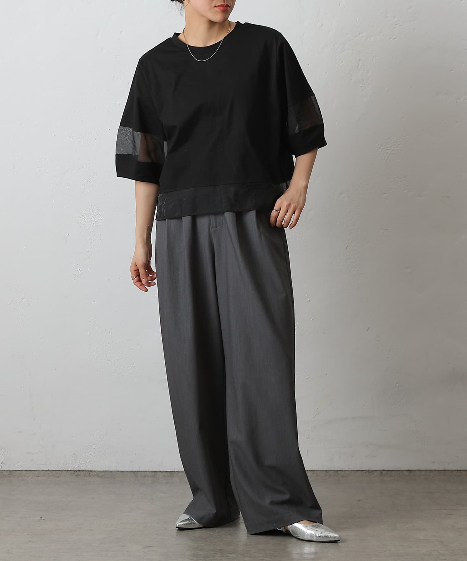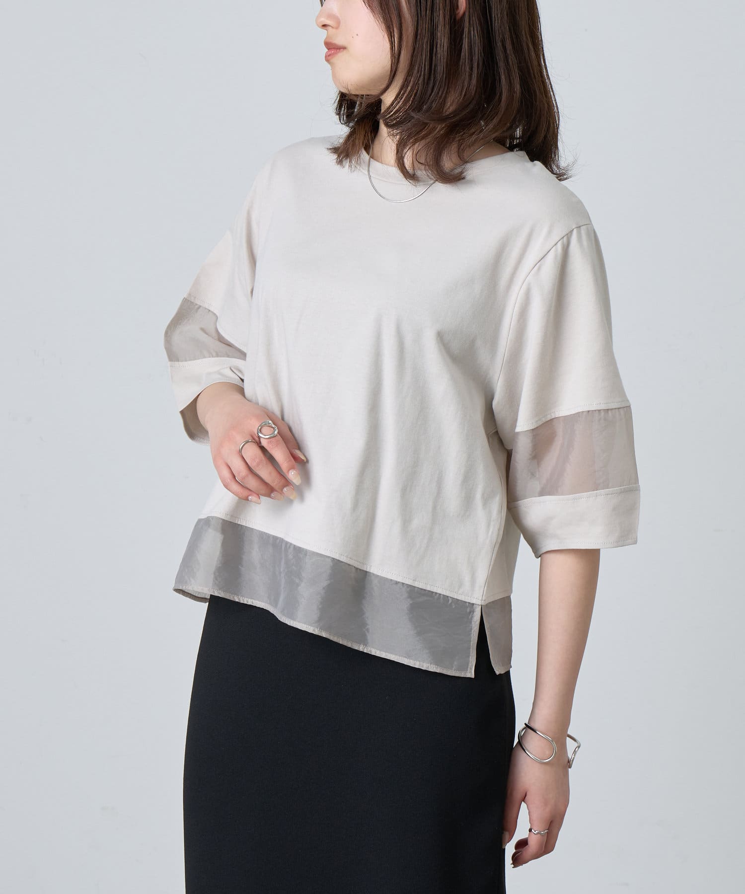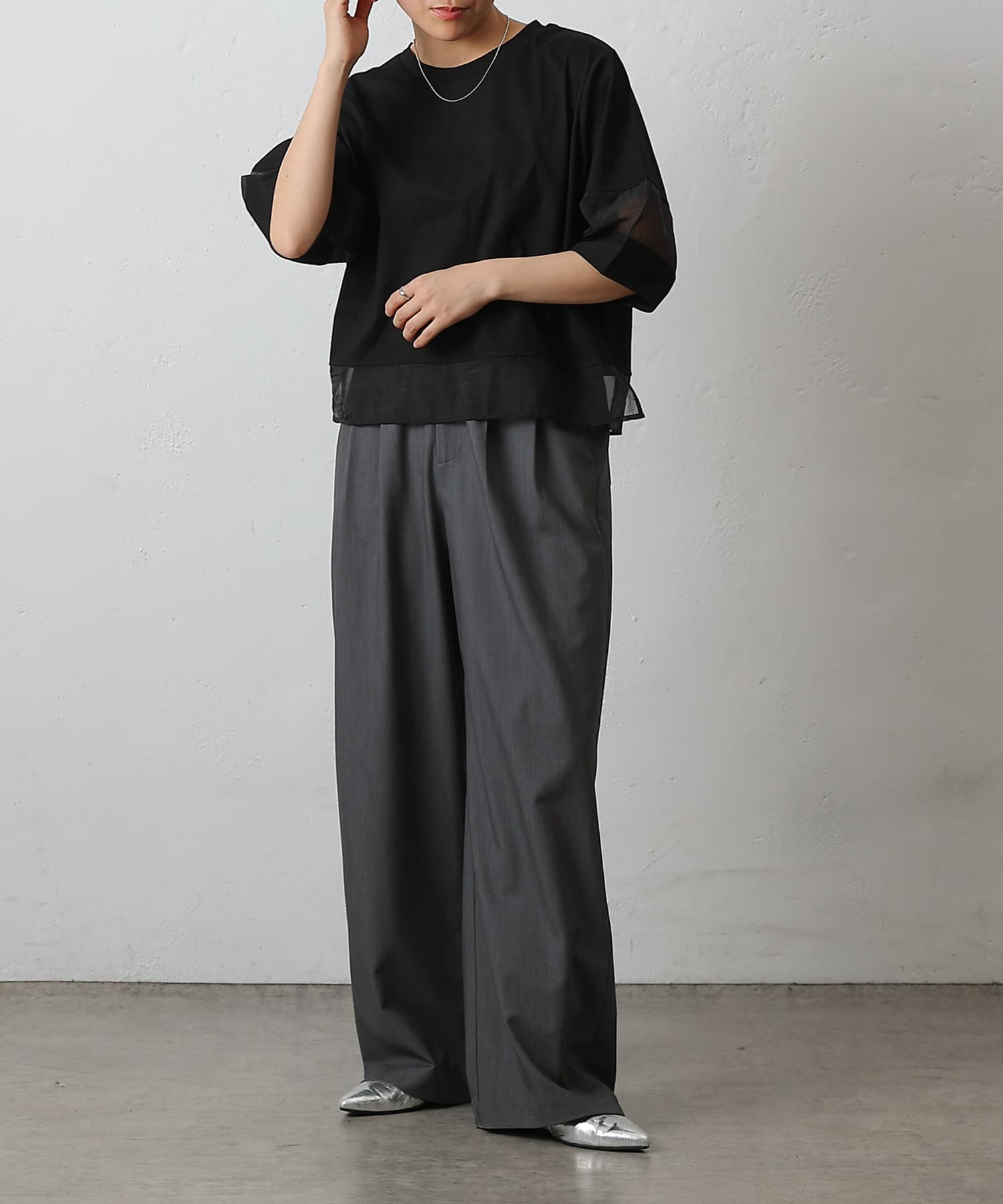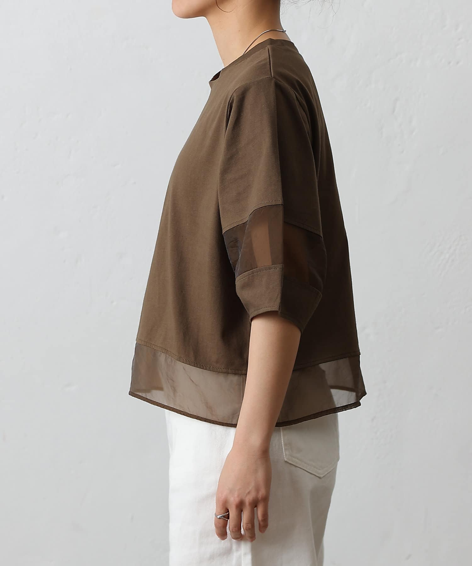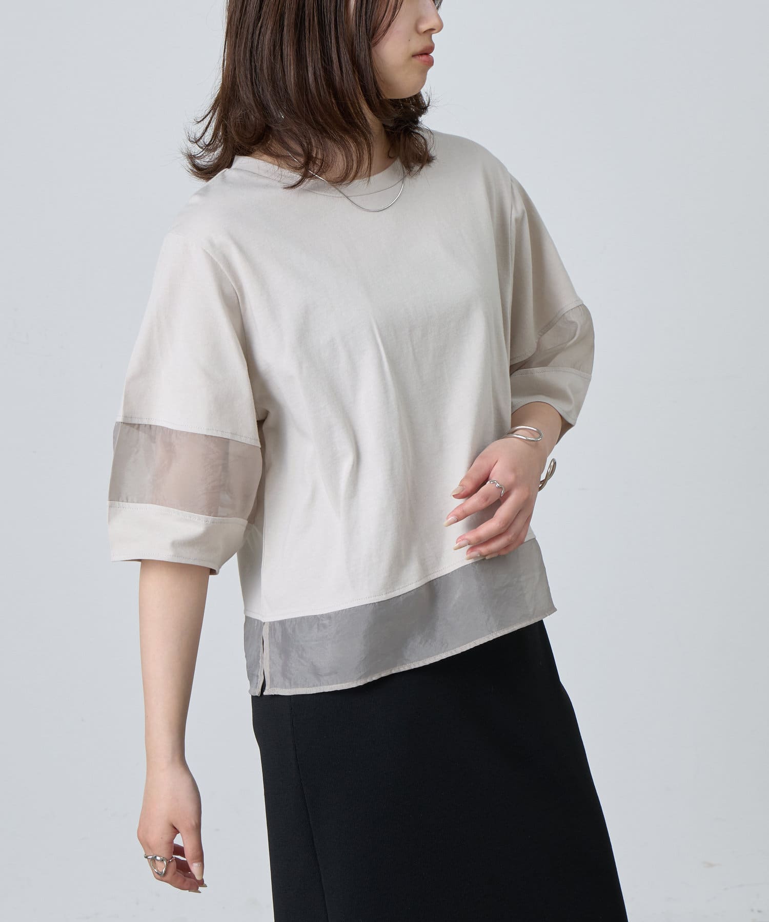 【大人の抜け感を演出したシアー切替ランタンスリーブプルオーバー】