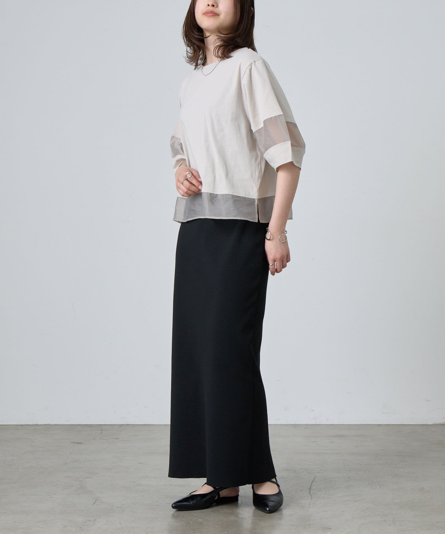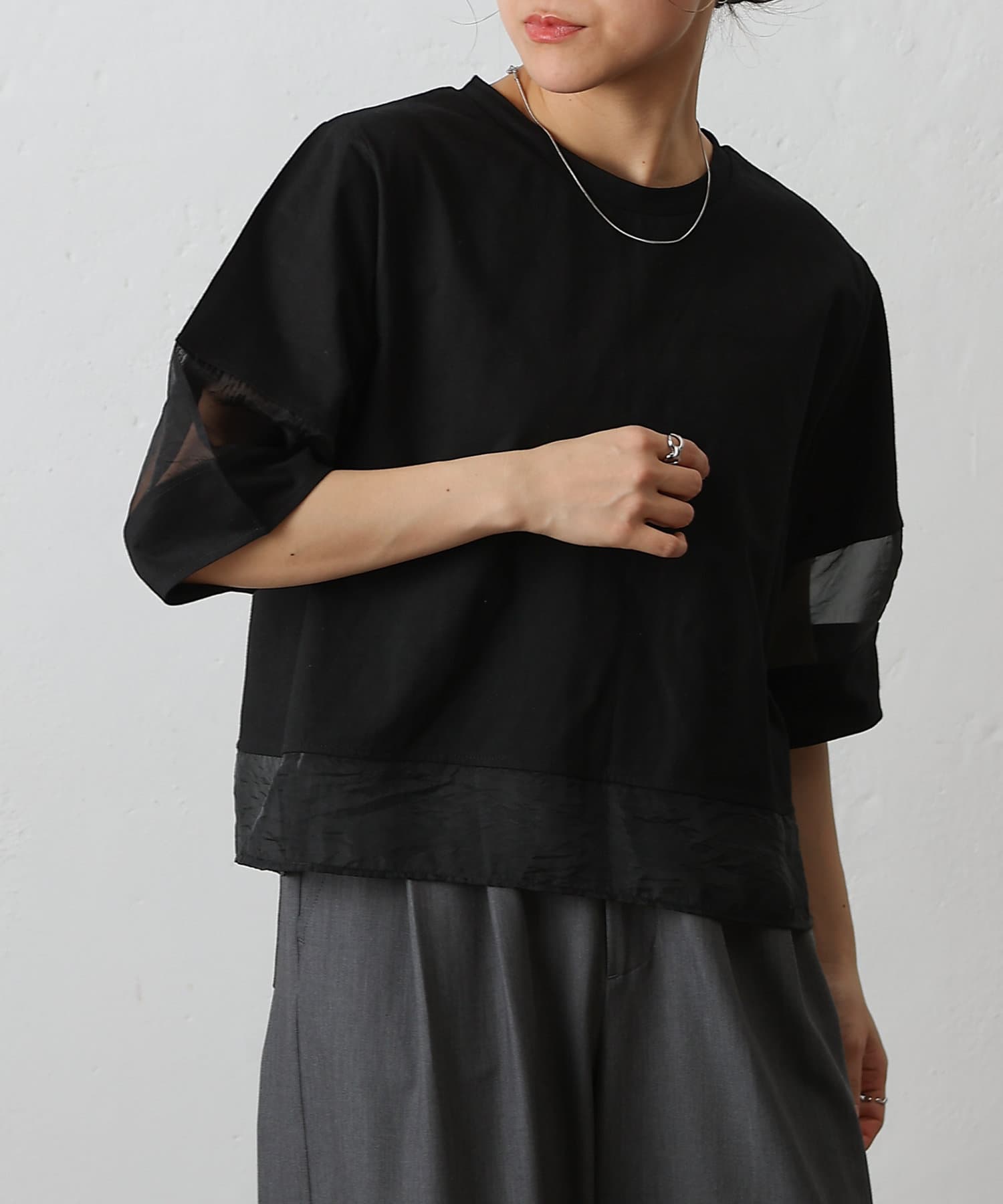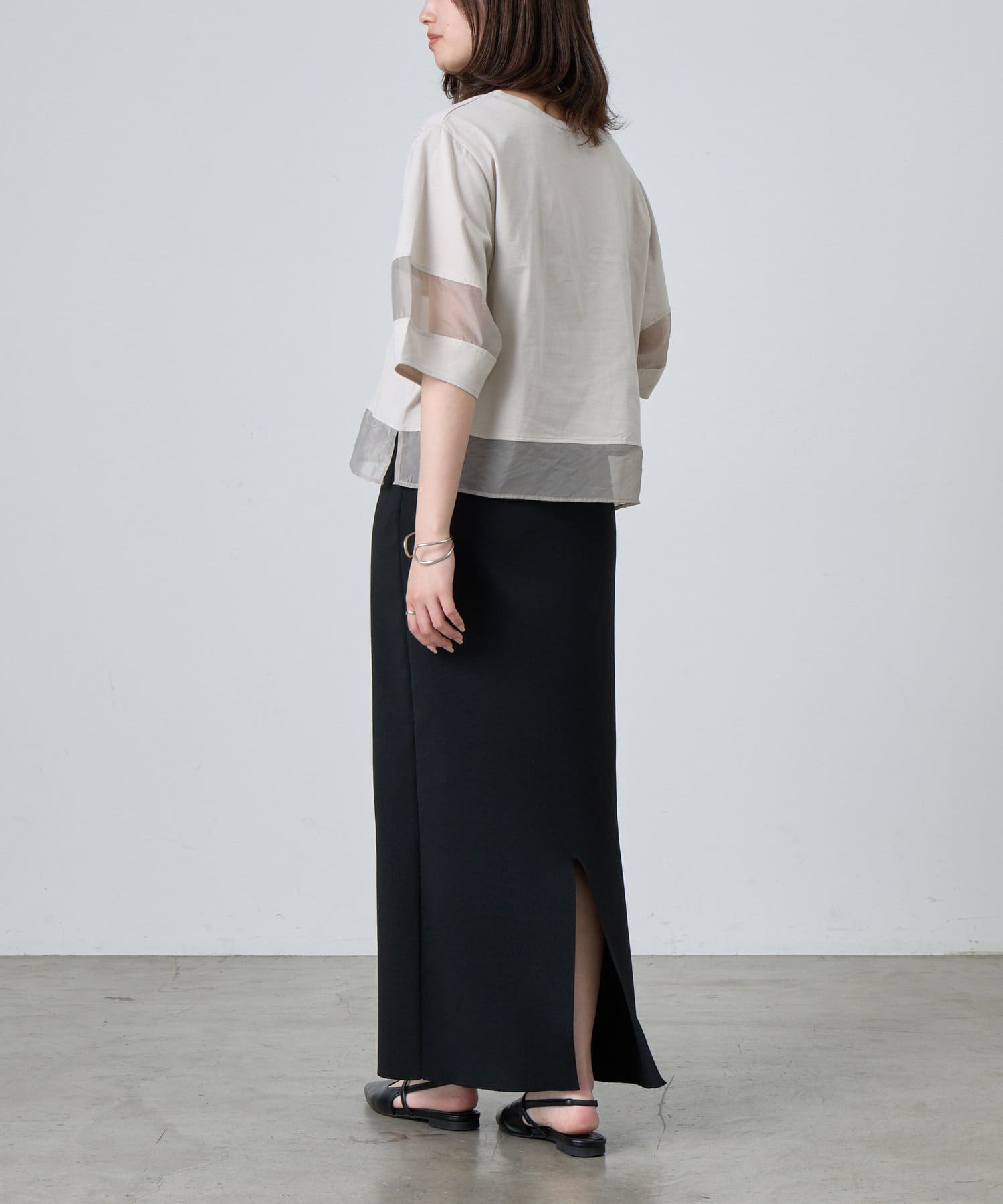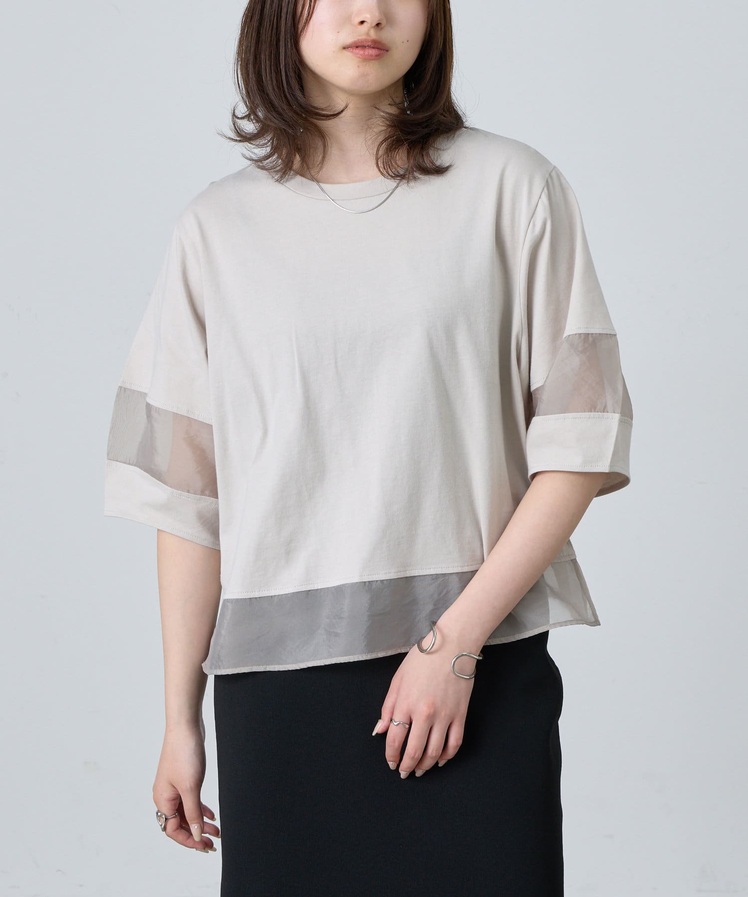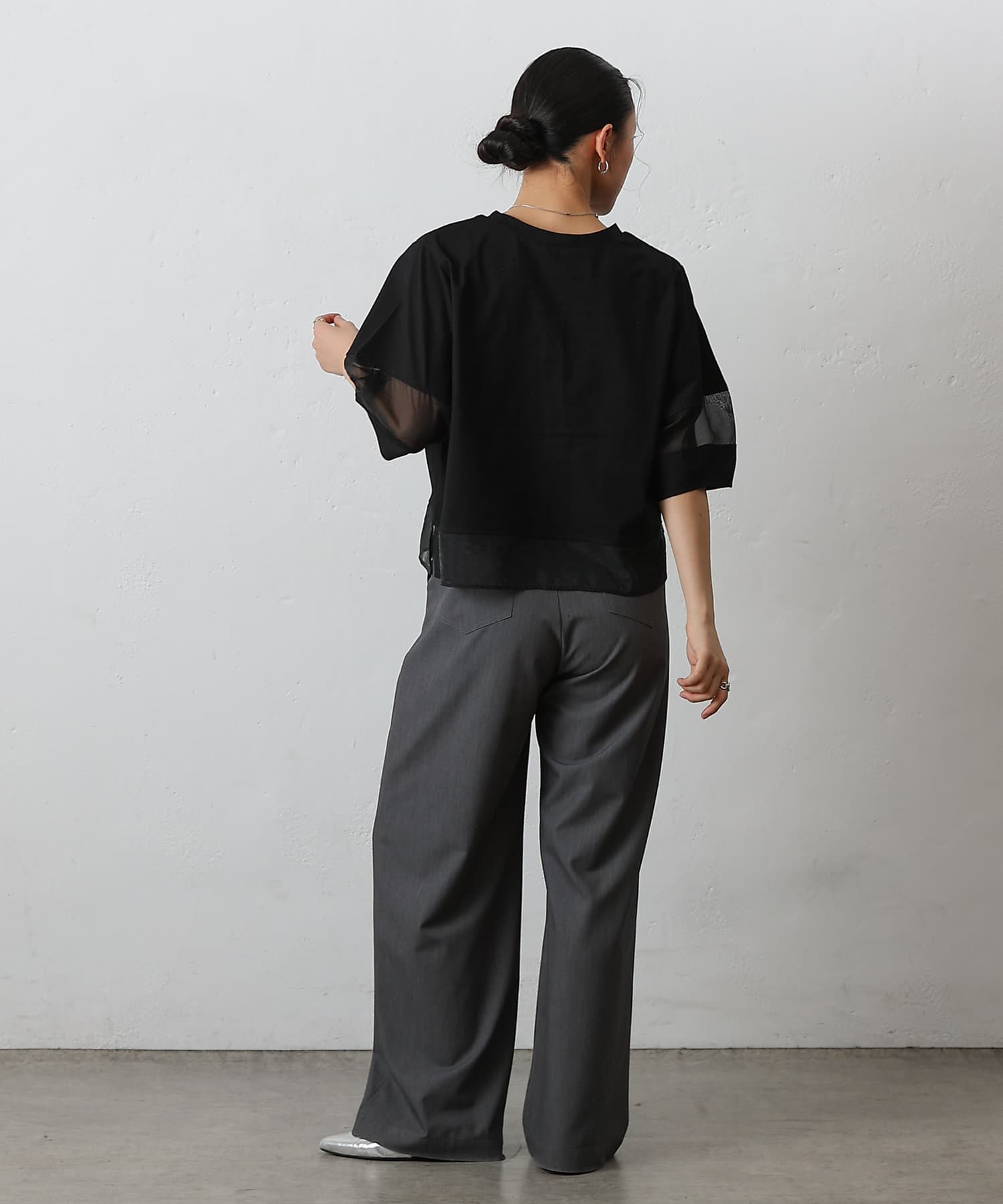【大人の抜け感を演出したシアー切替ランタンスリーブプルオーバー】