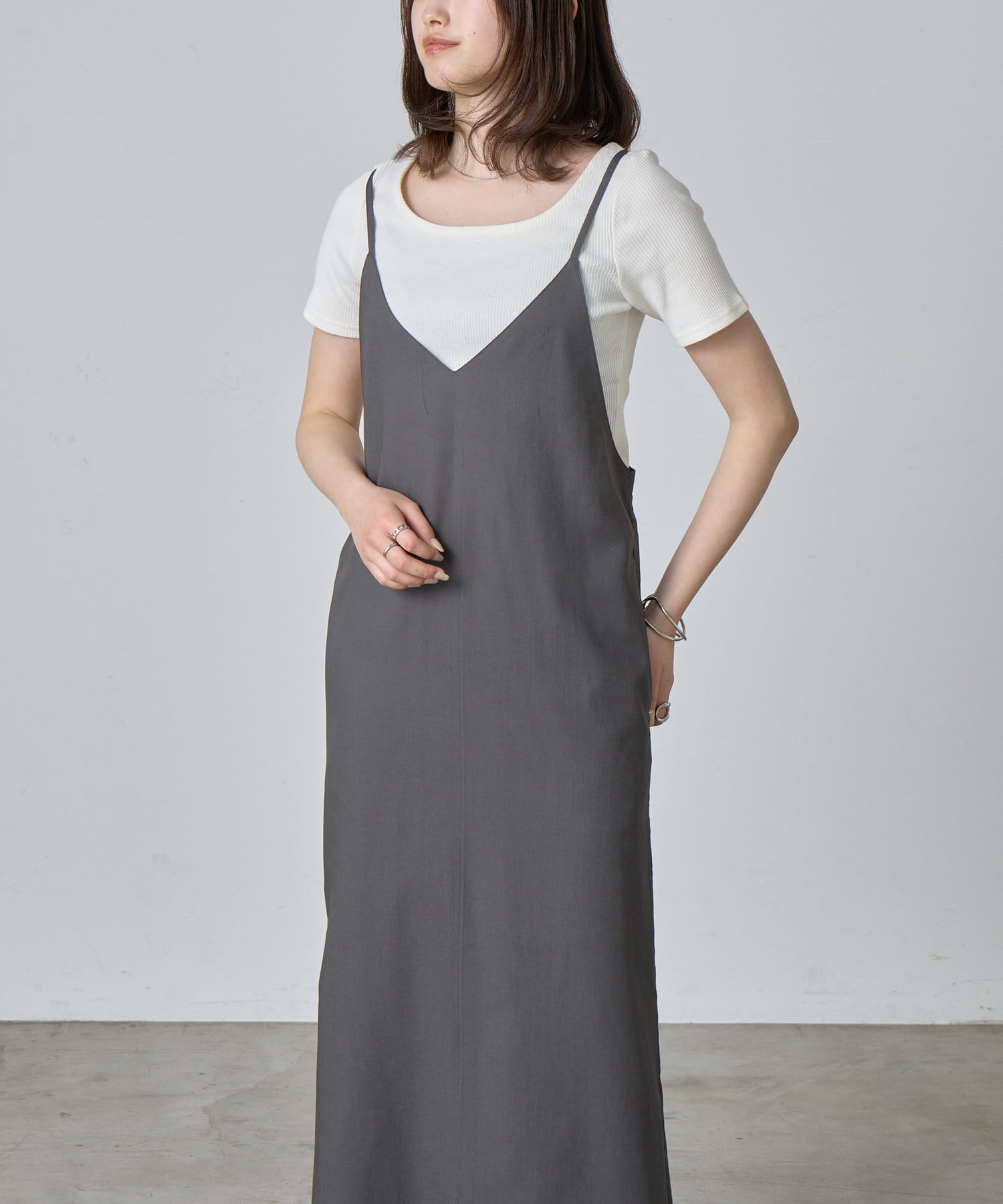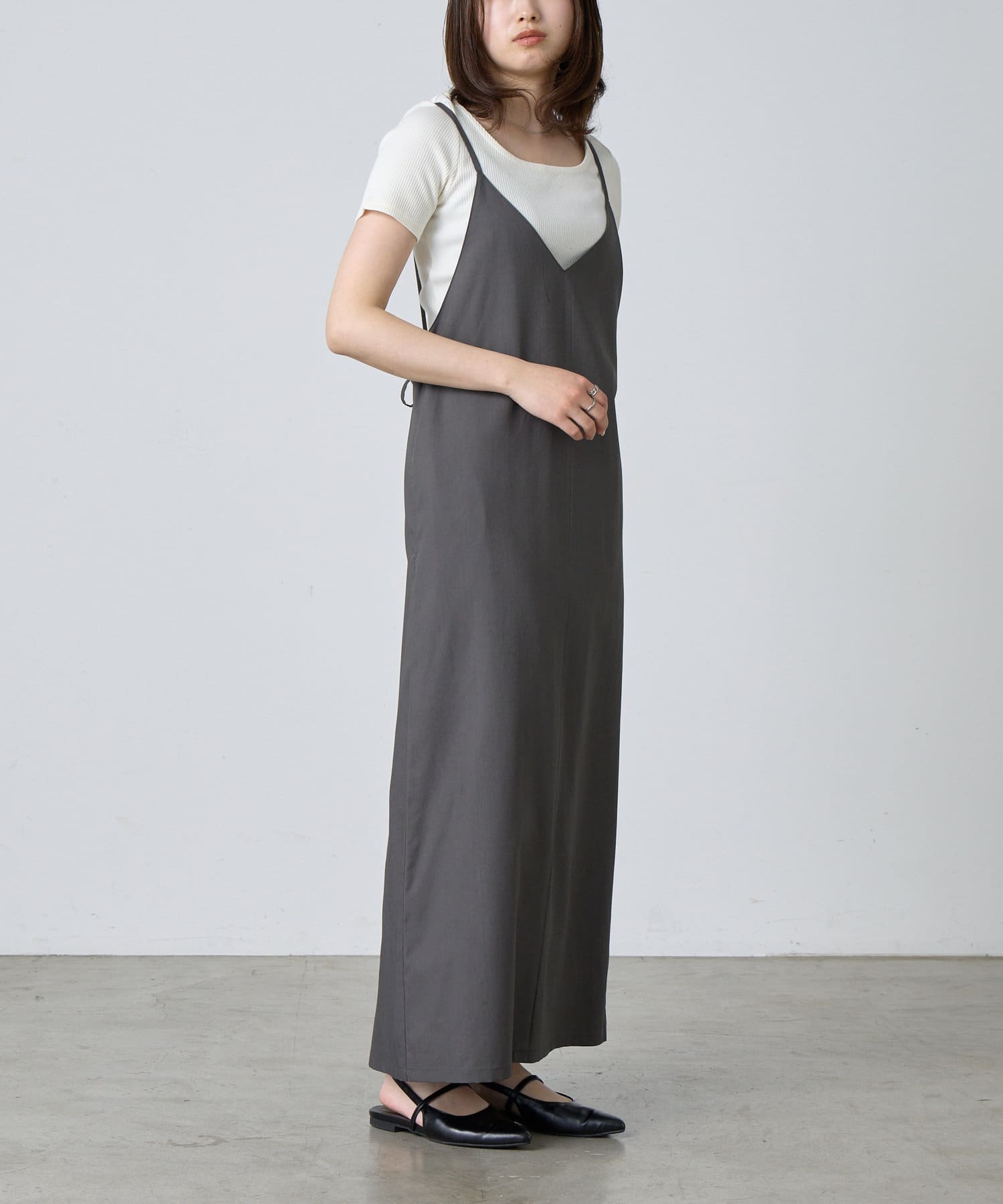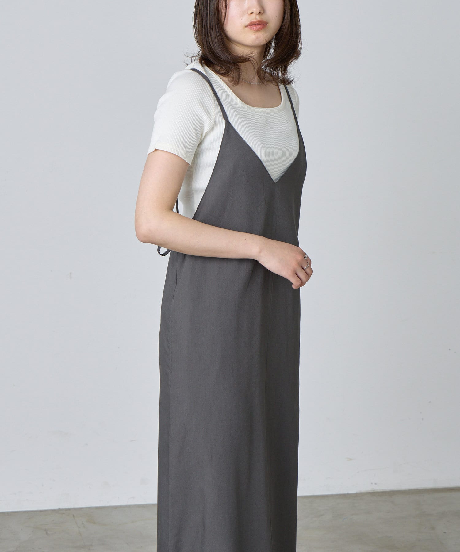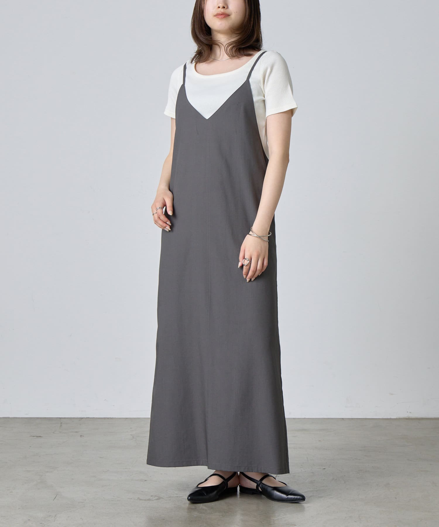 【シンプルながらもこなれ感のある大人のキャミワンピース】