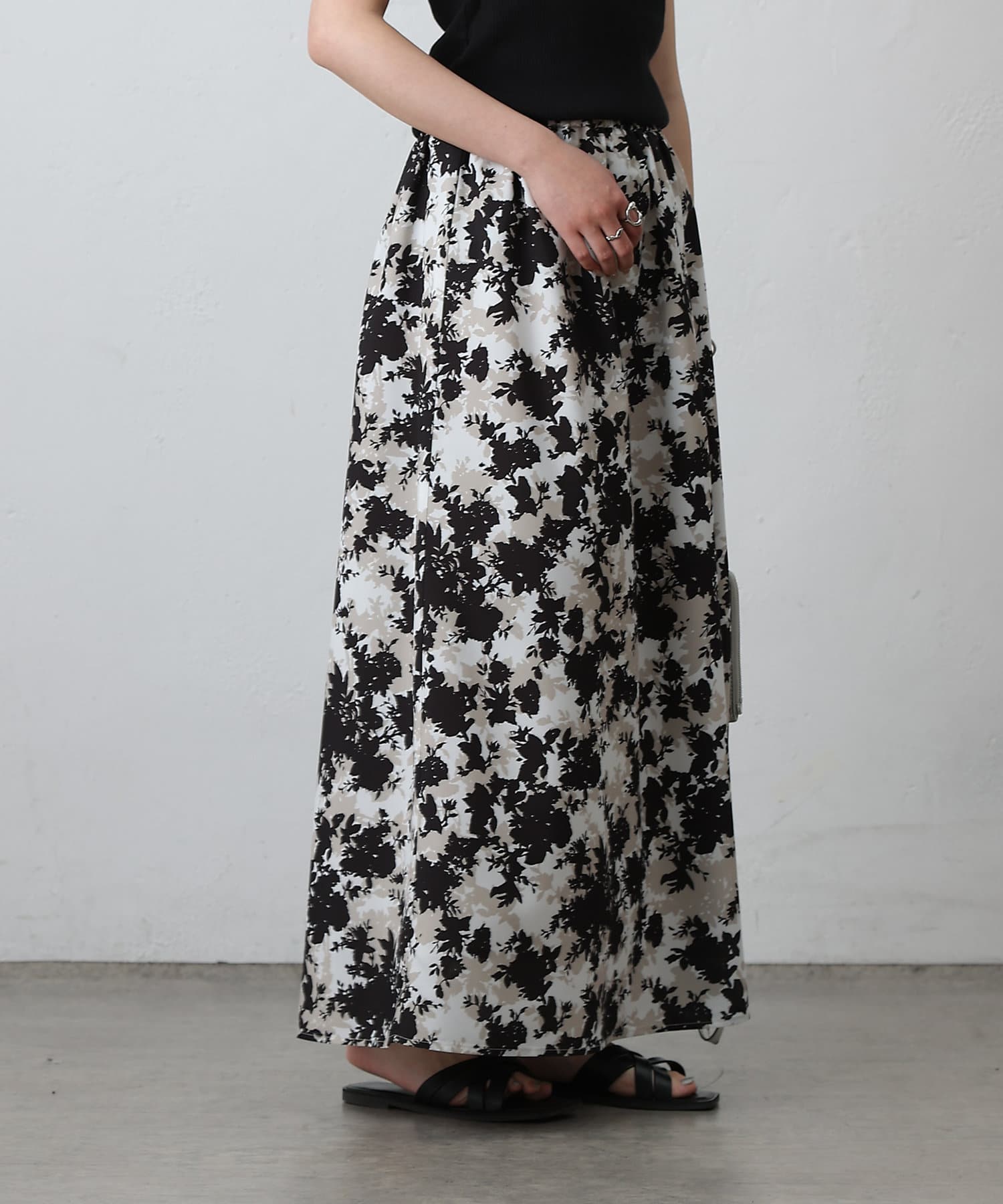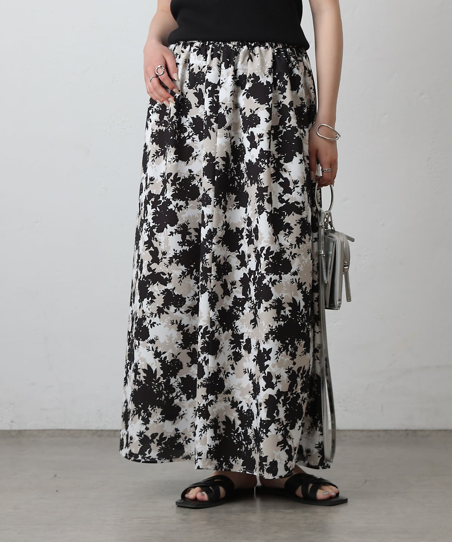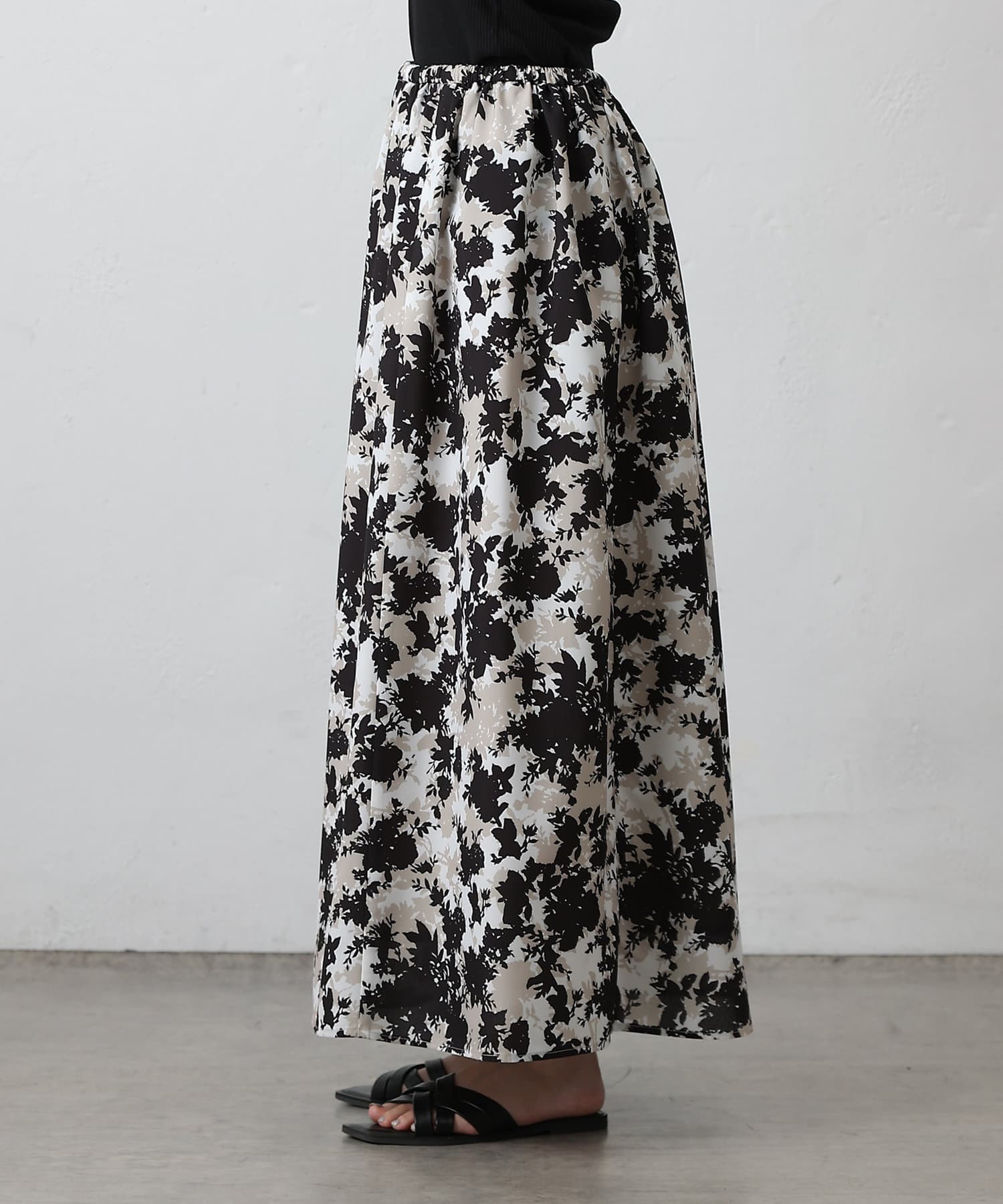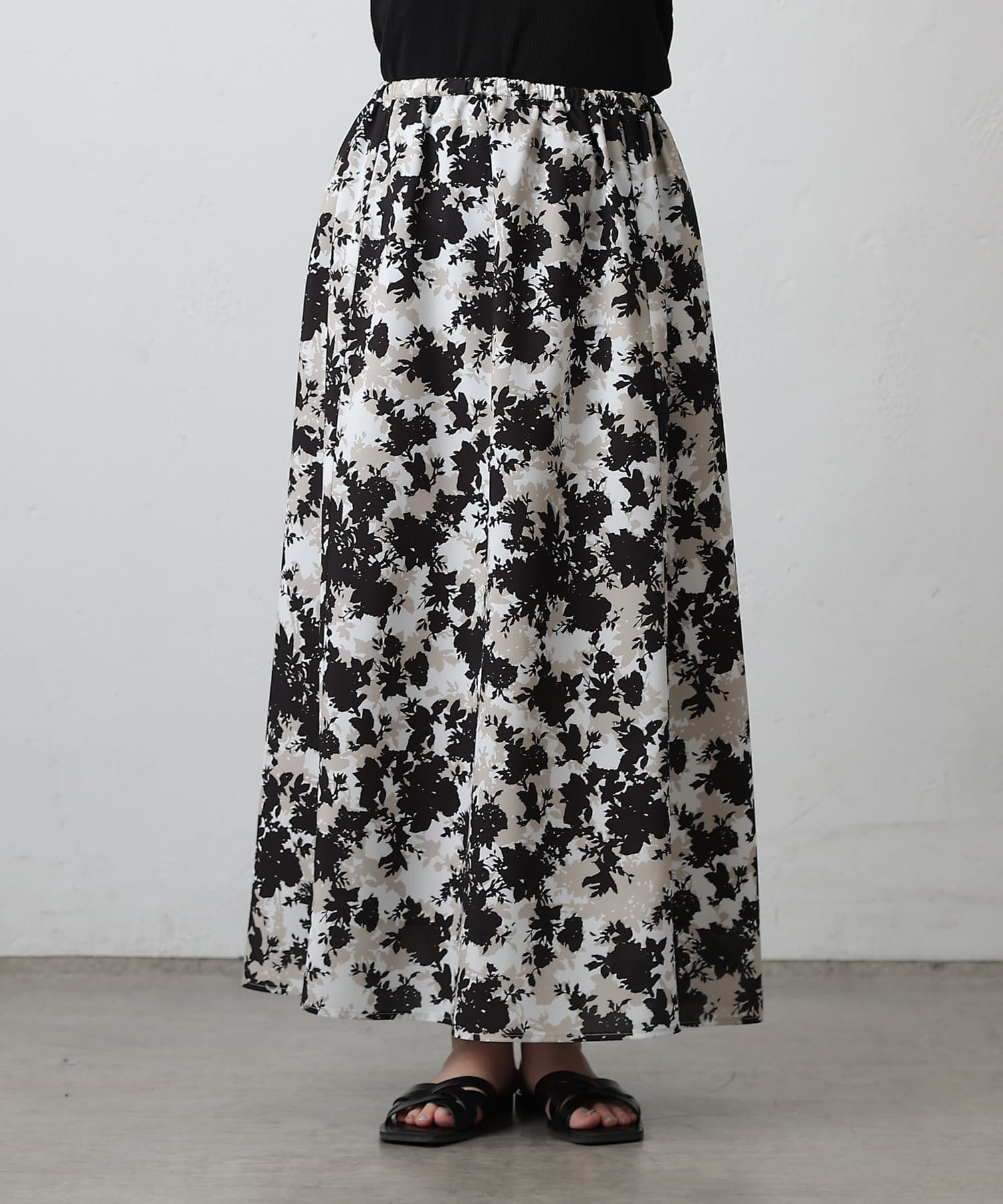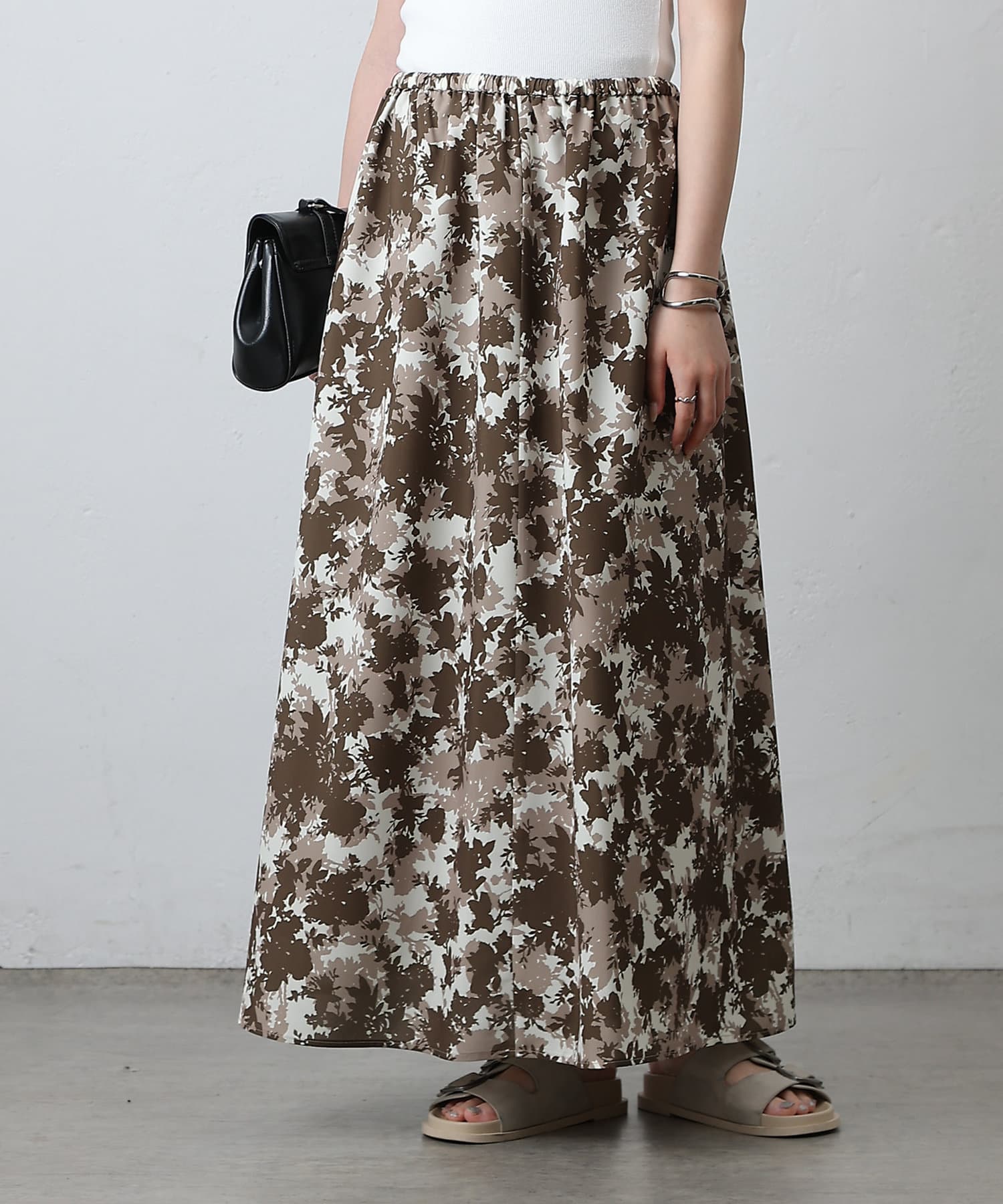 華やかなボタニカル柄プリントがコーディネートの主役になるフレアスカート。