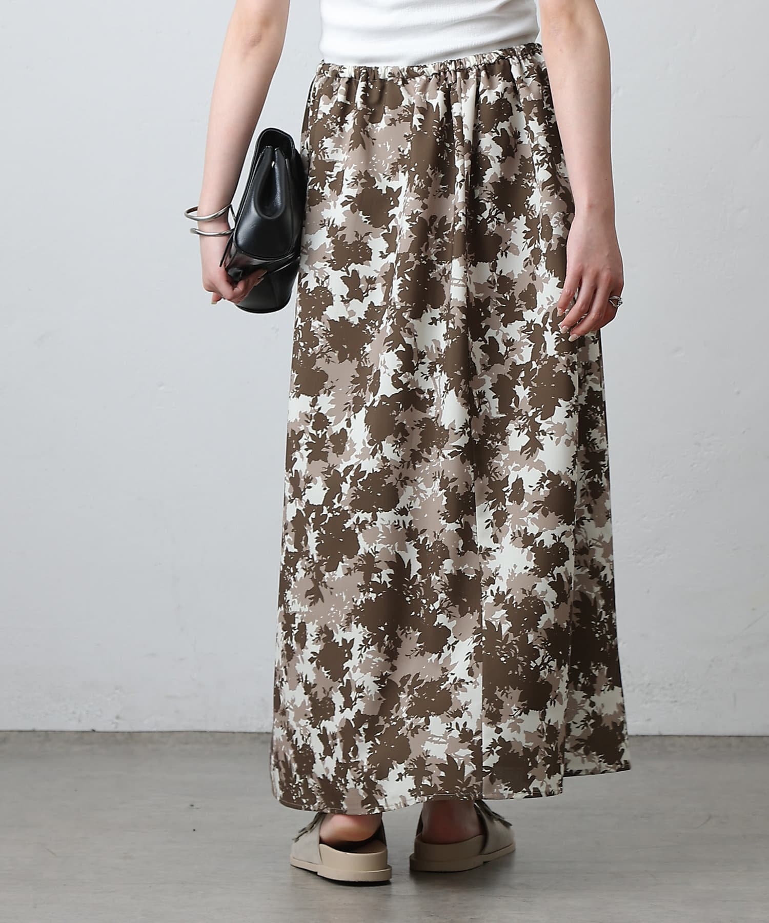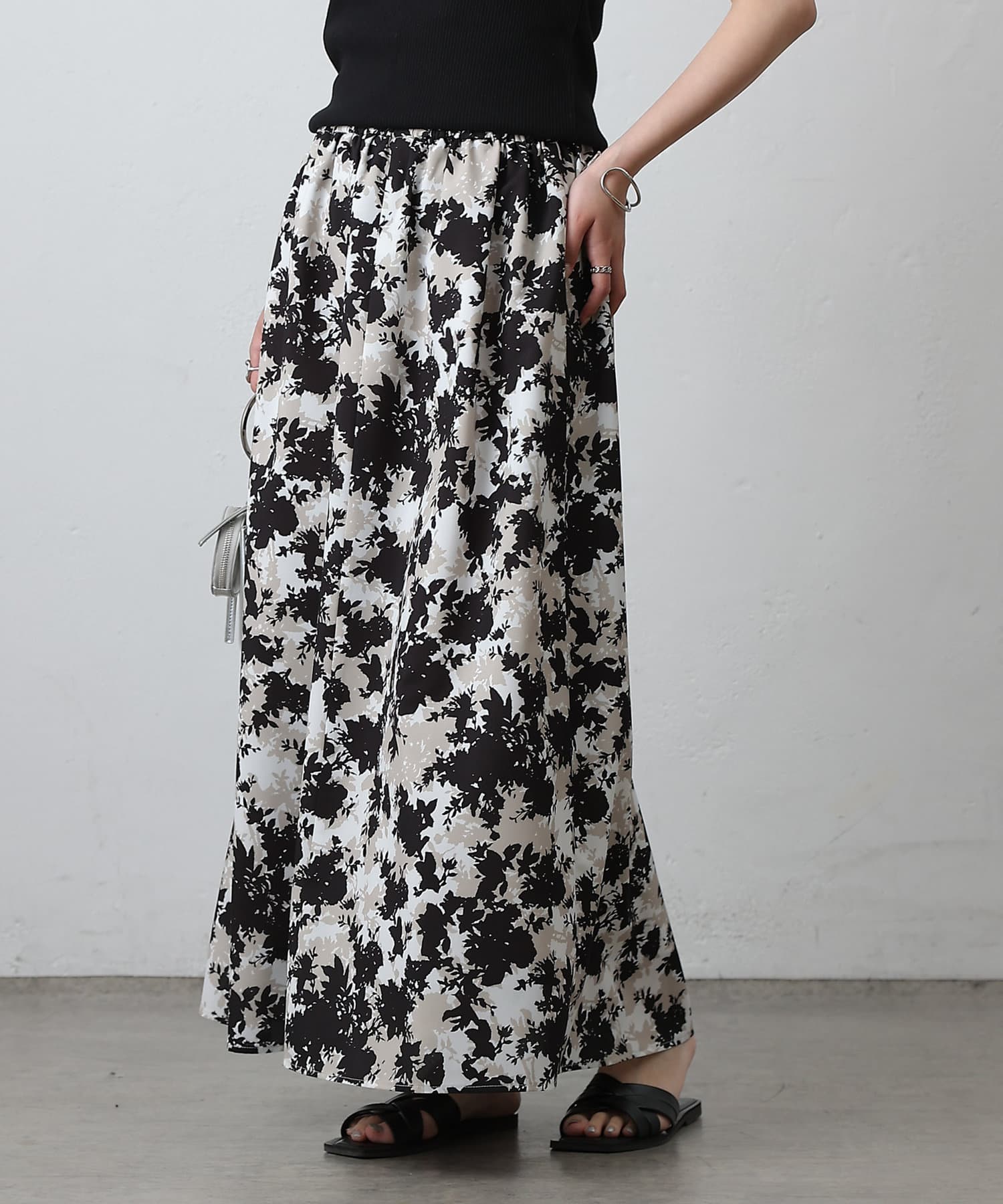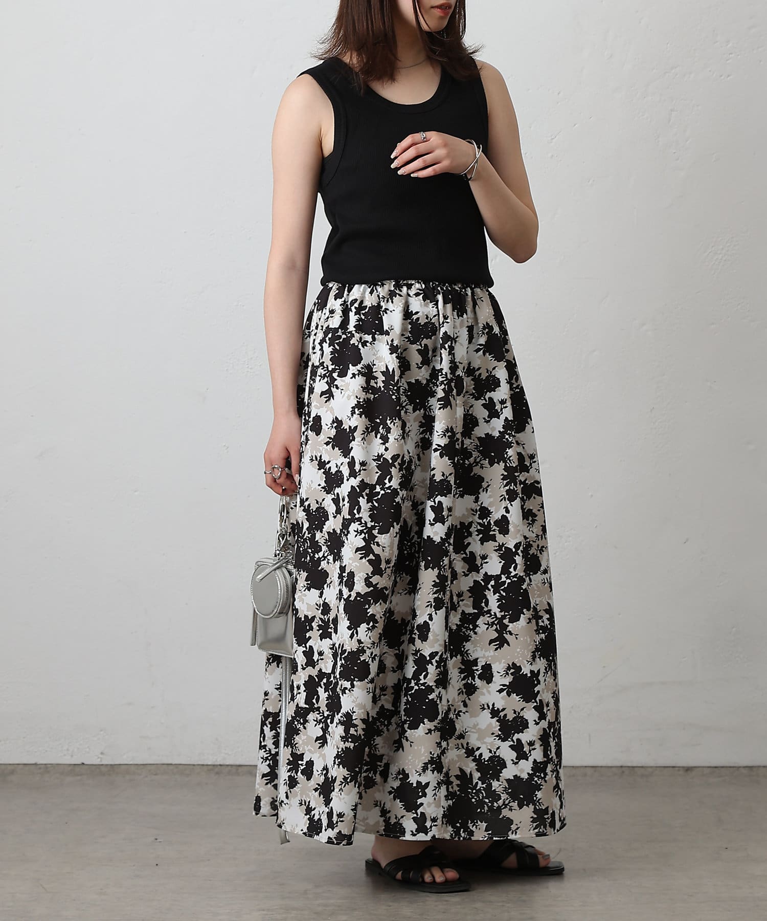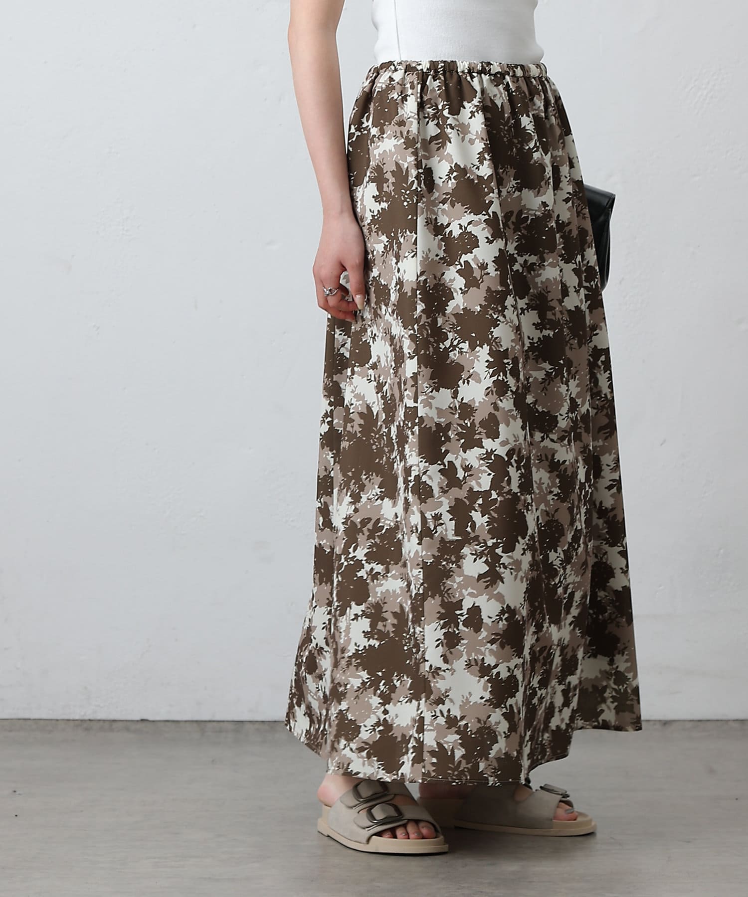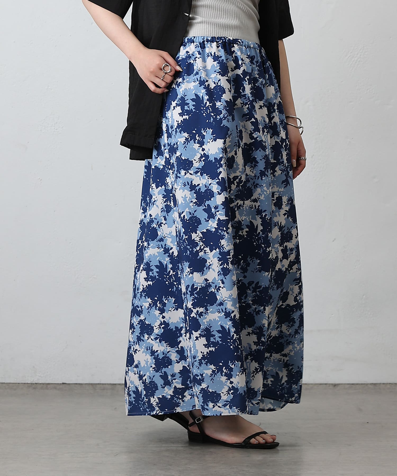 華やかなボタニカル柄プリントがコーディネートの主役になるフレアスカート。