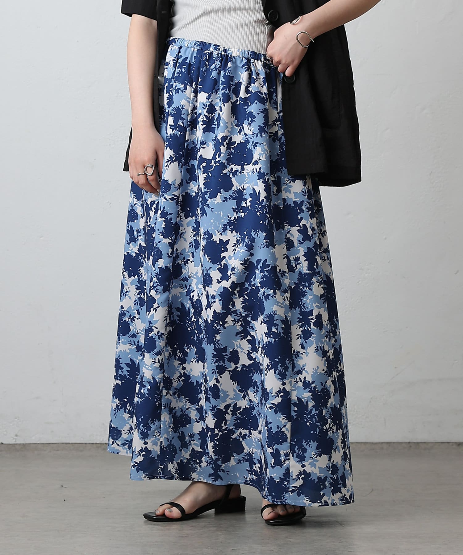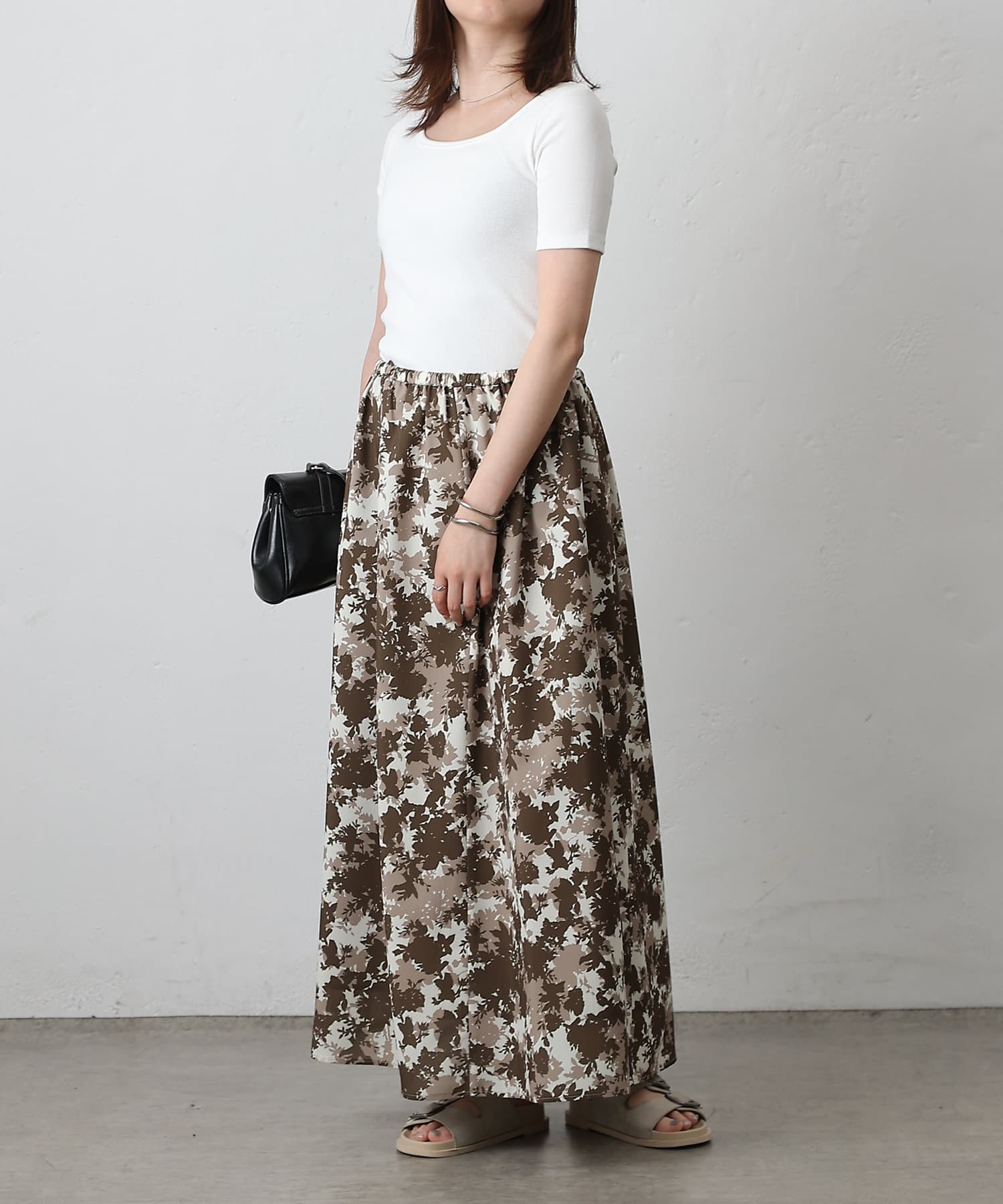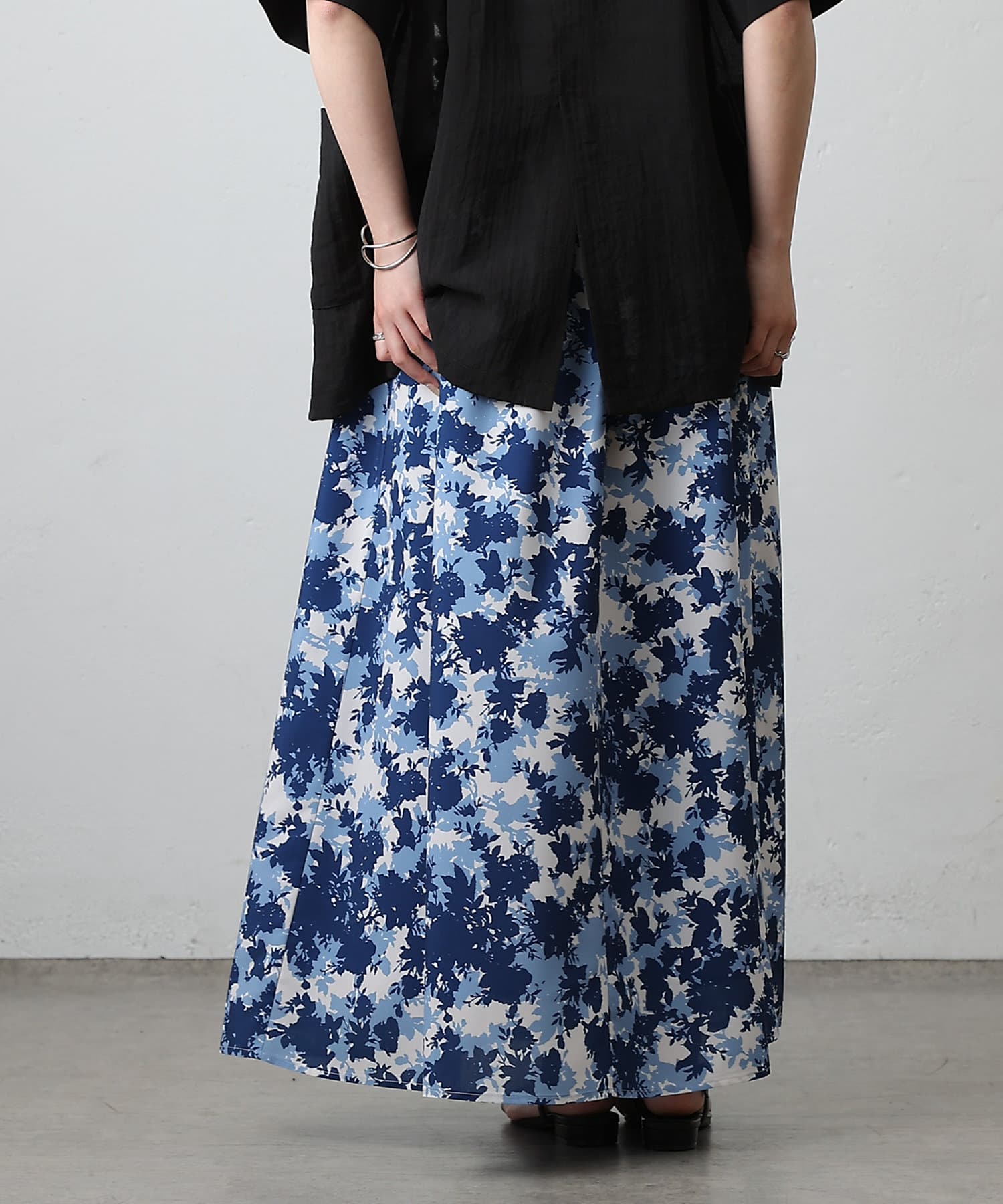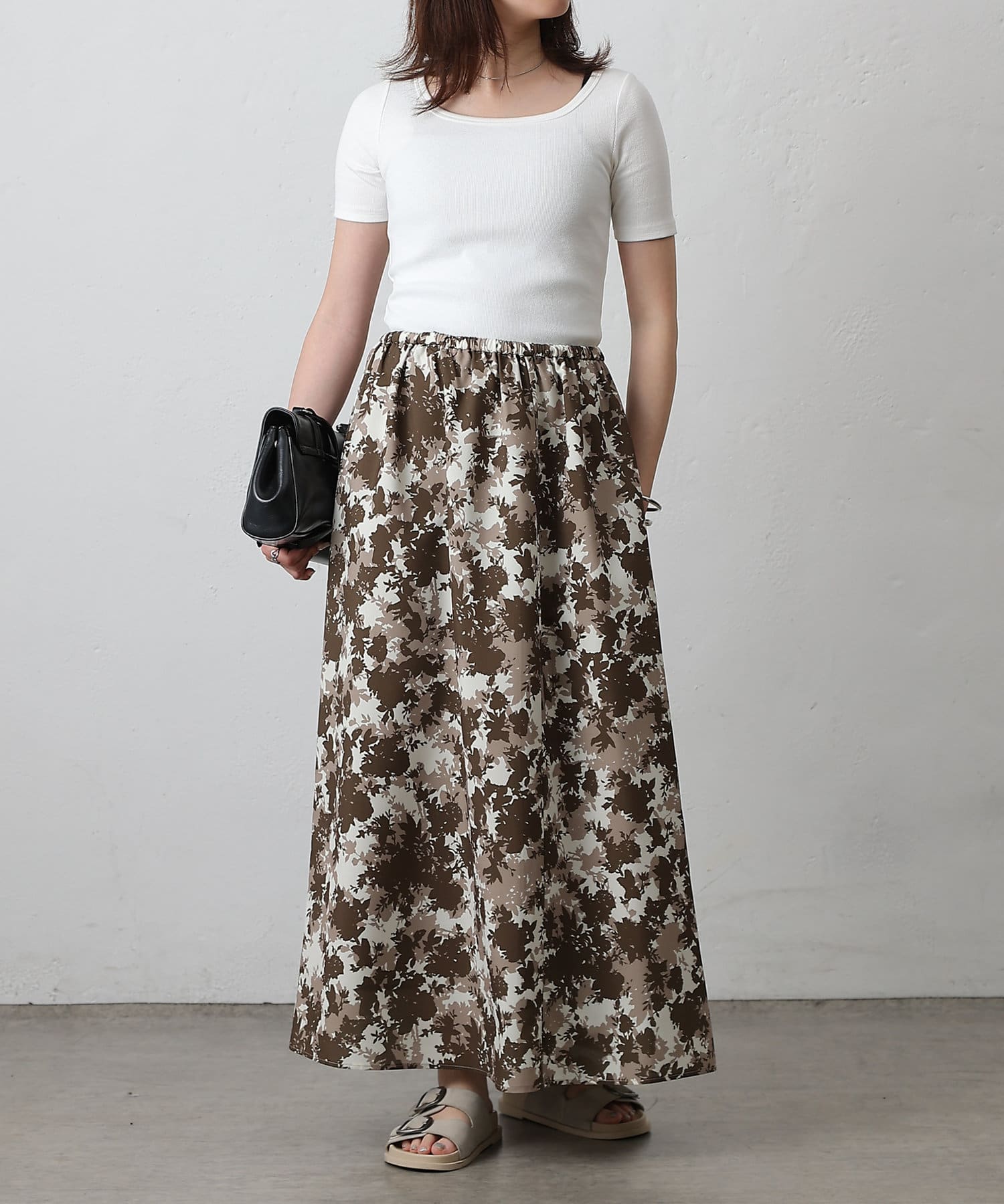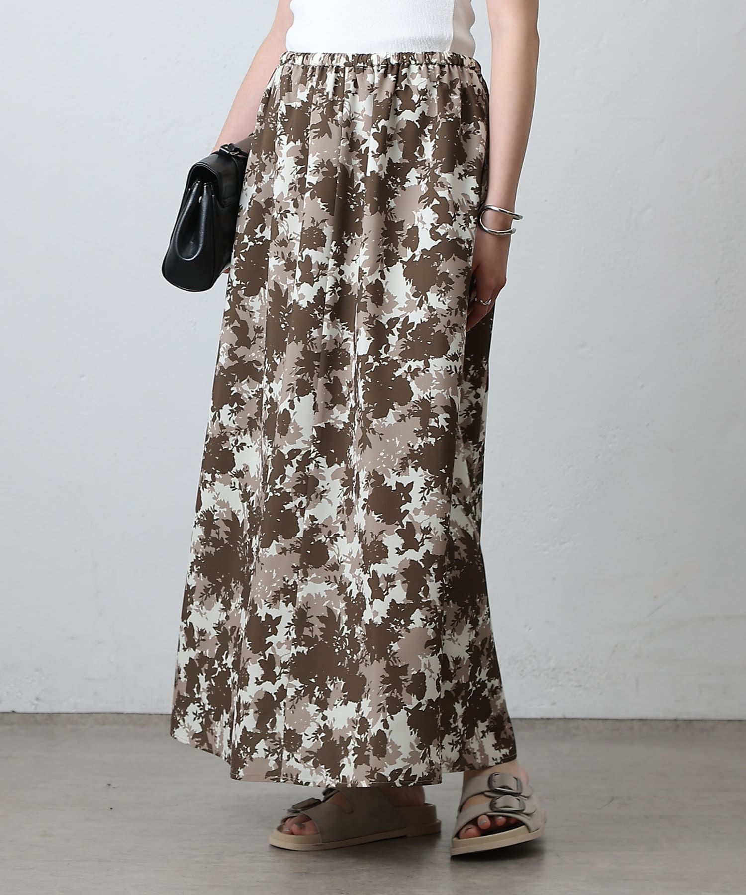 華やかなボタニカル柄プリントがコーディネートの主役になるフレアスカート。
